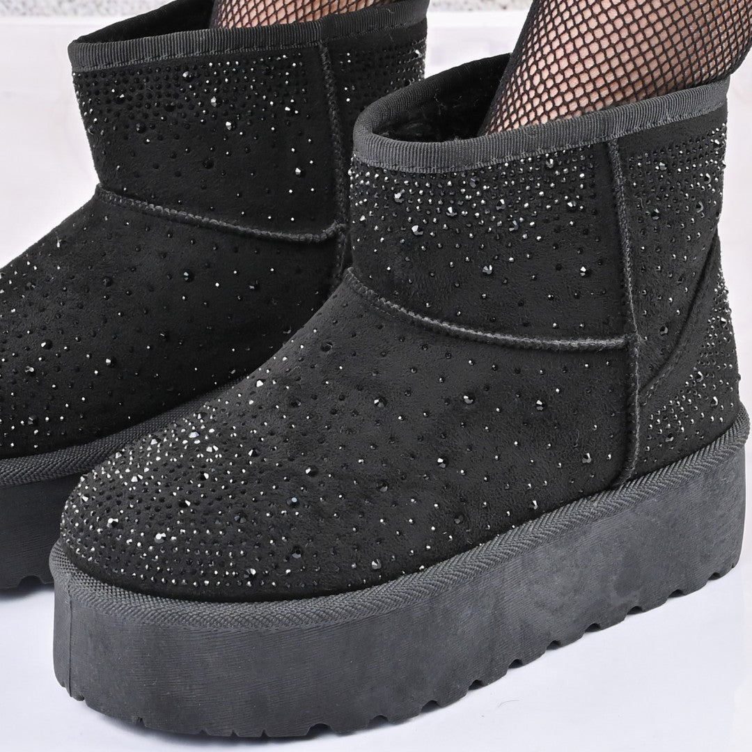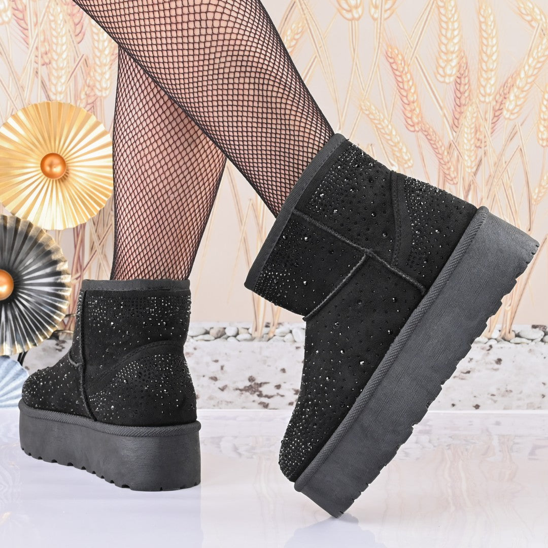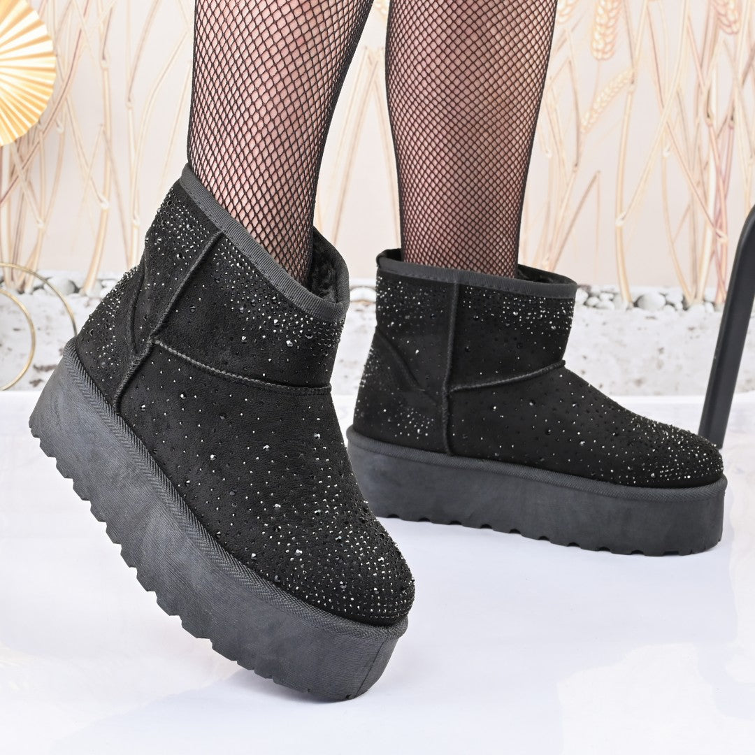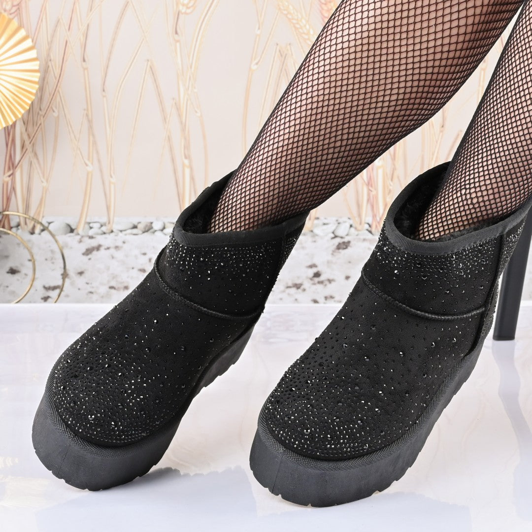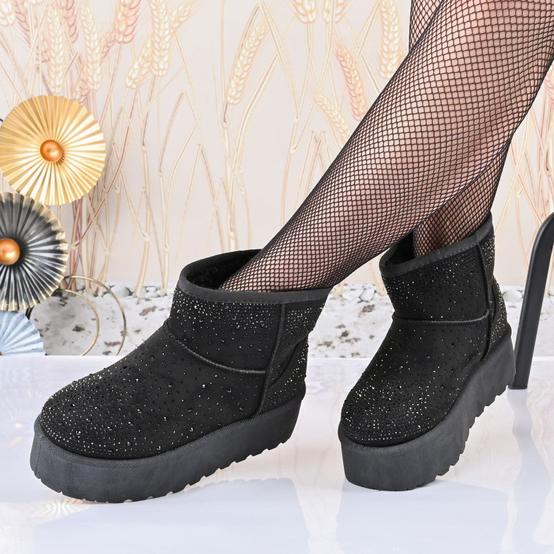 Cizme de dama,tip Ugg,Din piele ecologica intoarsa,imblanite,CD1051,Negru