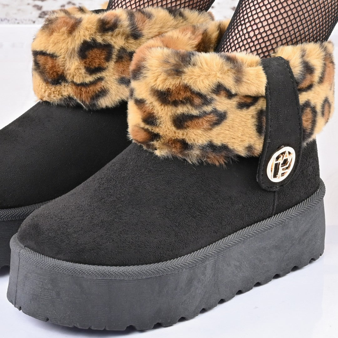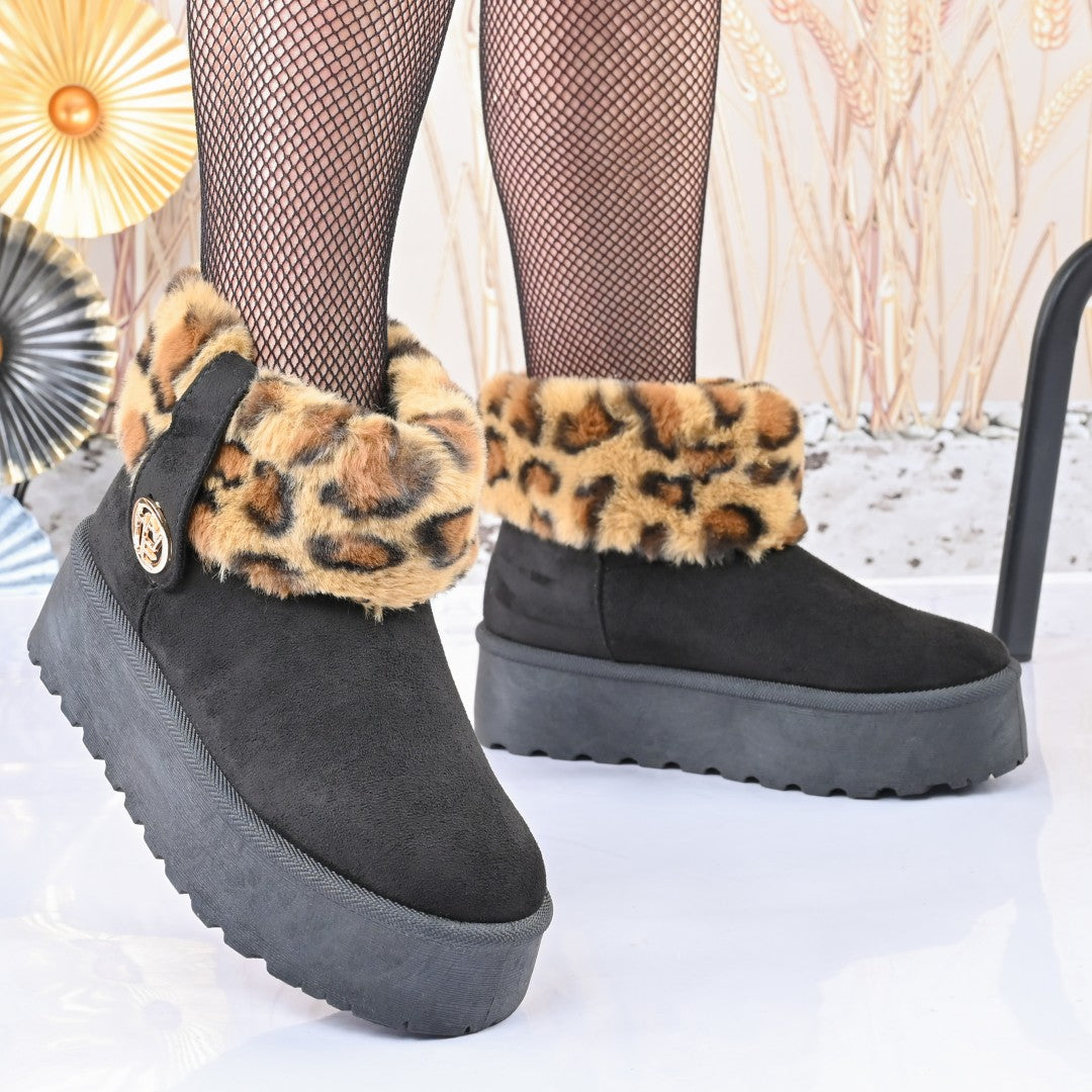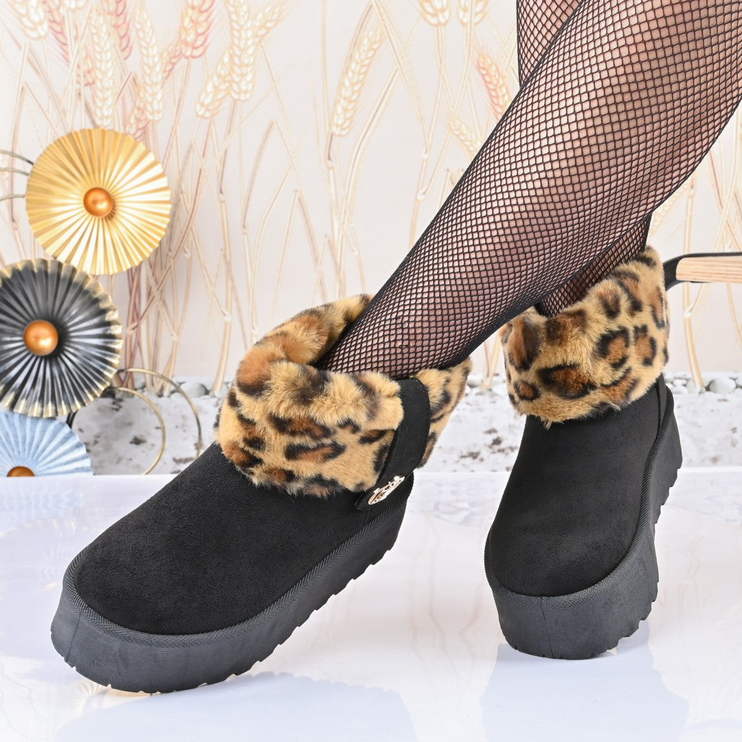 Cizme de dama,tip Ugg,Din piele ecologica intoarsa,imblanite,CD1053,Negru