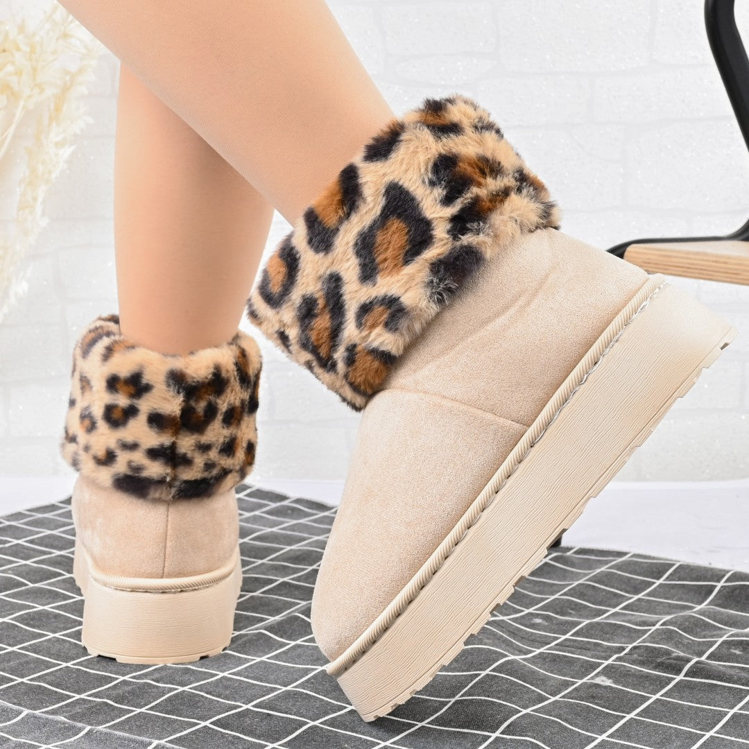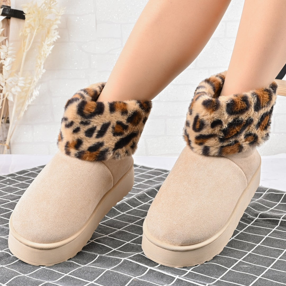 Cizme de dama,tip Ugg,Din piele ecologica intoarsa,imblanite,CD1054,Bej