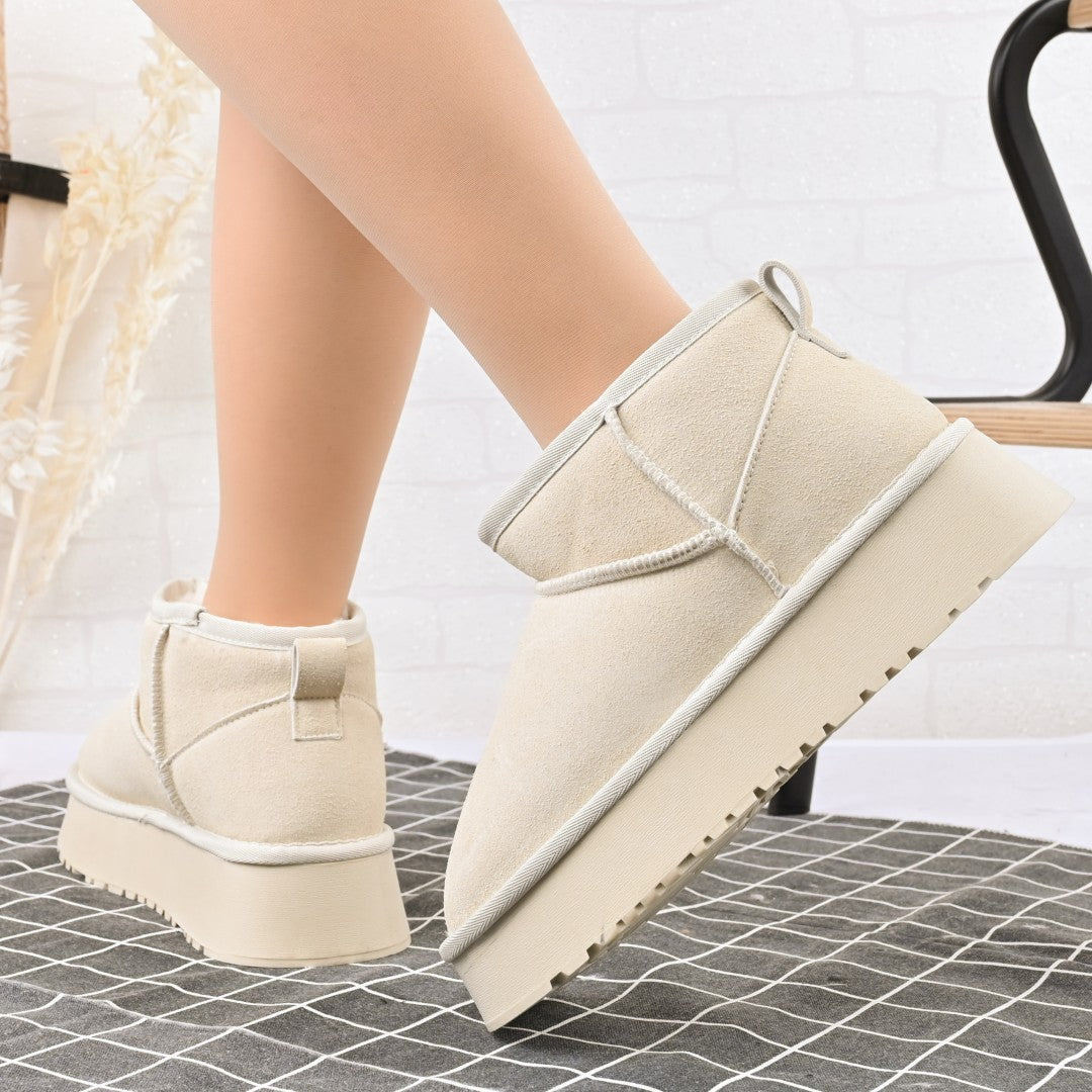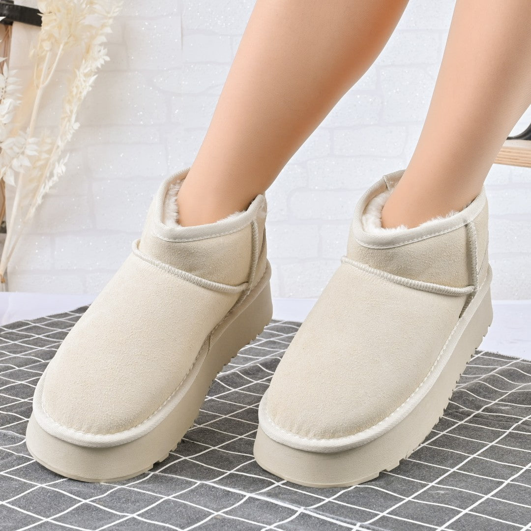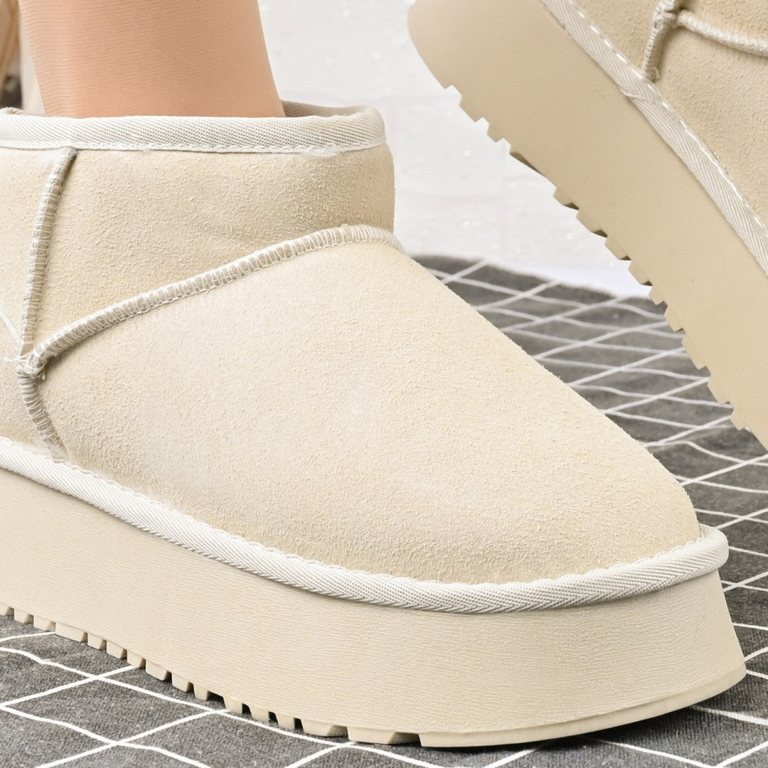 Cizmele de damă tip Ugg din piele naturală bej, căptușite cu blană, oferă un confort deosebit și un stil elegant,...