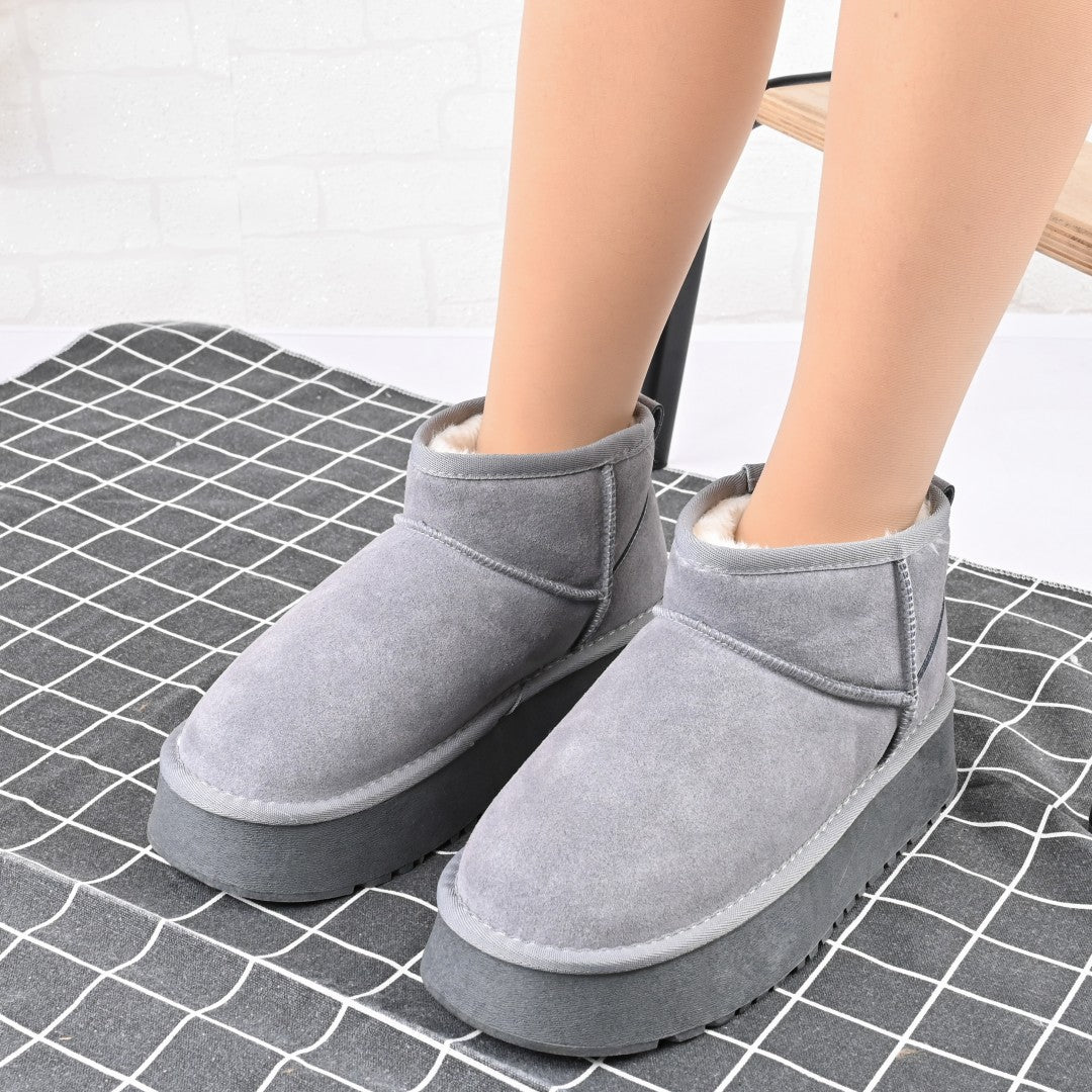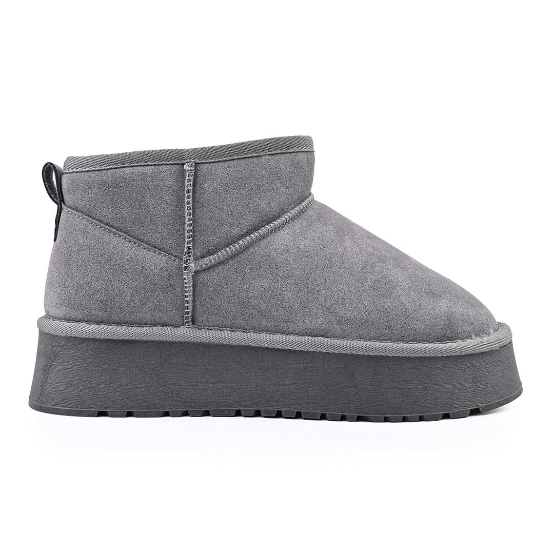 Cizmele de damă tip Ugg din piele naturală gri oferă un confort superior, fiind căptușite și ideale pentru sezonul rece....