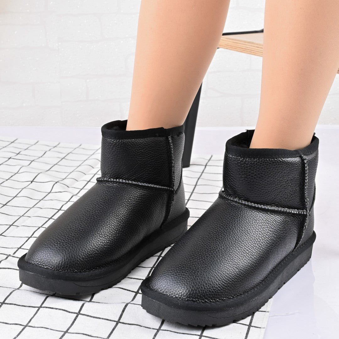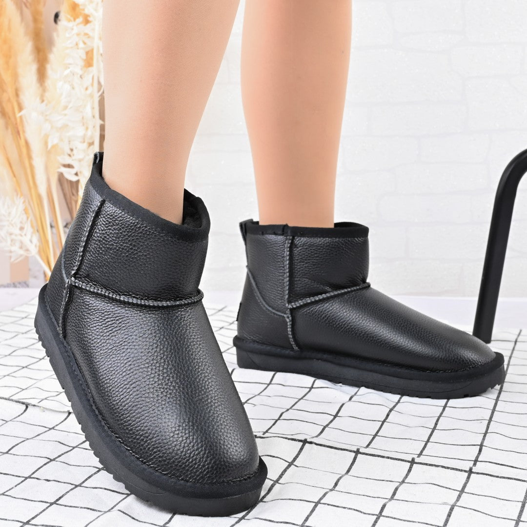 Cizme de dama,tip Ugg,Din piele naturala,imblanite,CD1045,Negru