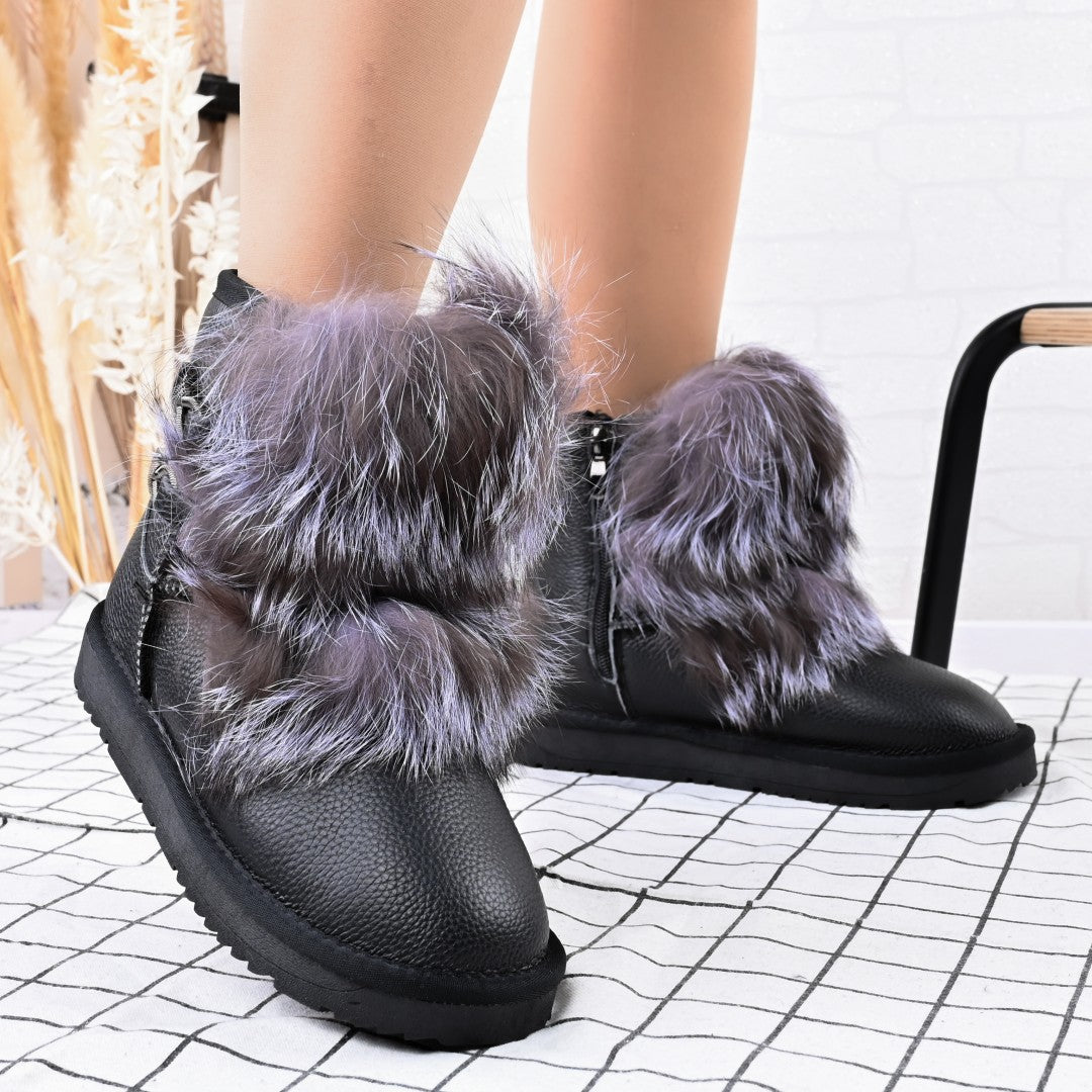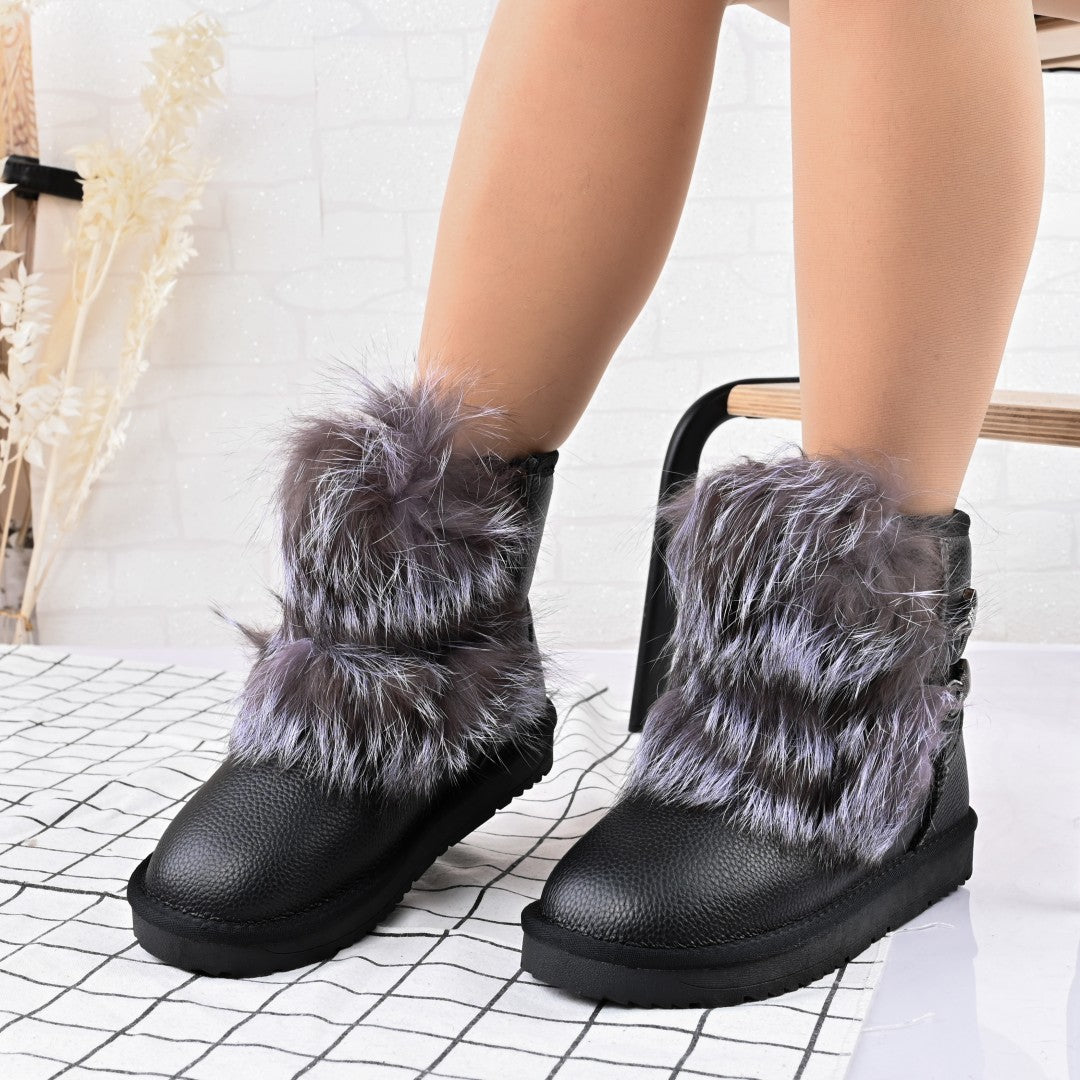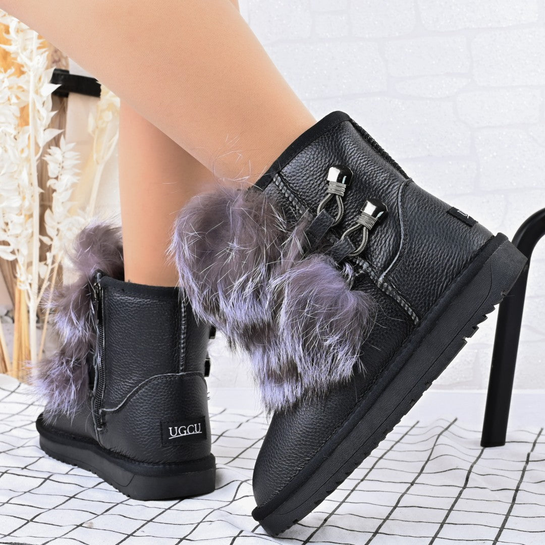 Cizme de dama,tip Ugg,Din piele naturala,imblanite,CD1046,Negru