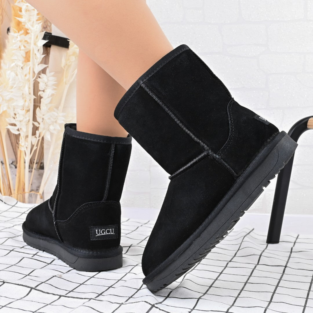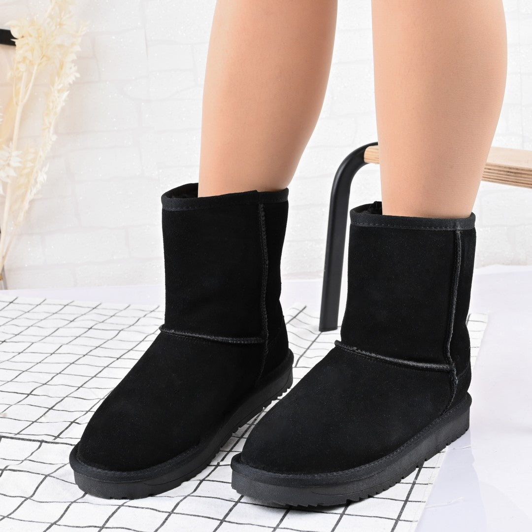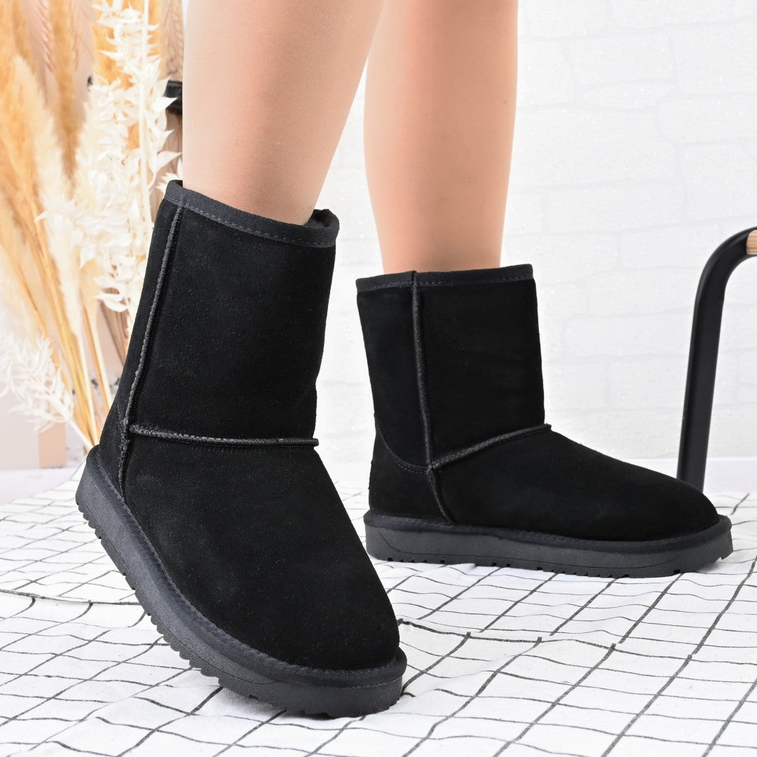 Cizme de dama,tip Ugg,Din piele naturala intoarsa,imblanite,CD1047,Negru