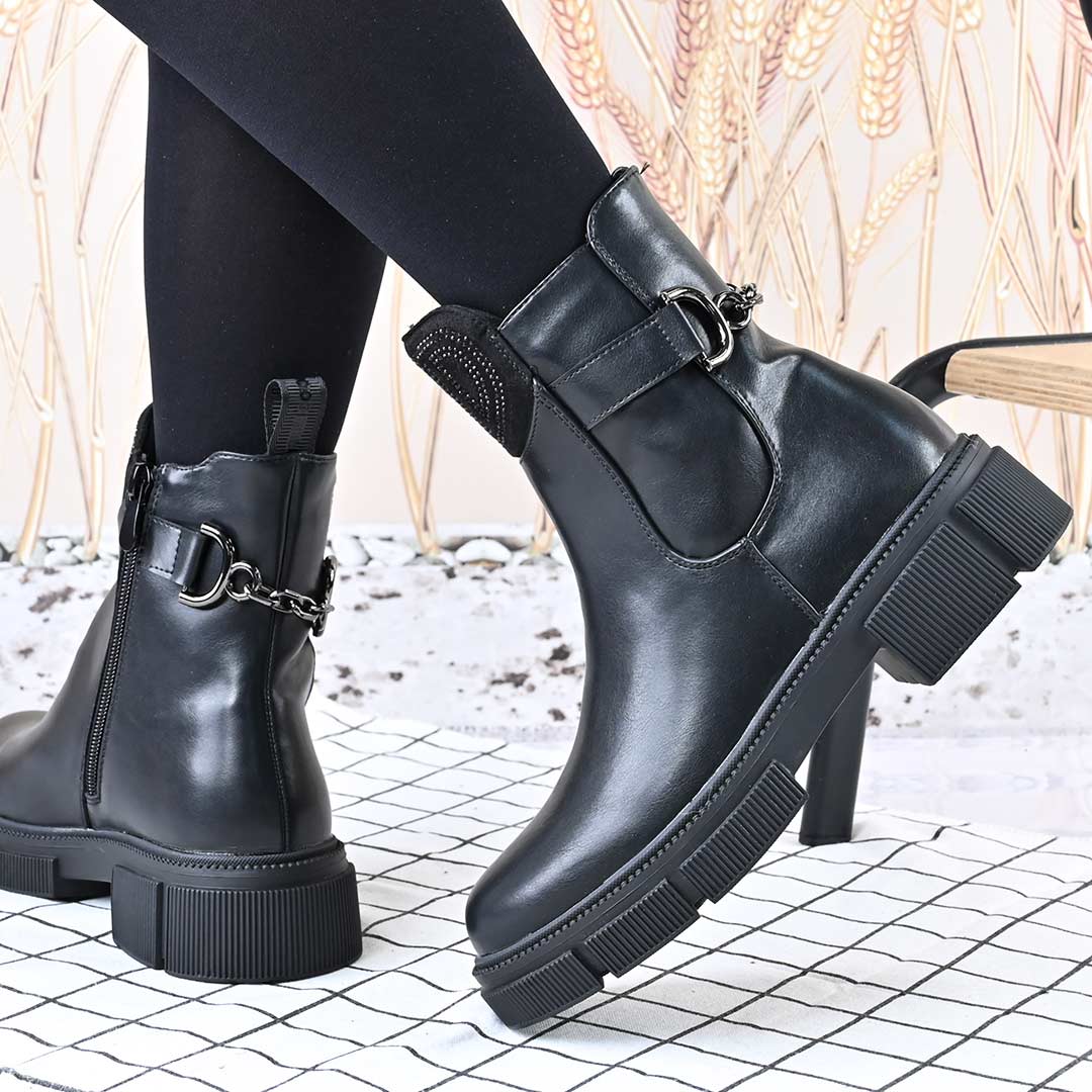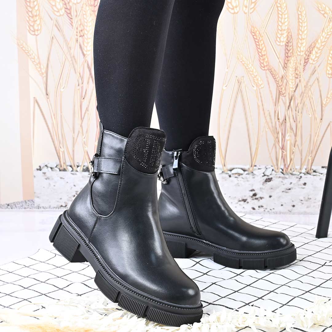 Ghetele de damă GD1091, din piele ecologică neagră, cu interior îmblănit, oferă confort și stil în sezonul rece. Designul casual...