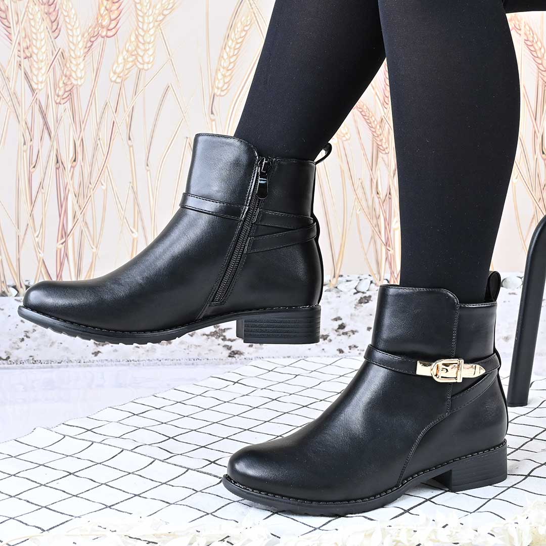 Ghete de damă din piele ecologică, cu interior căptușit, ideale pentru sezonul toamnă-iarna. Design casual, cu fermoar și talpă plată,...