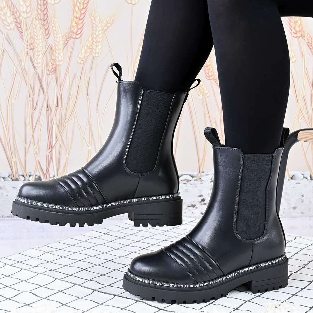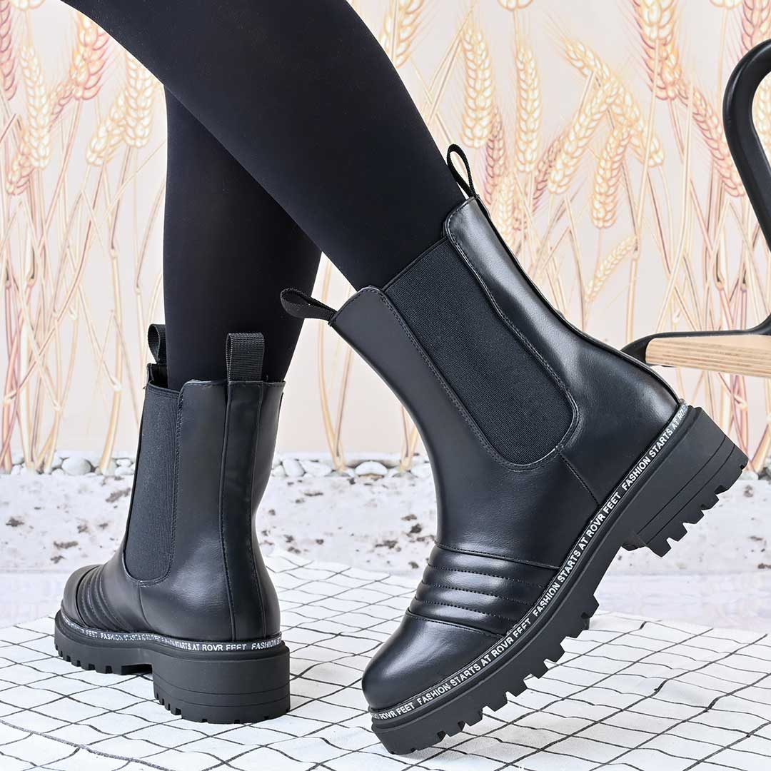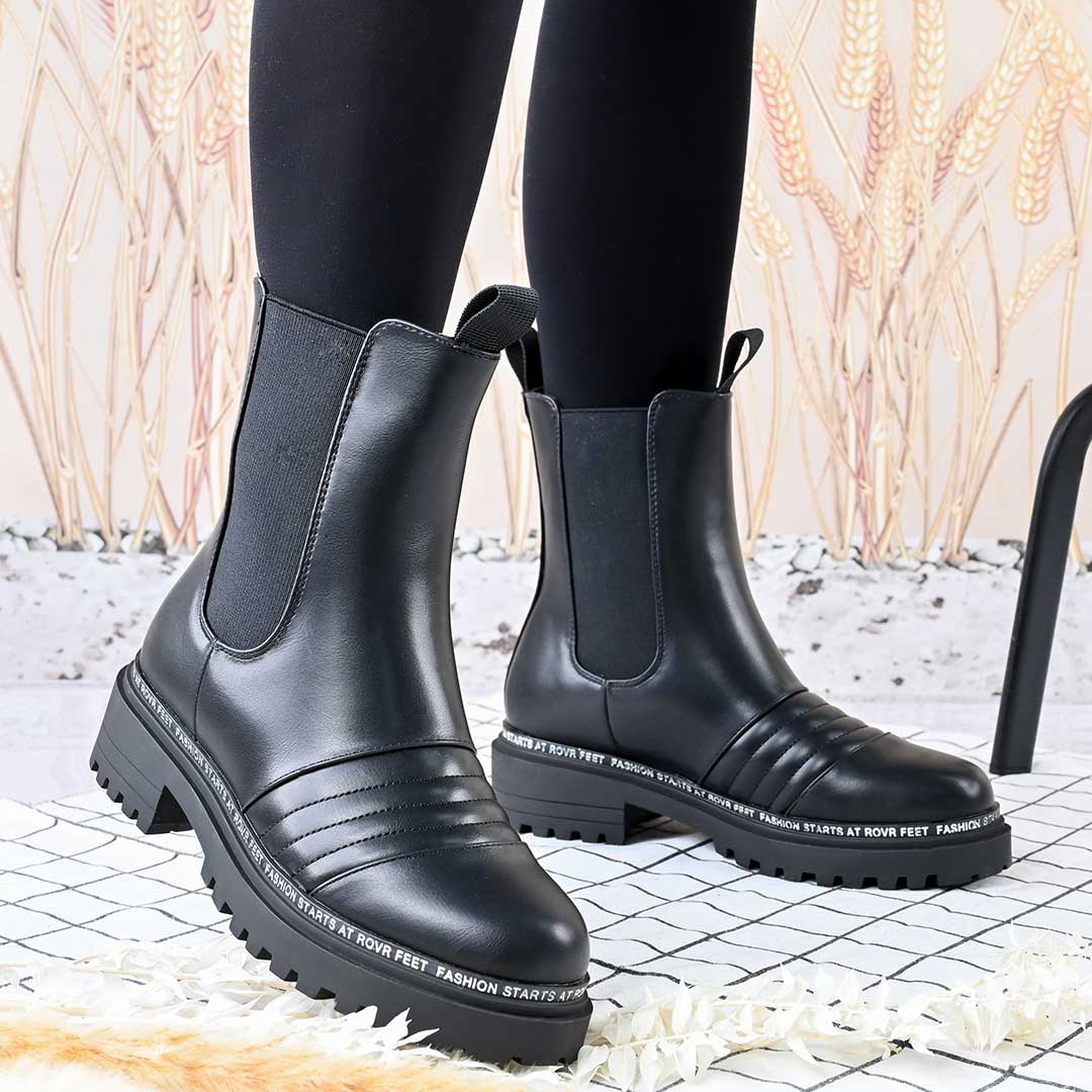 Ghete de dama,Din piele ecologica, cu interior imblanit,GD1106,Negru