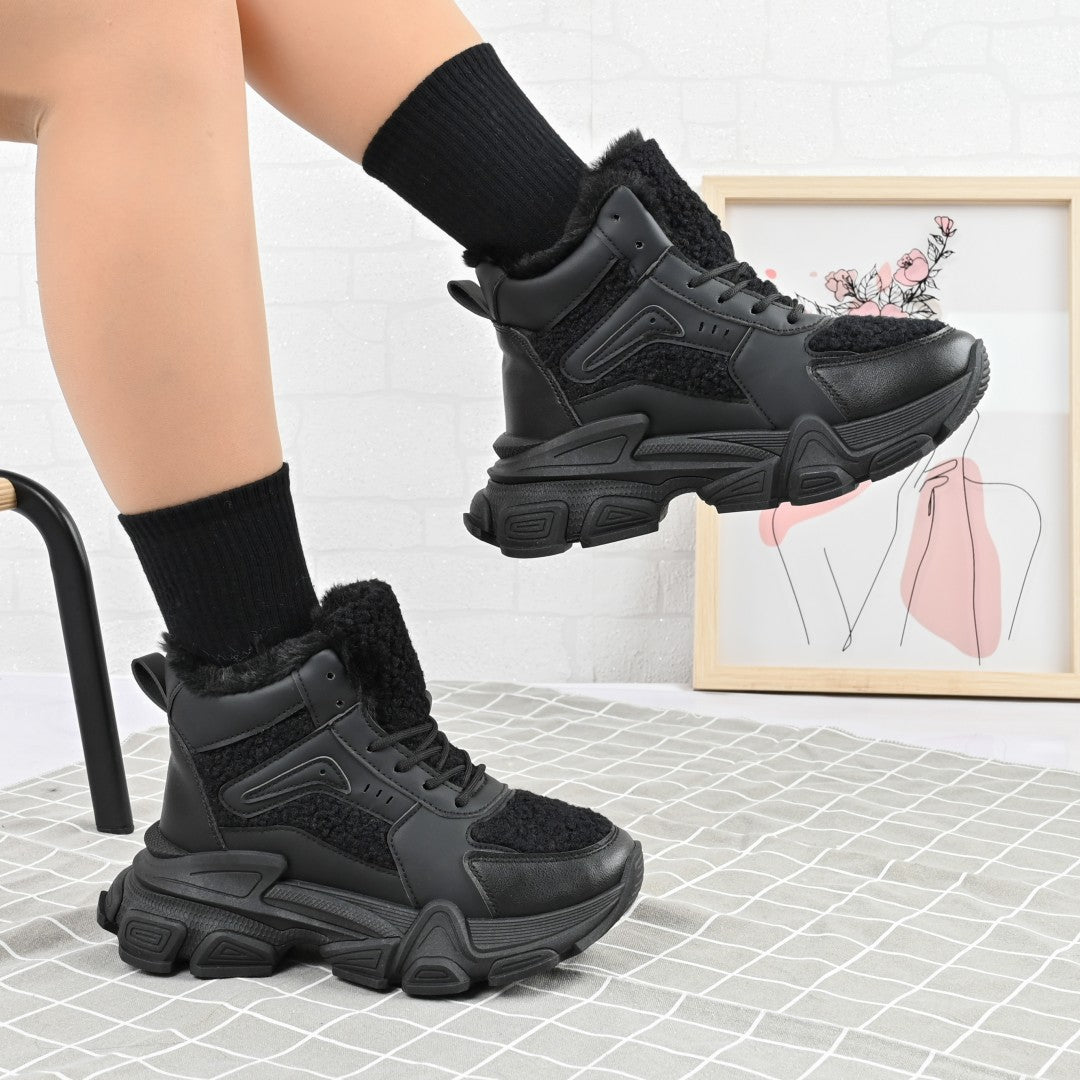 Ghete de dama,Din piele ecologica cu interior imblanit,GD1116,Negru