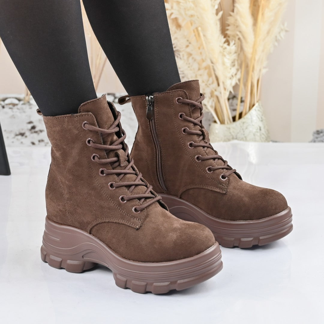 Ghete de damă din piele ecologică, cu interior imblănit, ideale pentru sezonul toamnă-iarnă. Design casual și confortabil, cu fermoar, talpă...