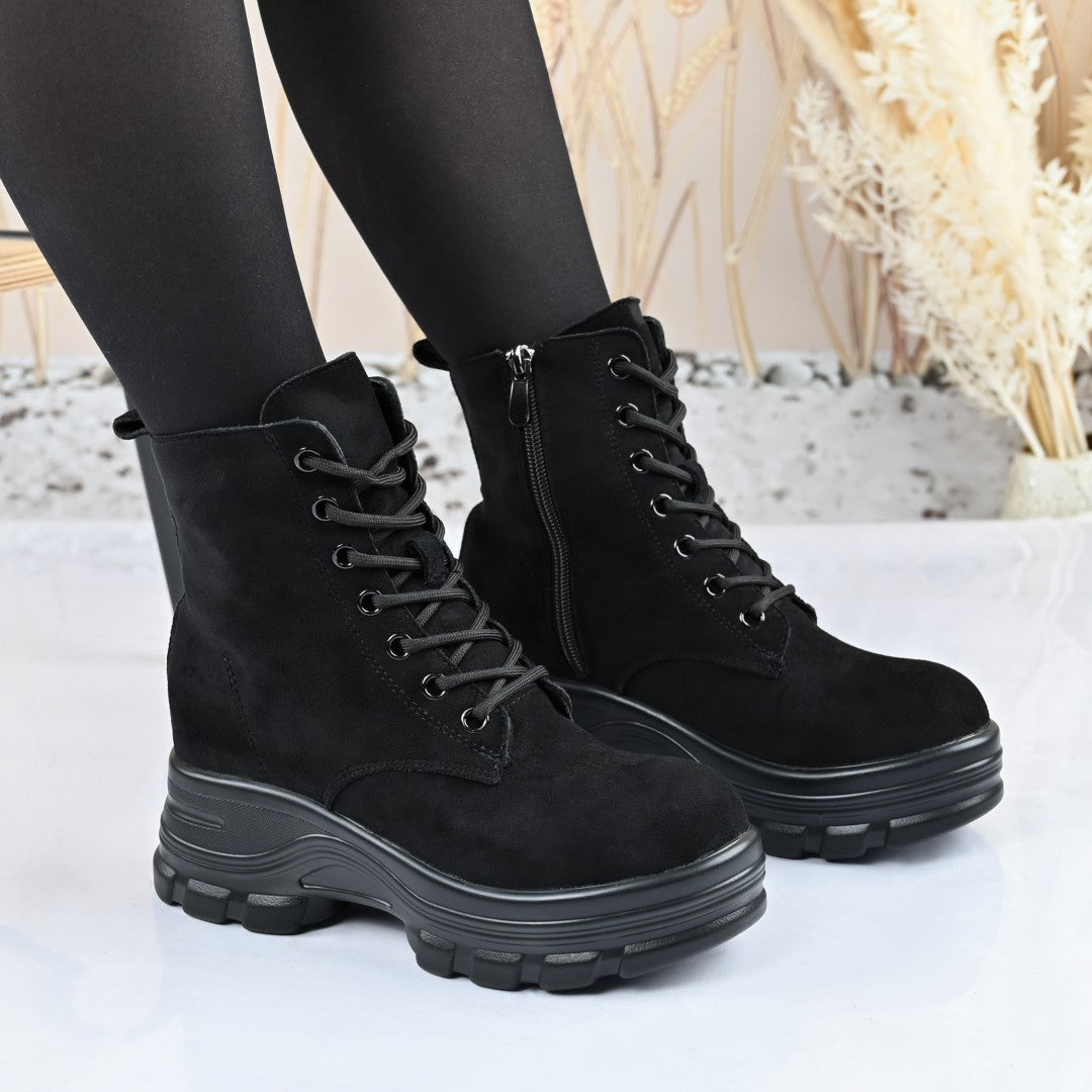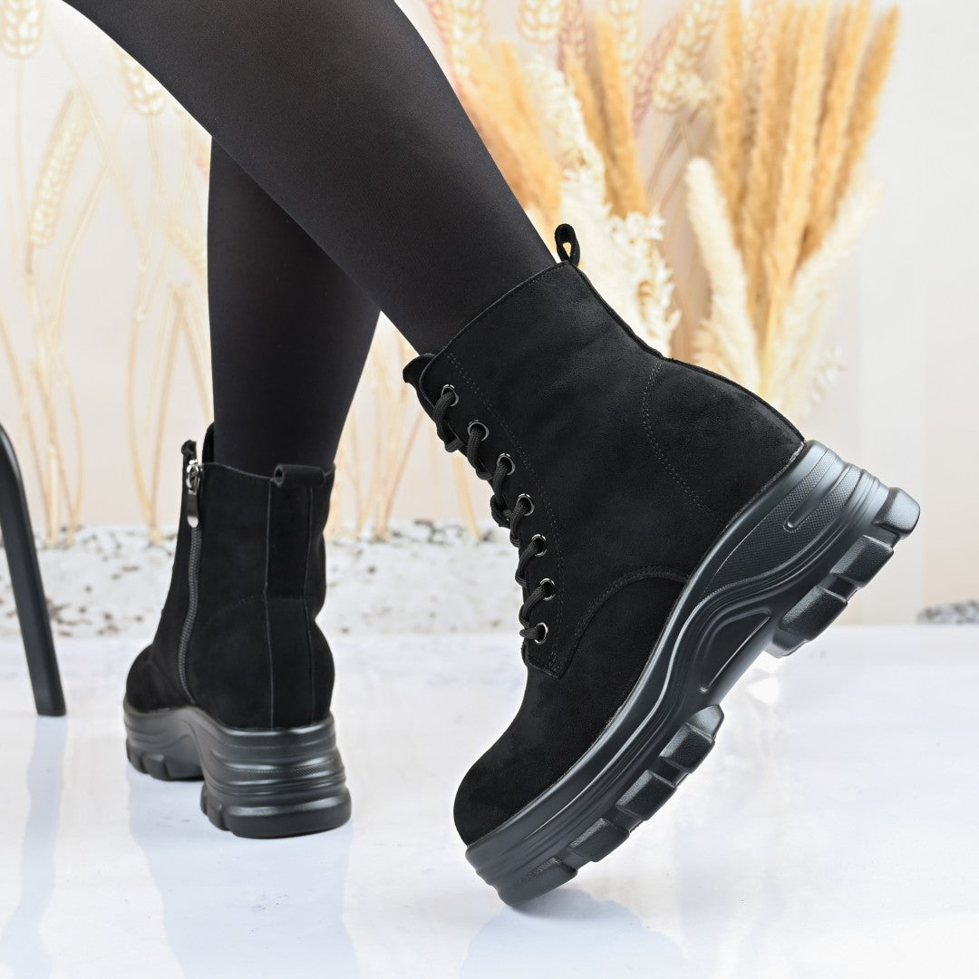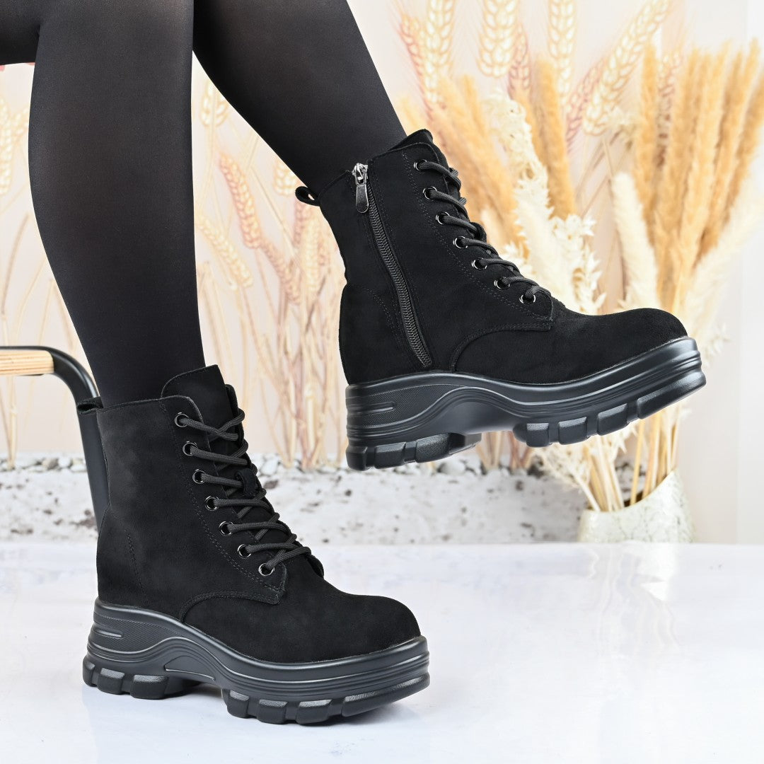 Ghete de damă din piele ecologică, cu interior căptușit pentru confort termic. Design casual, cu fermoar, ideal pentru sezonul toamnă-iarnă....