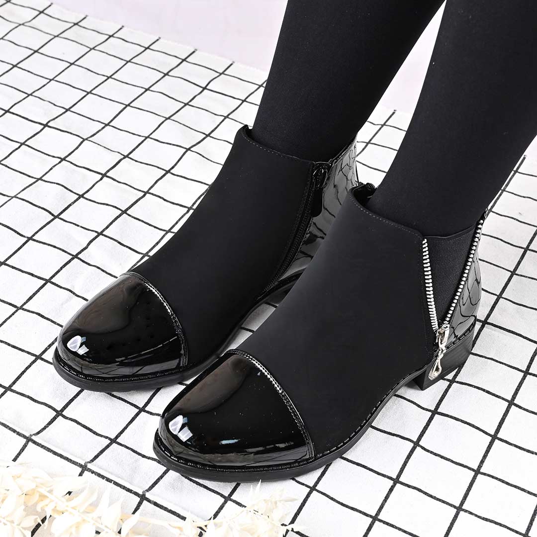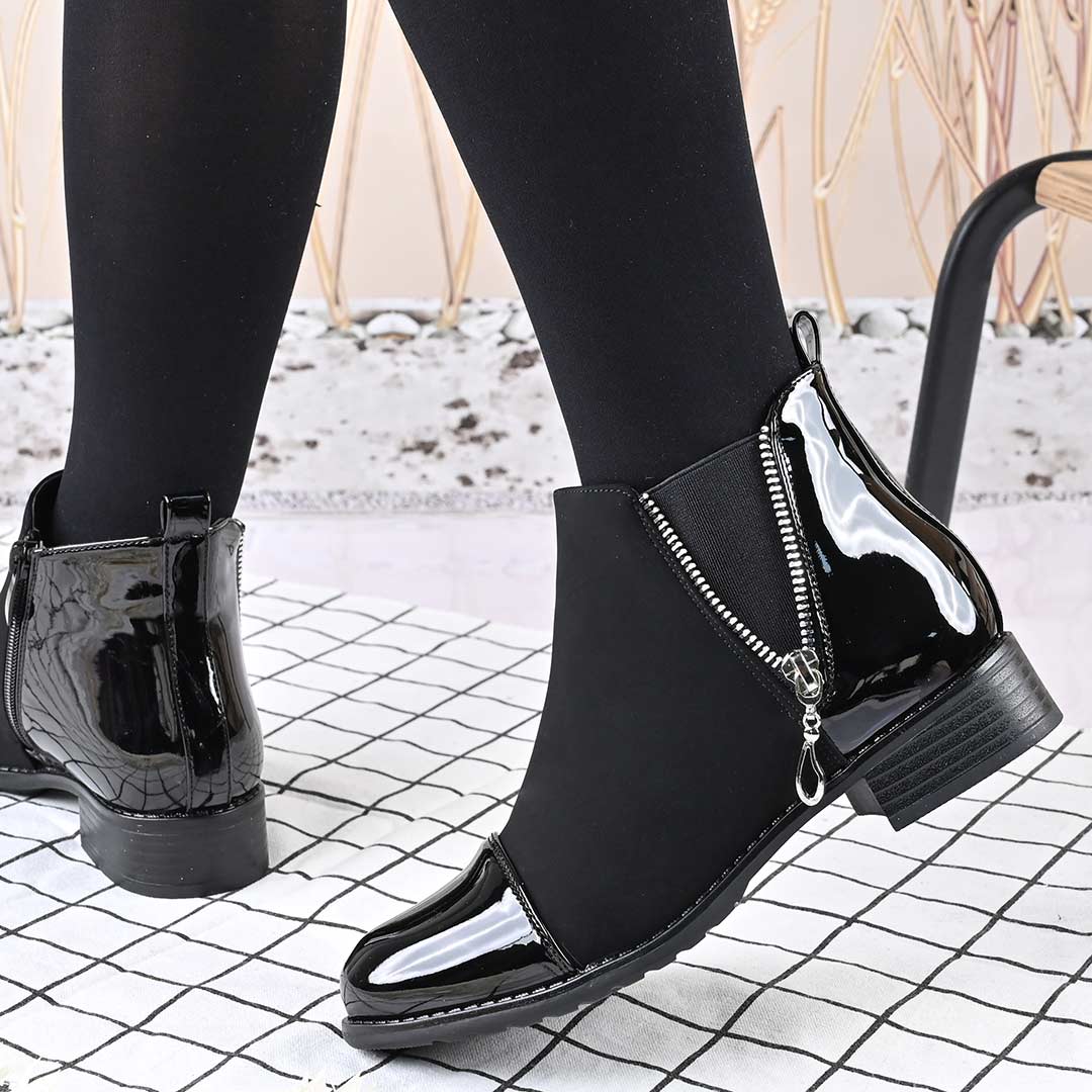 Ghete de damă elegante din piele ecologică, cu interior imblanit pentru confort. Design casual, culoare neagră, închidere cu fermoar, perfect...