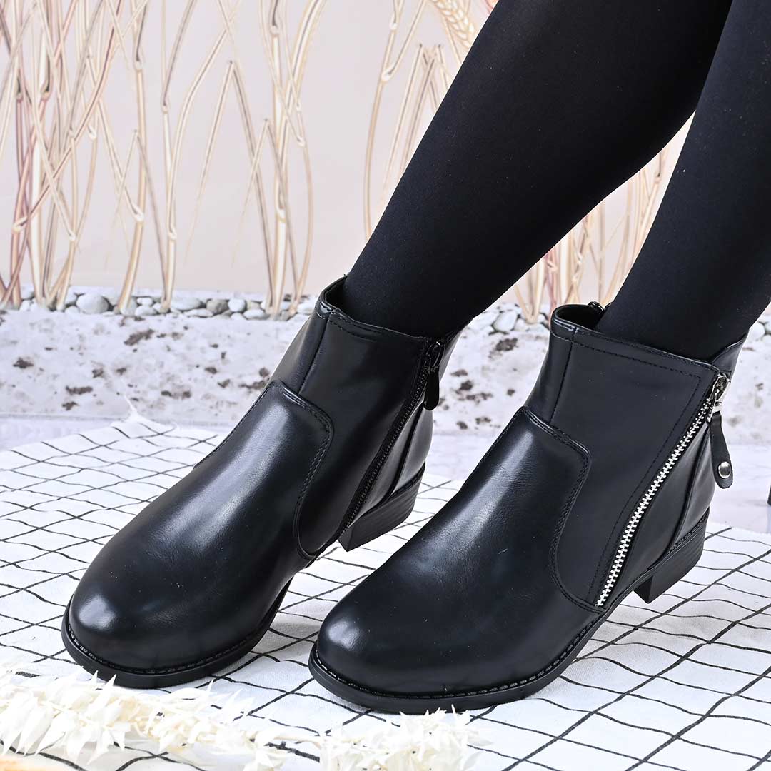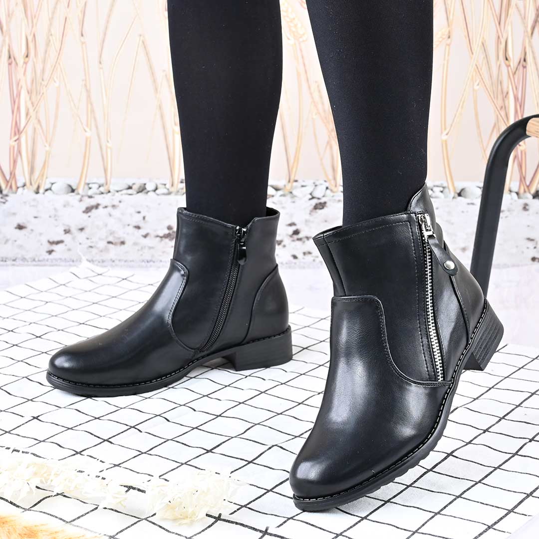 Ghete de damă scurte, fabricate din piele ecologică intoarsă, cu interior căptușit, ideale pentru sezonul toamnă-iarnă. Design casual, cu fermoar,...