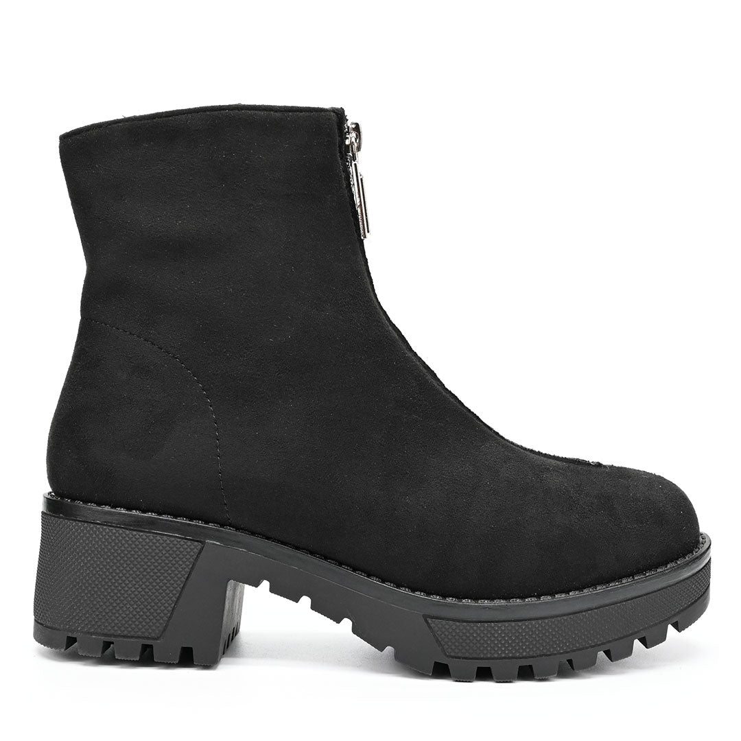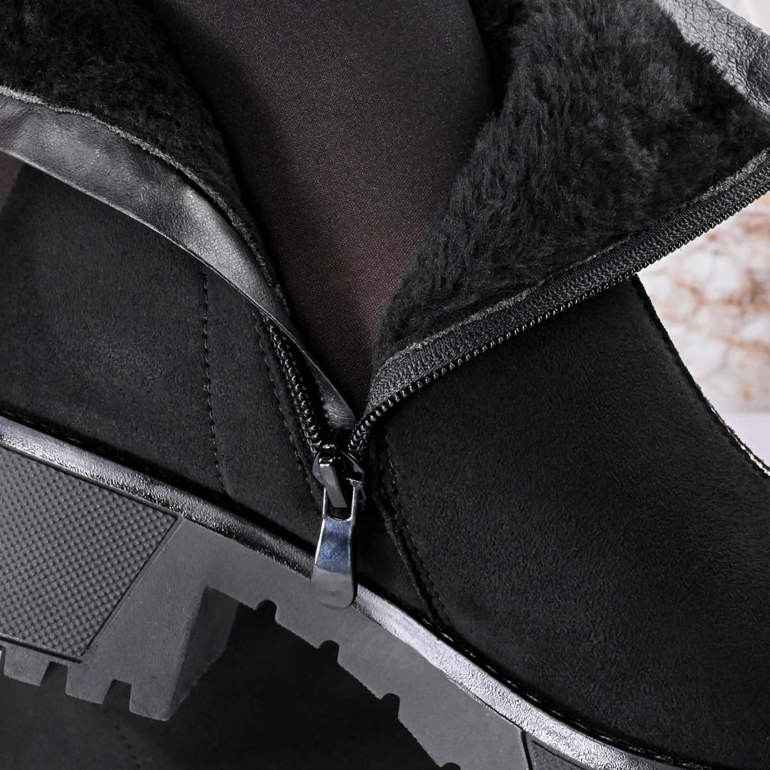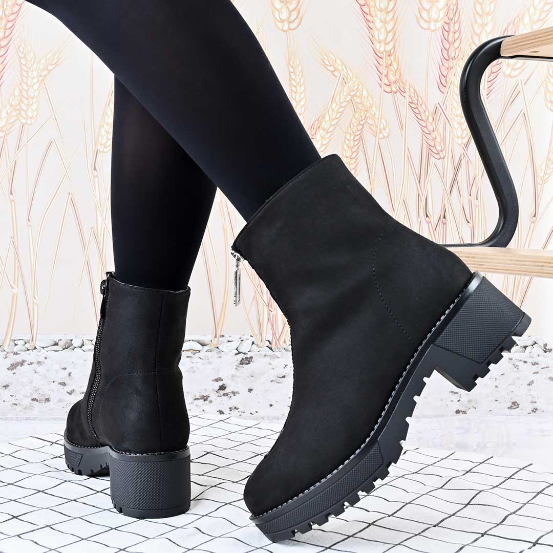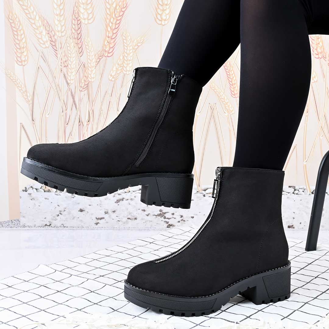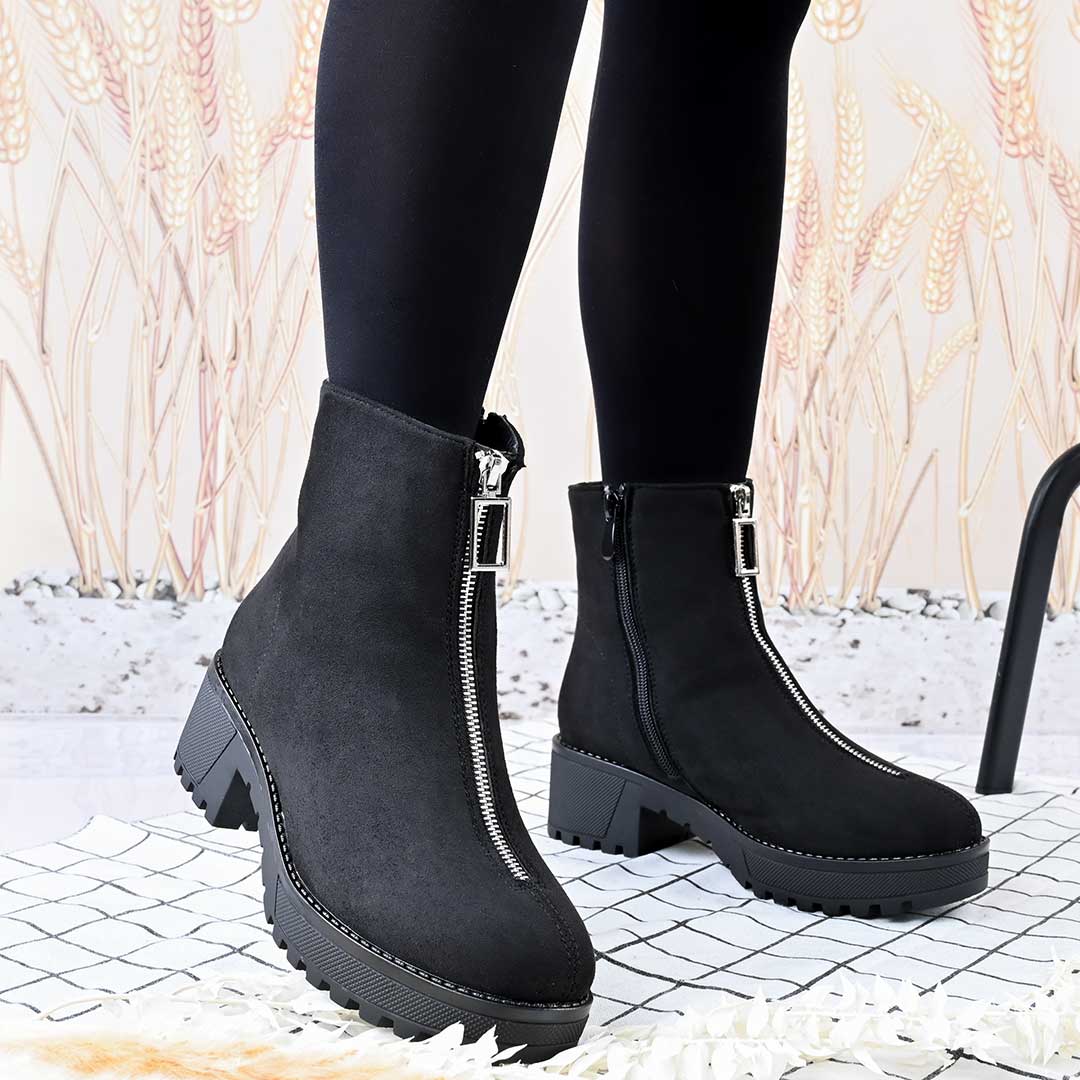 Ghete de damă din piele ecologică întoarsă, cu interior căptușit pentru confort, fermoar practic, talpă demi-wedge, ideale pentru sezonul toamnă-iarnă....