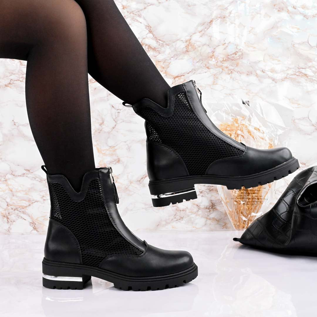Ghete de dama,Din piele ecologica,Plasa,talpa usoara,GD1006,Negre