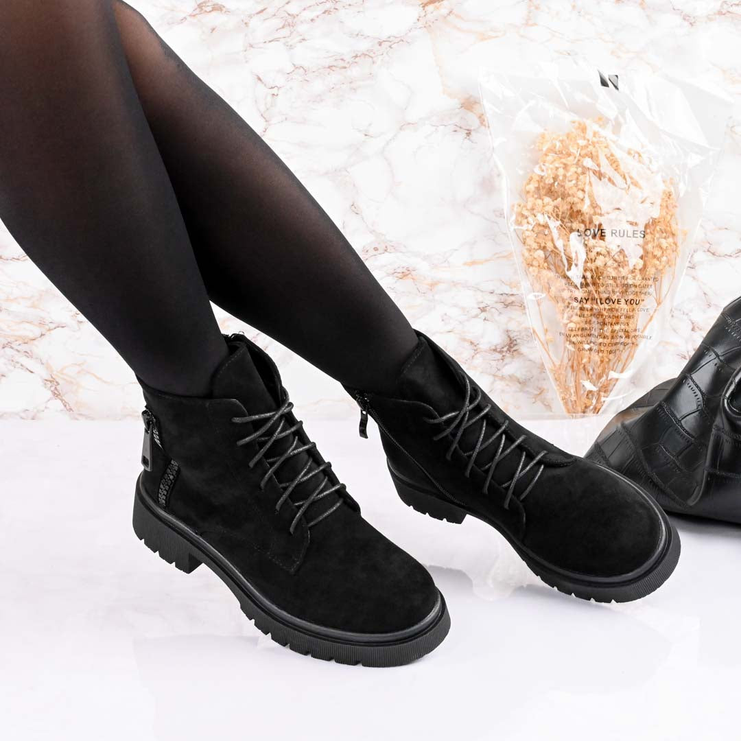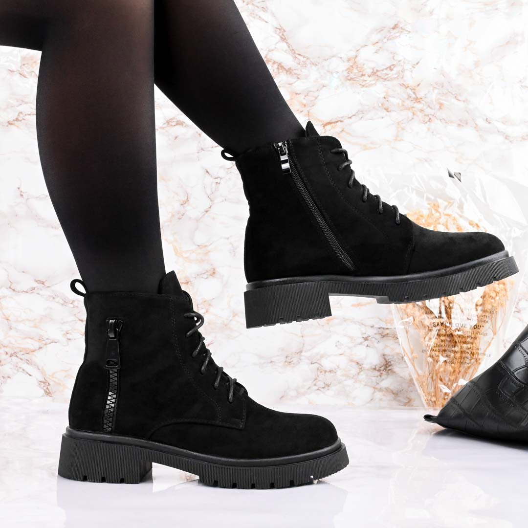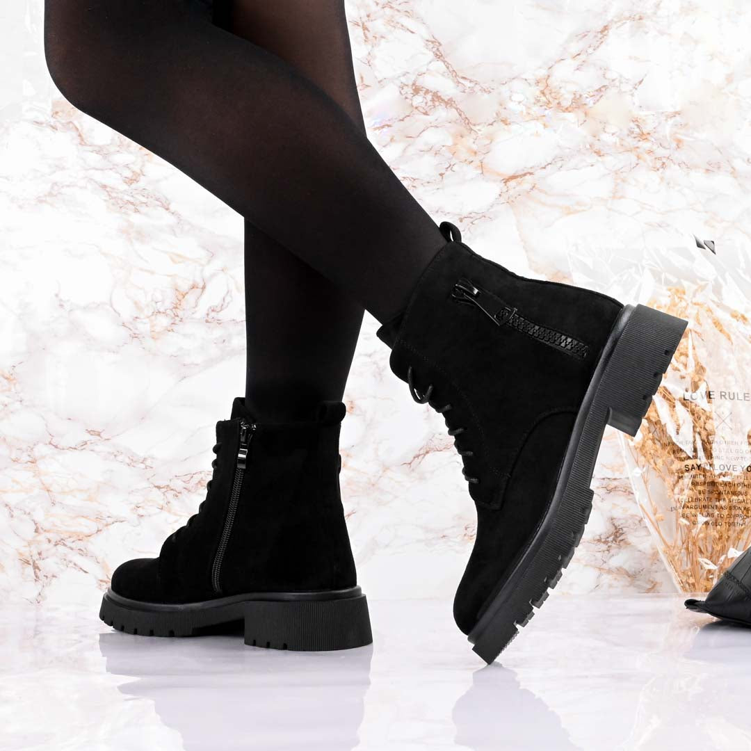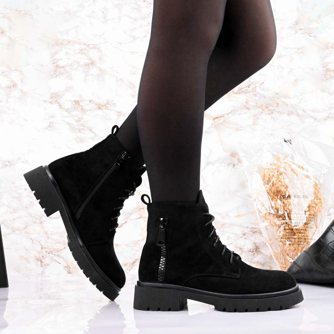 Ghete scurte de dama din piele ecologica cu interior imblanit,GD1083,Negru