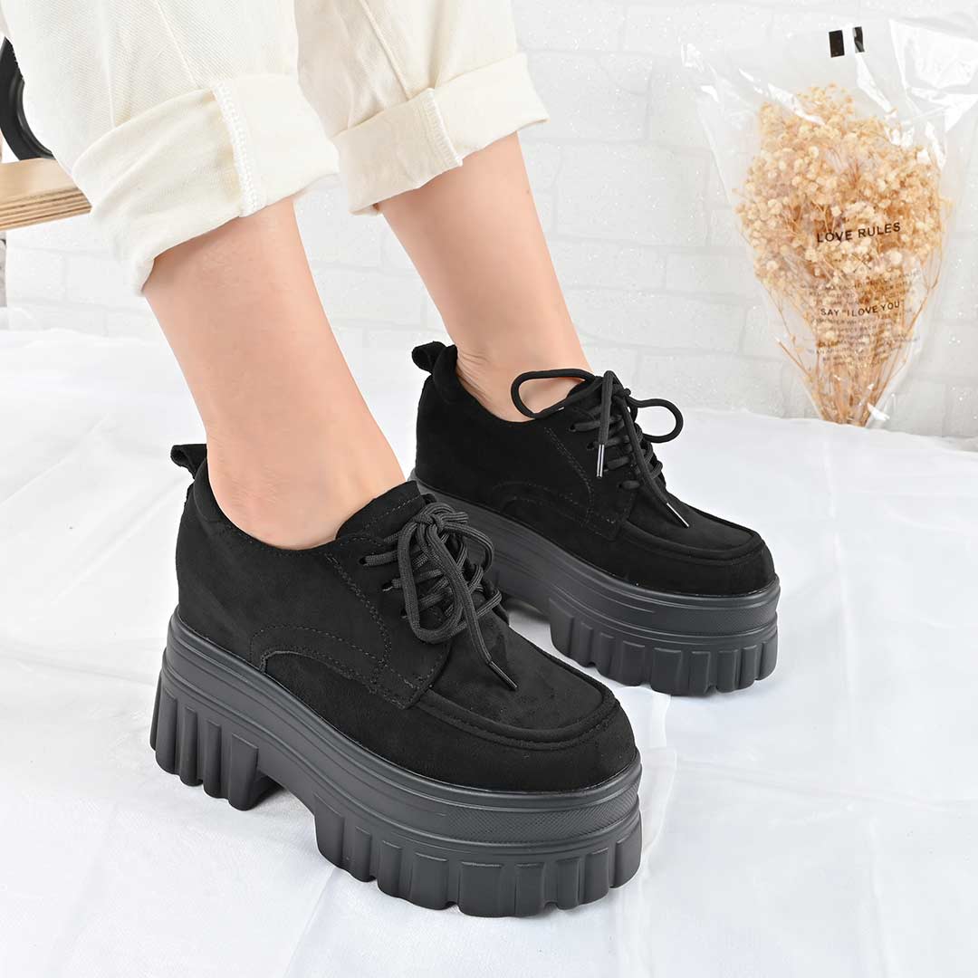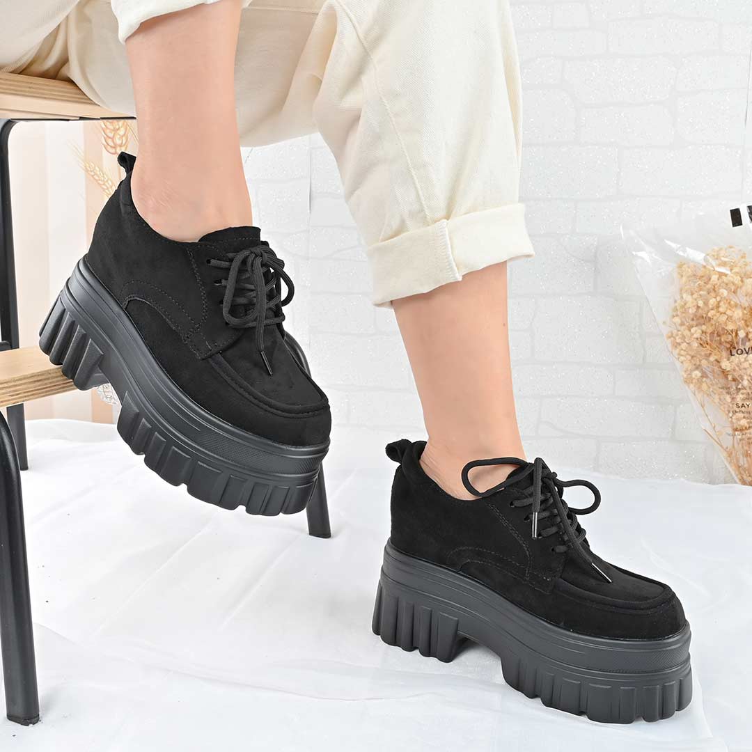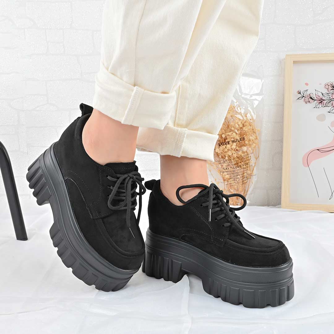 Pantofi casual de dama,Cu platforma,Din piele ecologica intoarsa,P1301,Negru