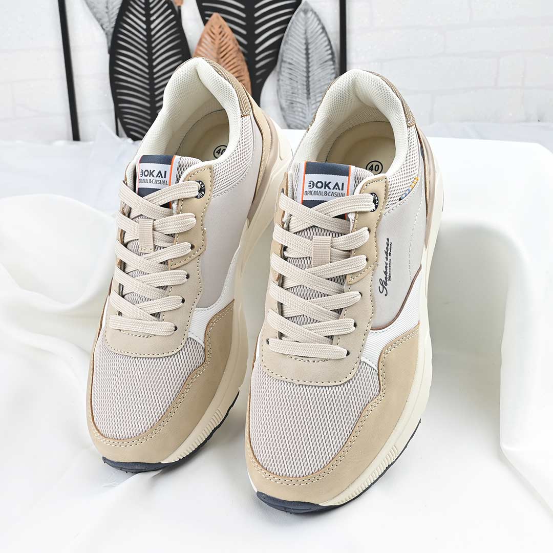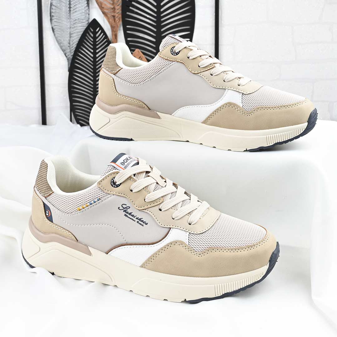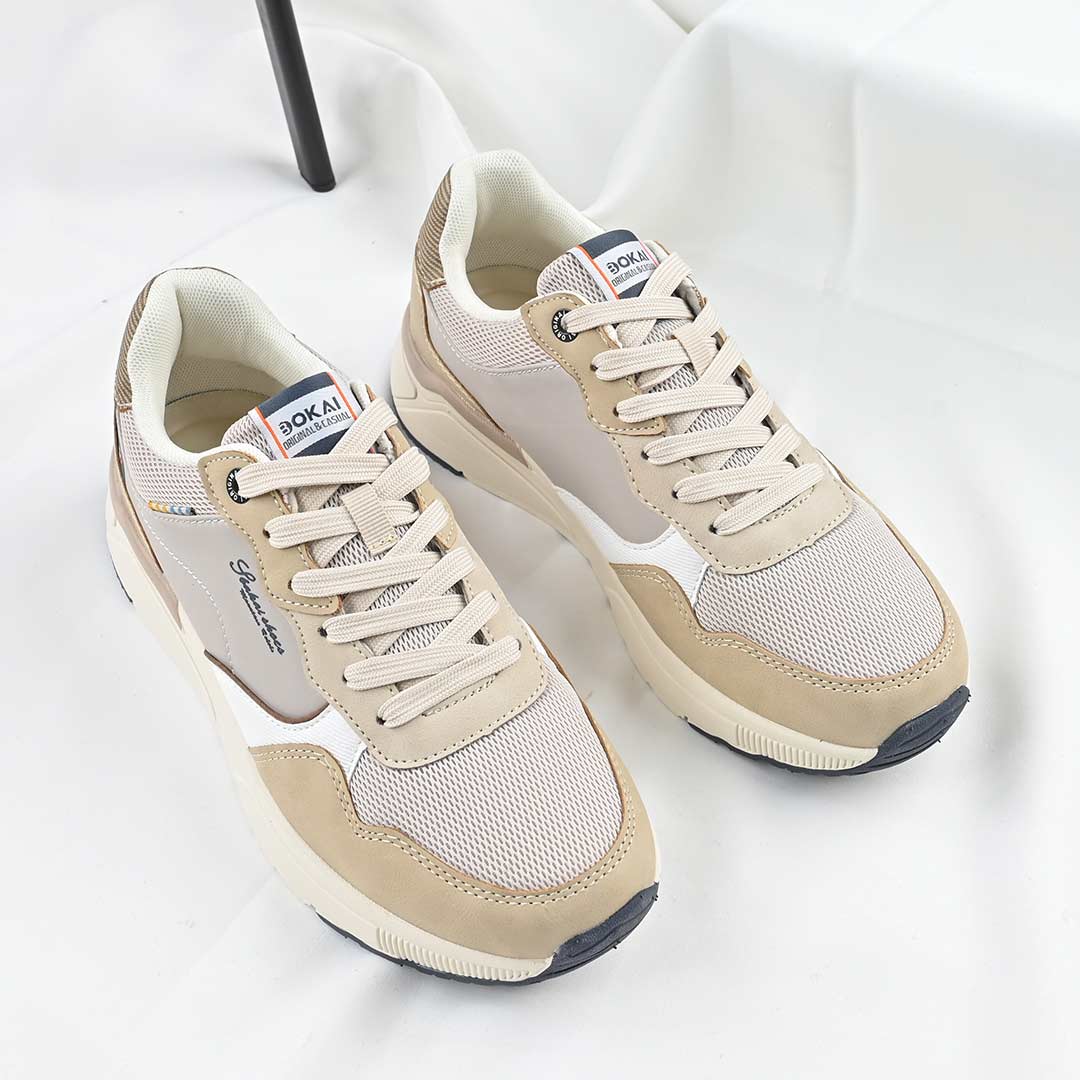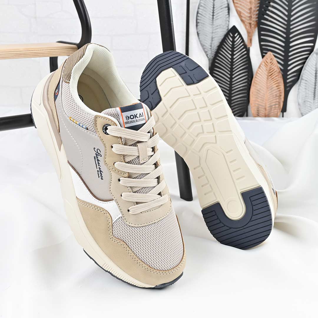 Pantofi sport pentru bărbați, bej, din piele ecologică cu inserții din plasă, interior textil și talpă TPU. Stil casual, șireturi,...