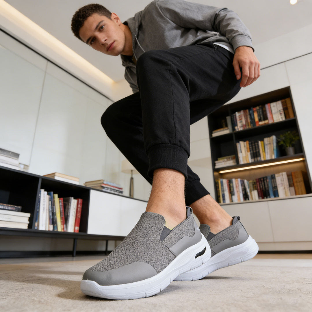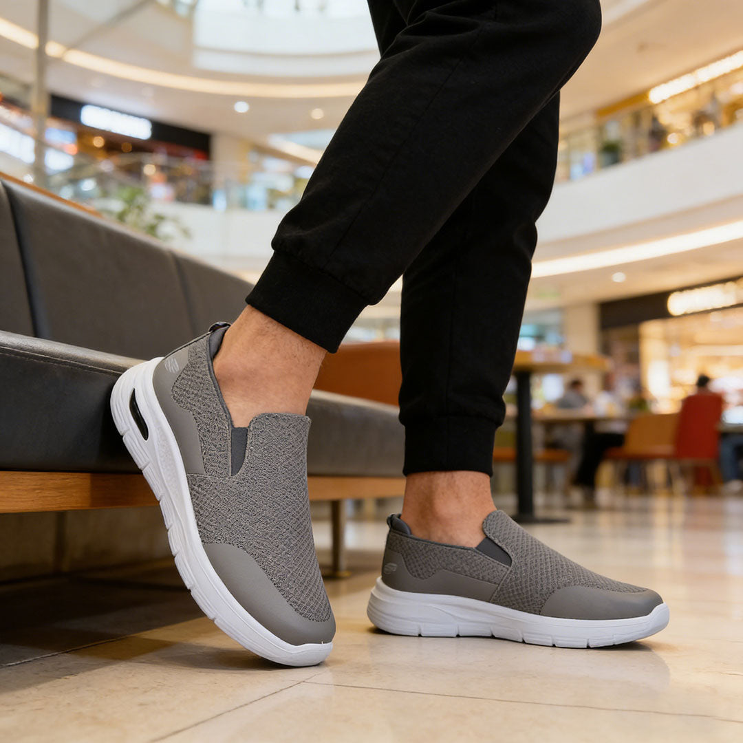 Pantofi sport bărbați gri din material textil, interior respirabil, talpă TPU ușoară, design uni casual, confortabili pentru primăvară-vară-toamnă.