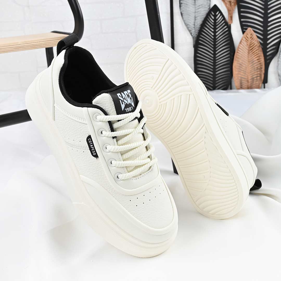 Pantofi sport bărbătești, combinație bej-cu-negru, din piele ecologică, căptușeală textilă și talpă TPU. Stil casual, închidere cu șiret, confort pentru...