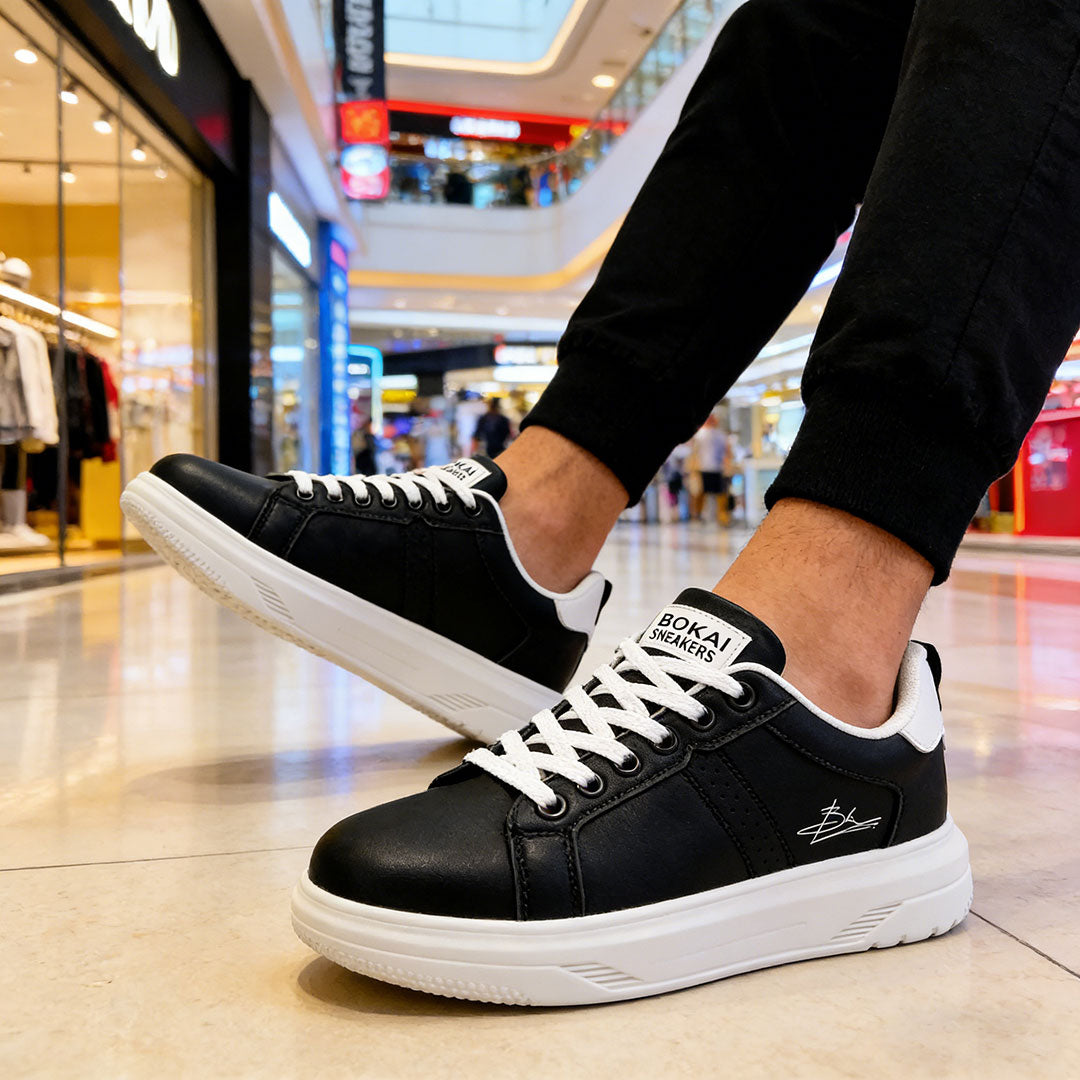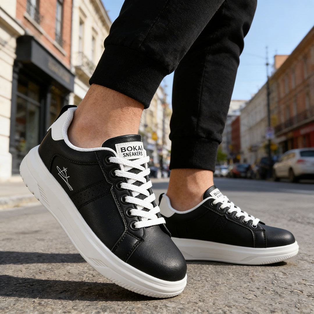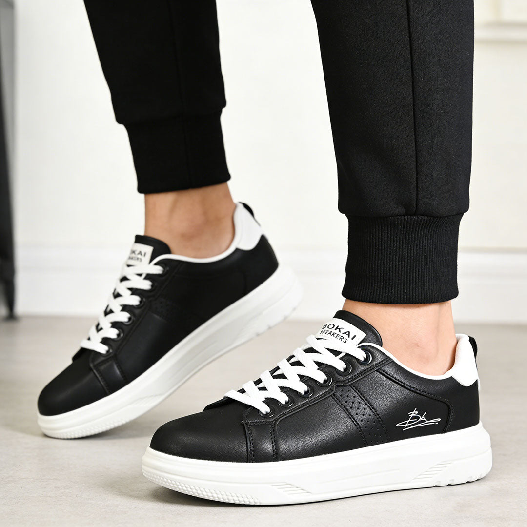 Pantofi sport casual pentru bărbați, din piele ecologică neagră, interior textil confortabil, talpă TPU rezistentă și șireturi pentru fixare sigură....