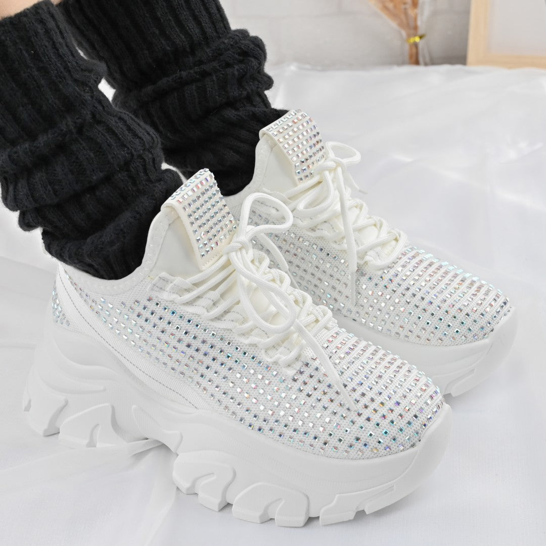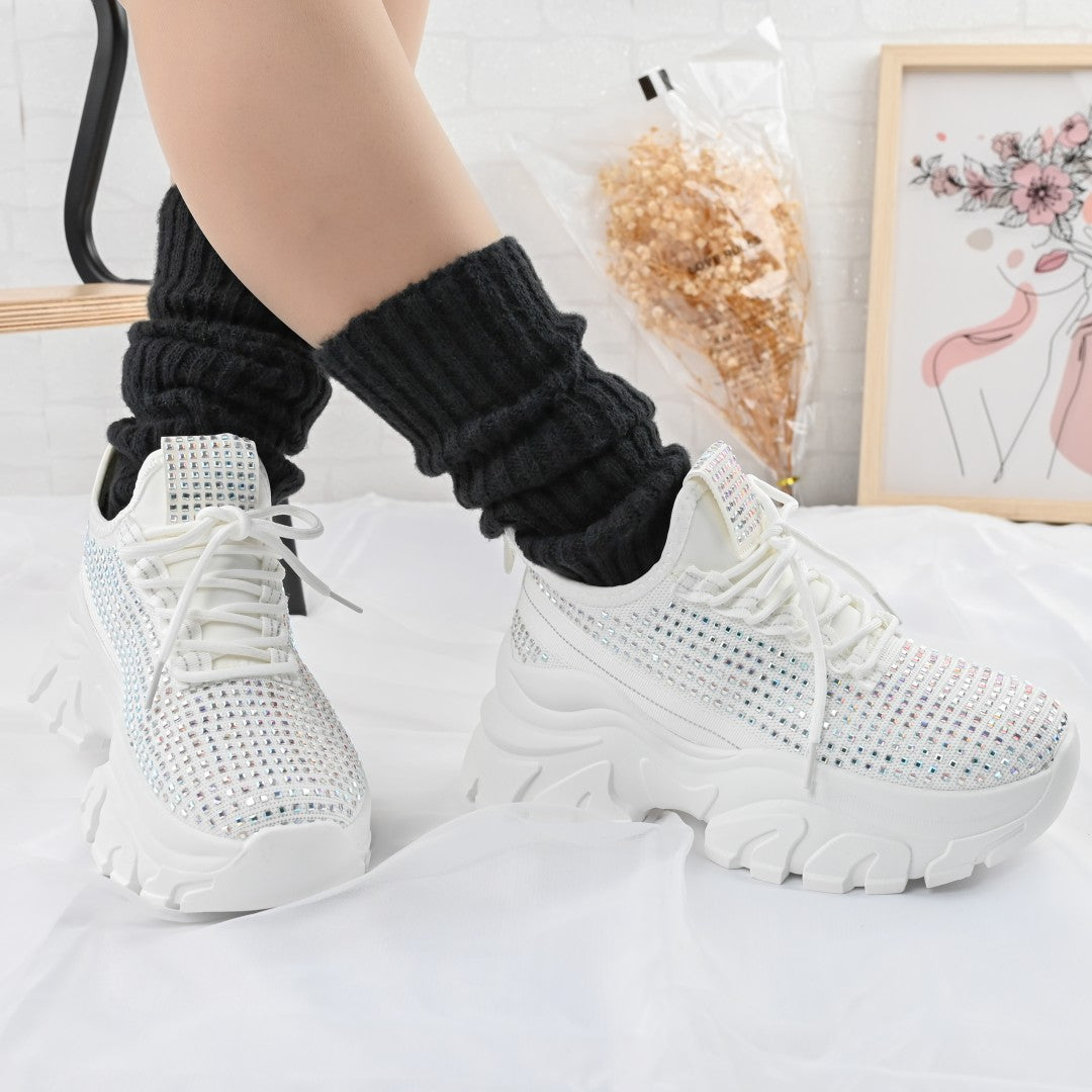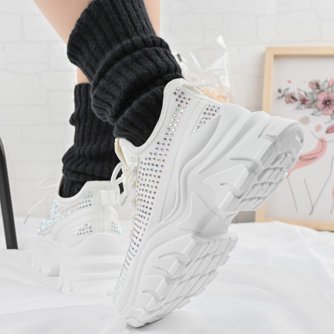 Pantofi Sport de dama,0146,cu pietre,Alb