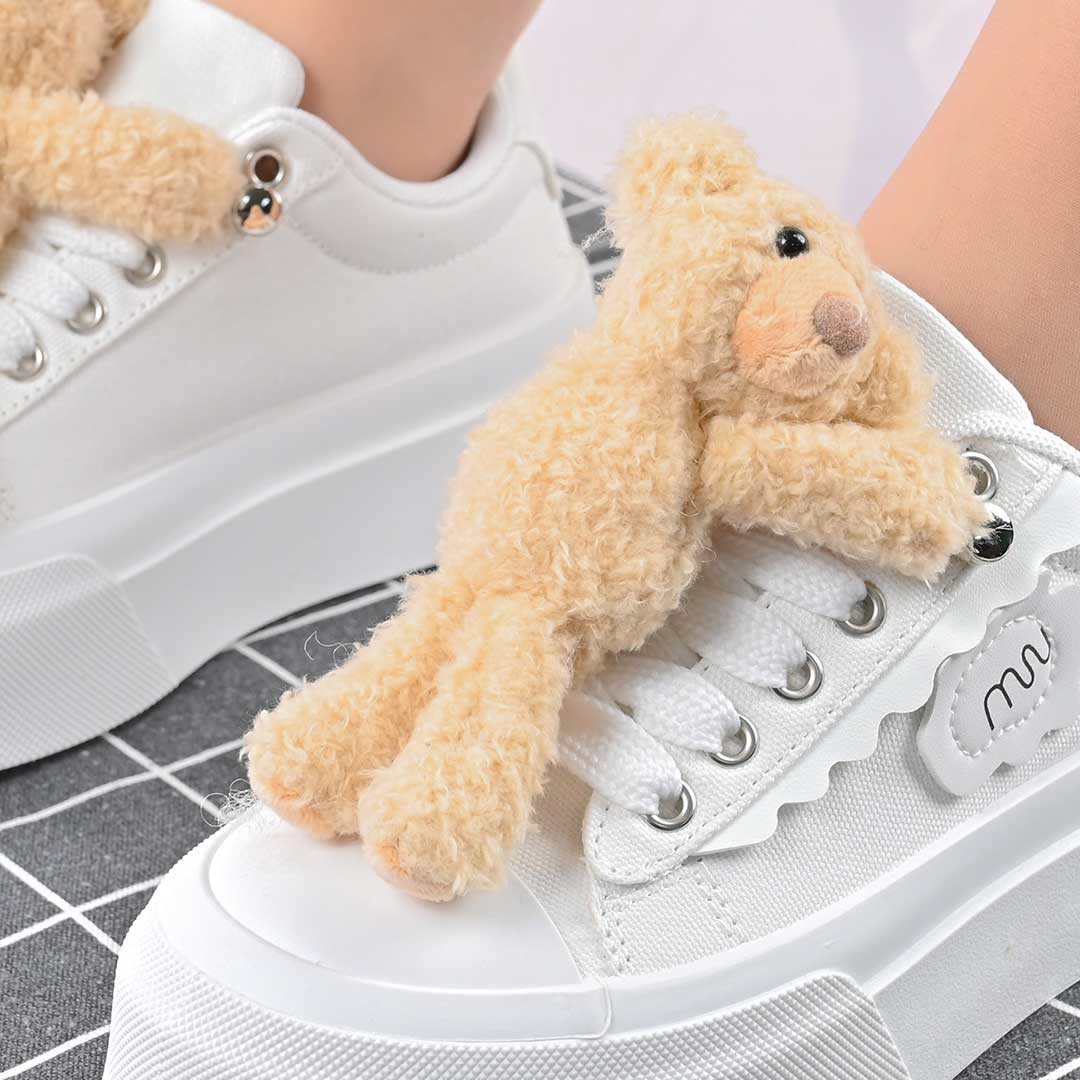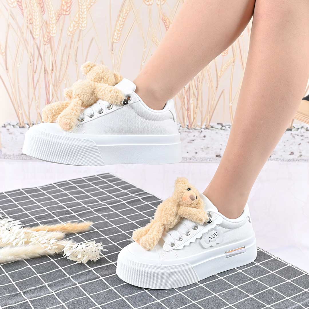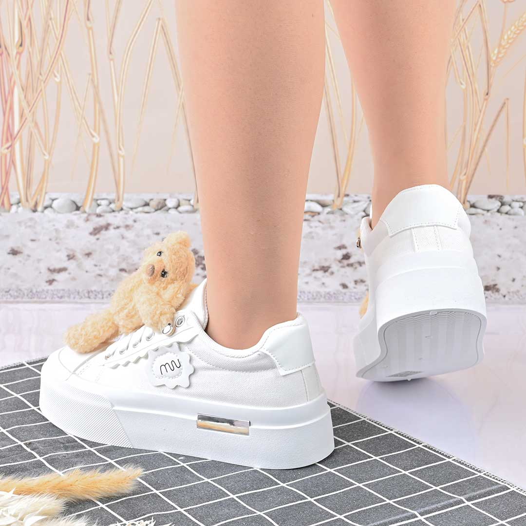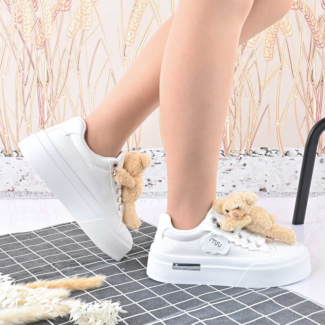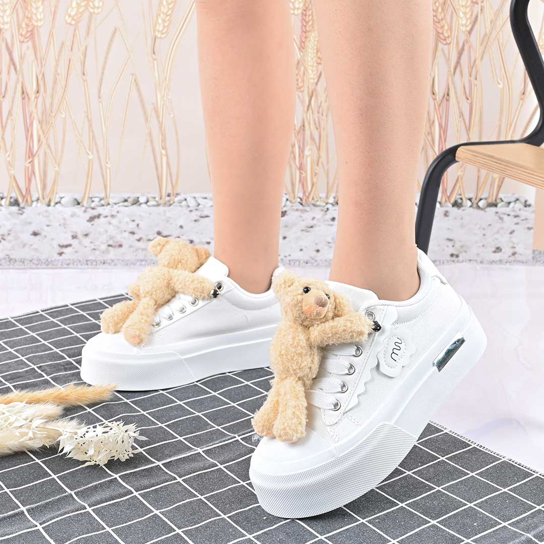 Pantofi sport de dama,acesoriu ursulet detasabil,D1425,Alb