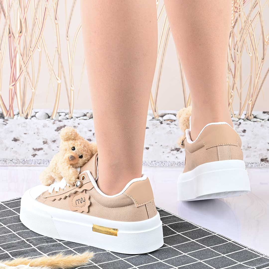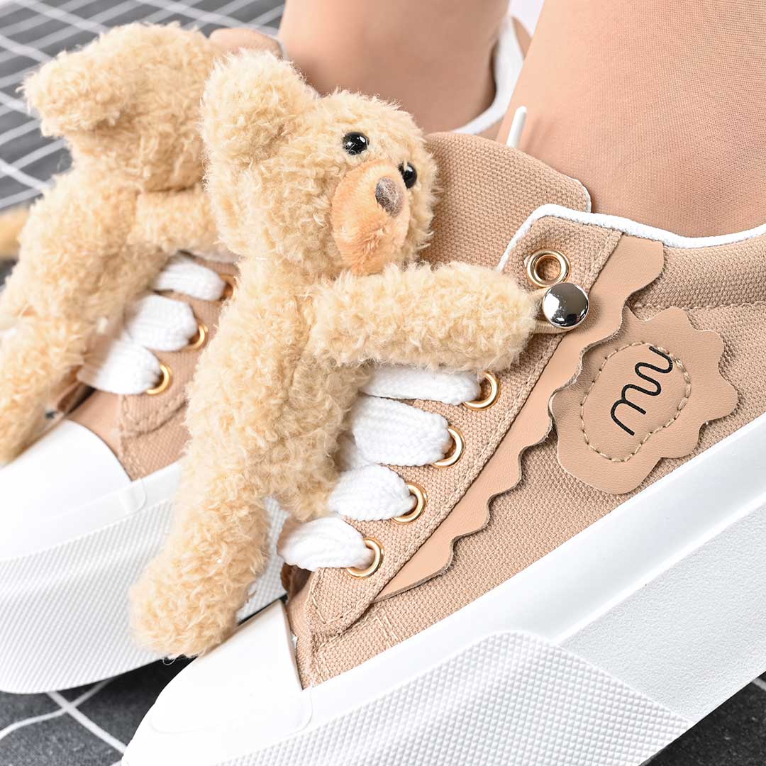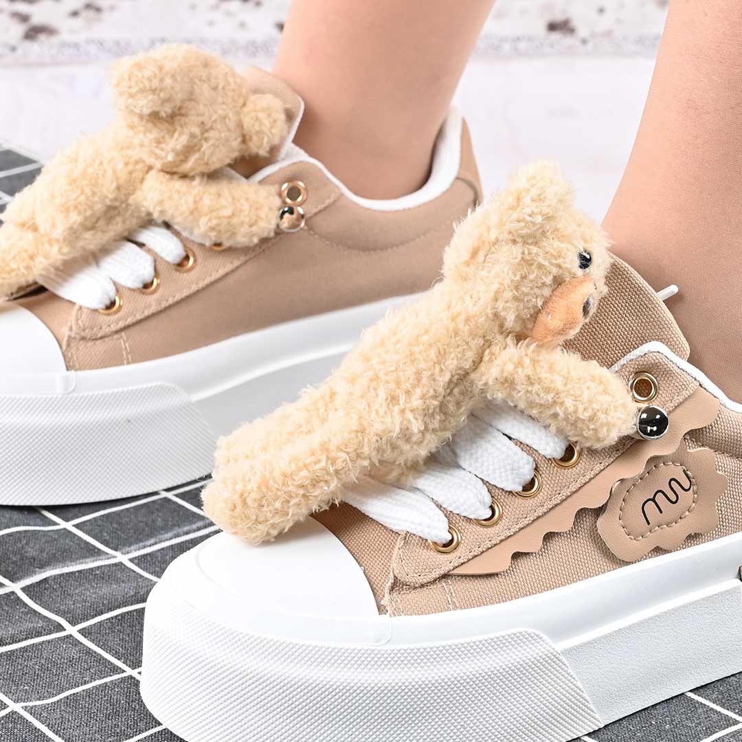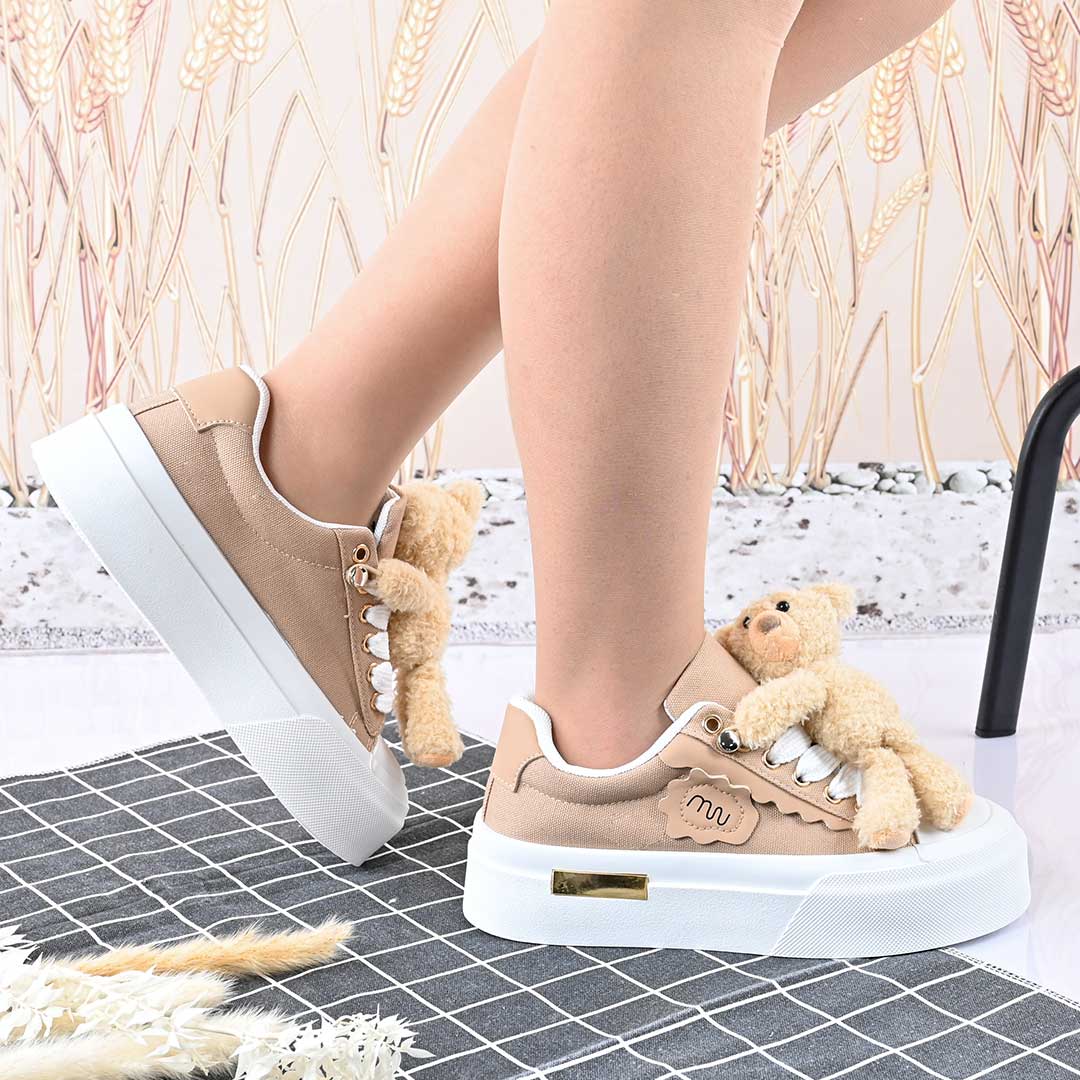 Pantofi sport de dama,acesoriu ursulet detasabil,D1425,Kaki