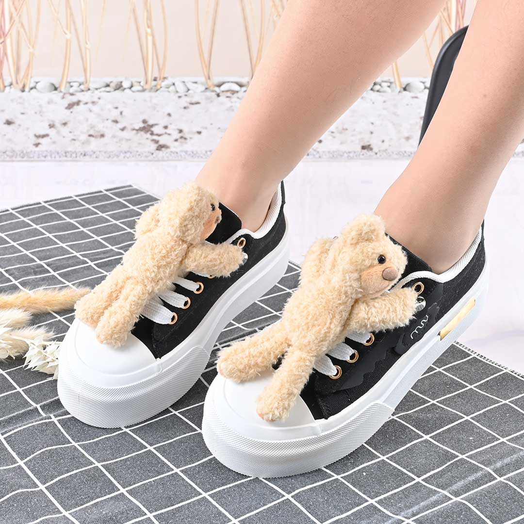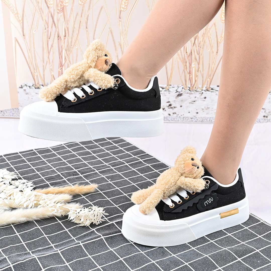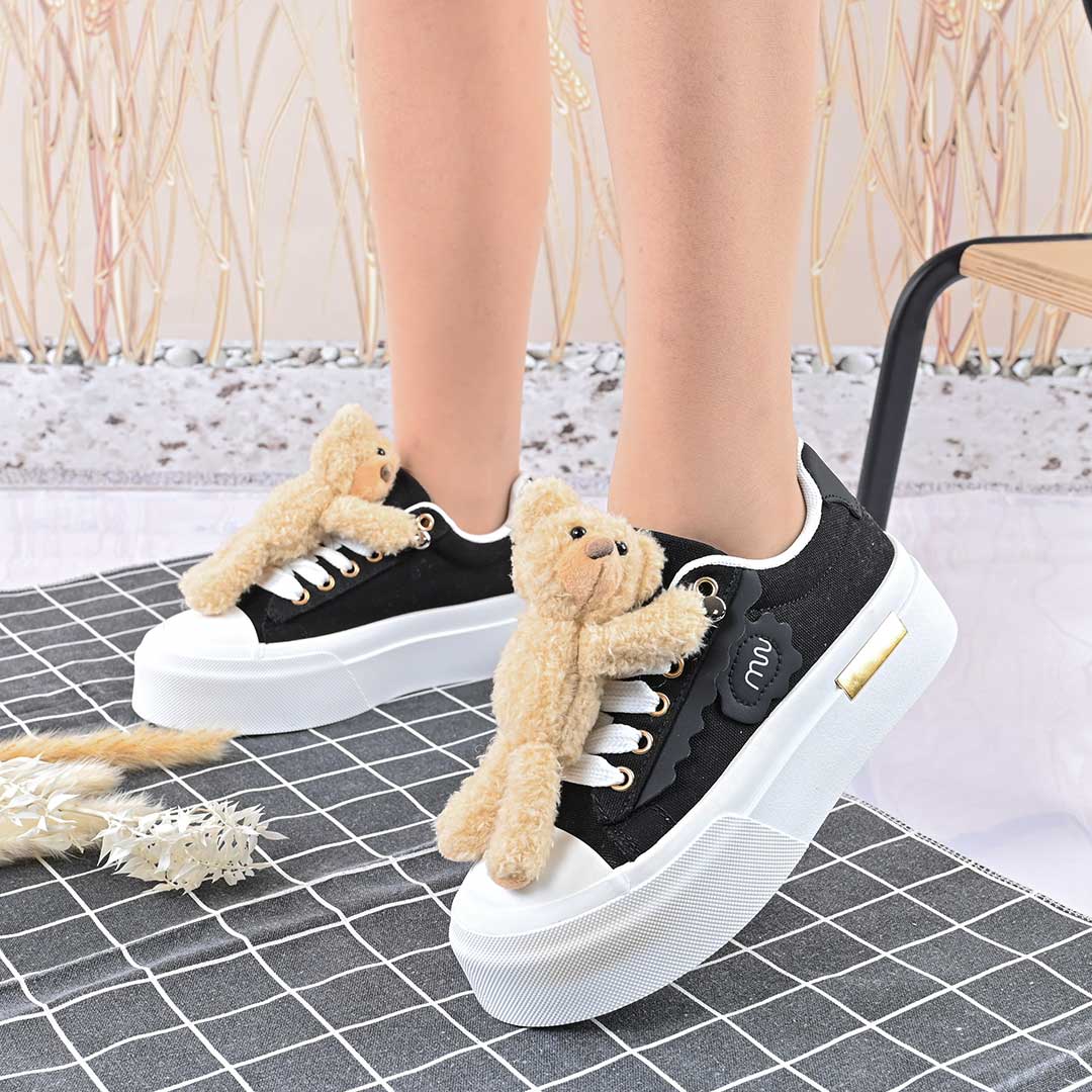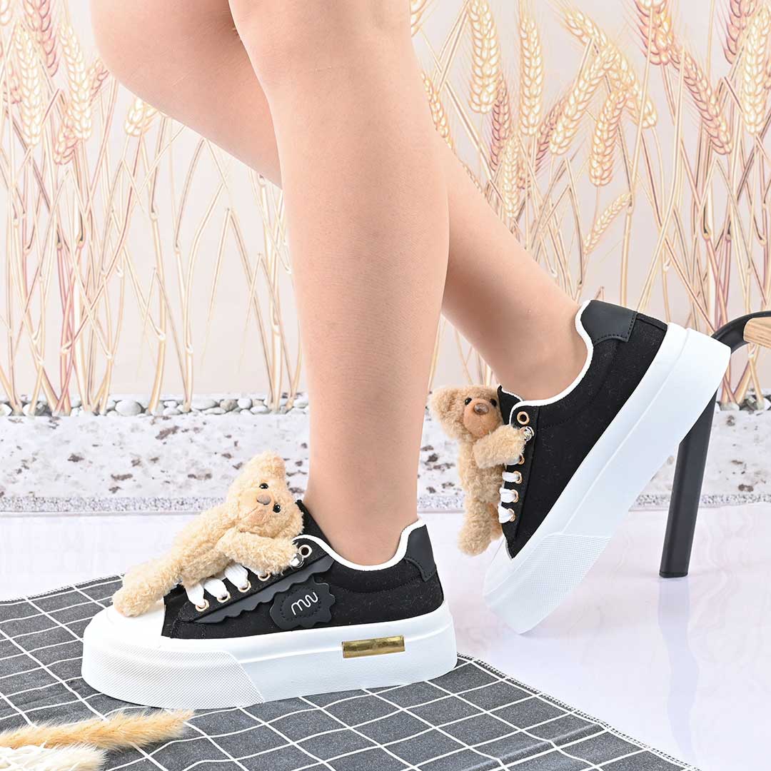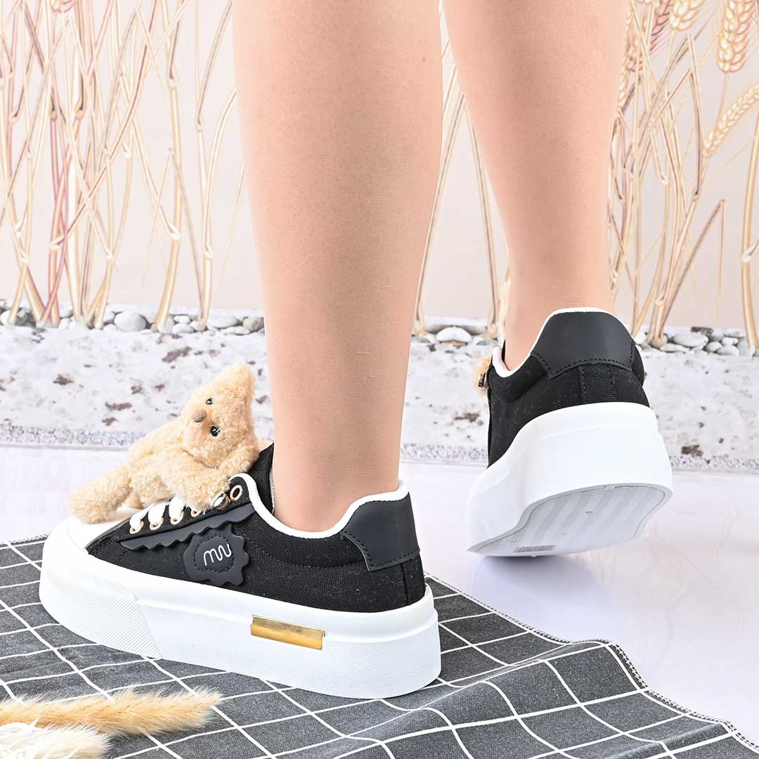 Pantofi sport de dama,acesoriu ursulet detasabil,D1425,Negru