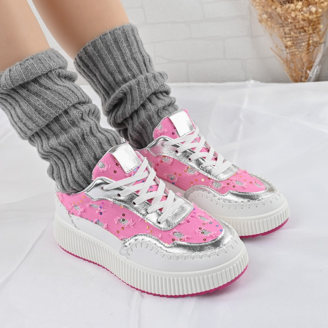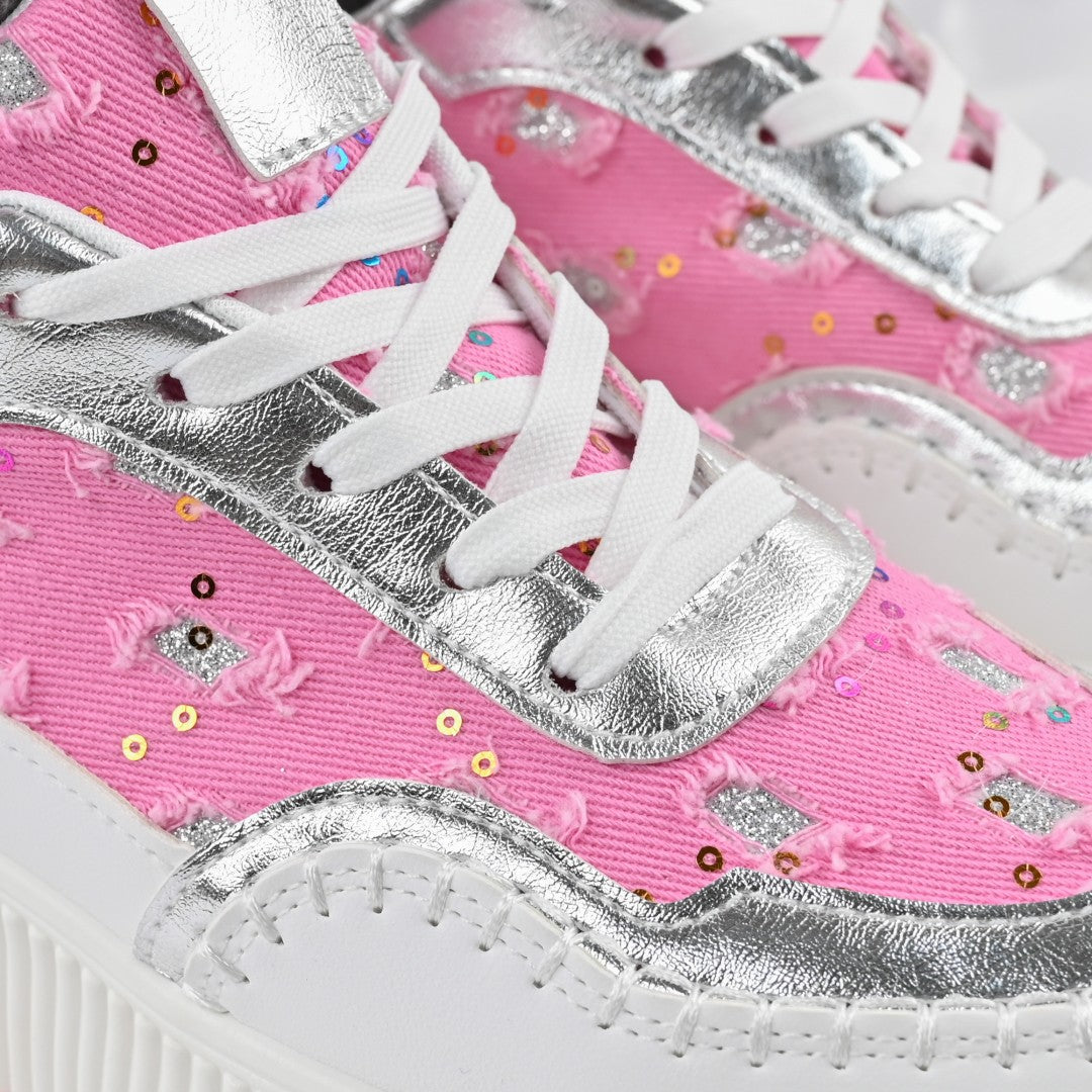 Descoperiți pantofii sport pentru dame, confecționați din denim de calitate, într-o nuanță vibrantă de roz. Cu o talpă cu platformă...