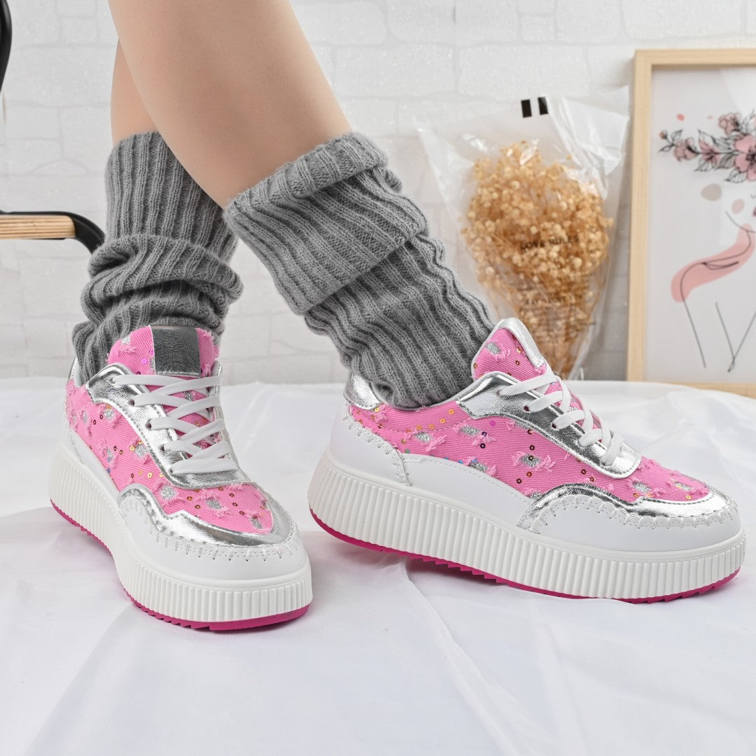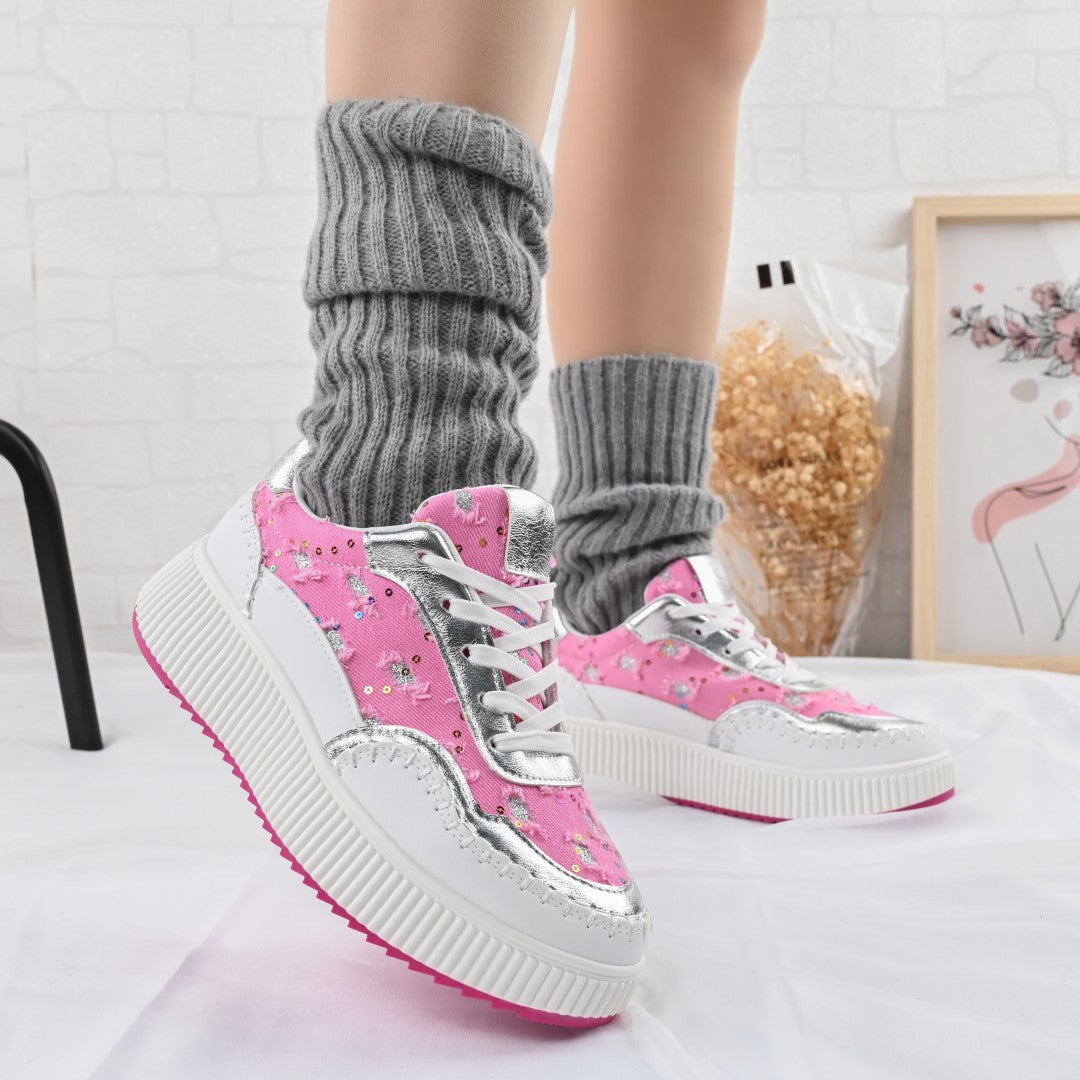 Pantofi sport de dama,Cu aplicarii de denim,D1327,Roz
