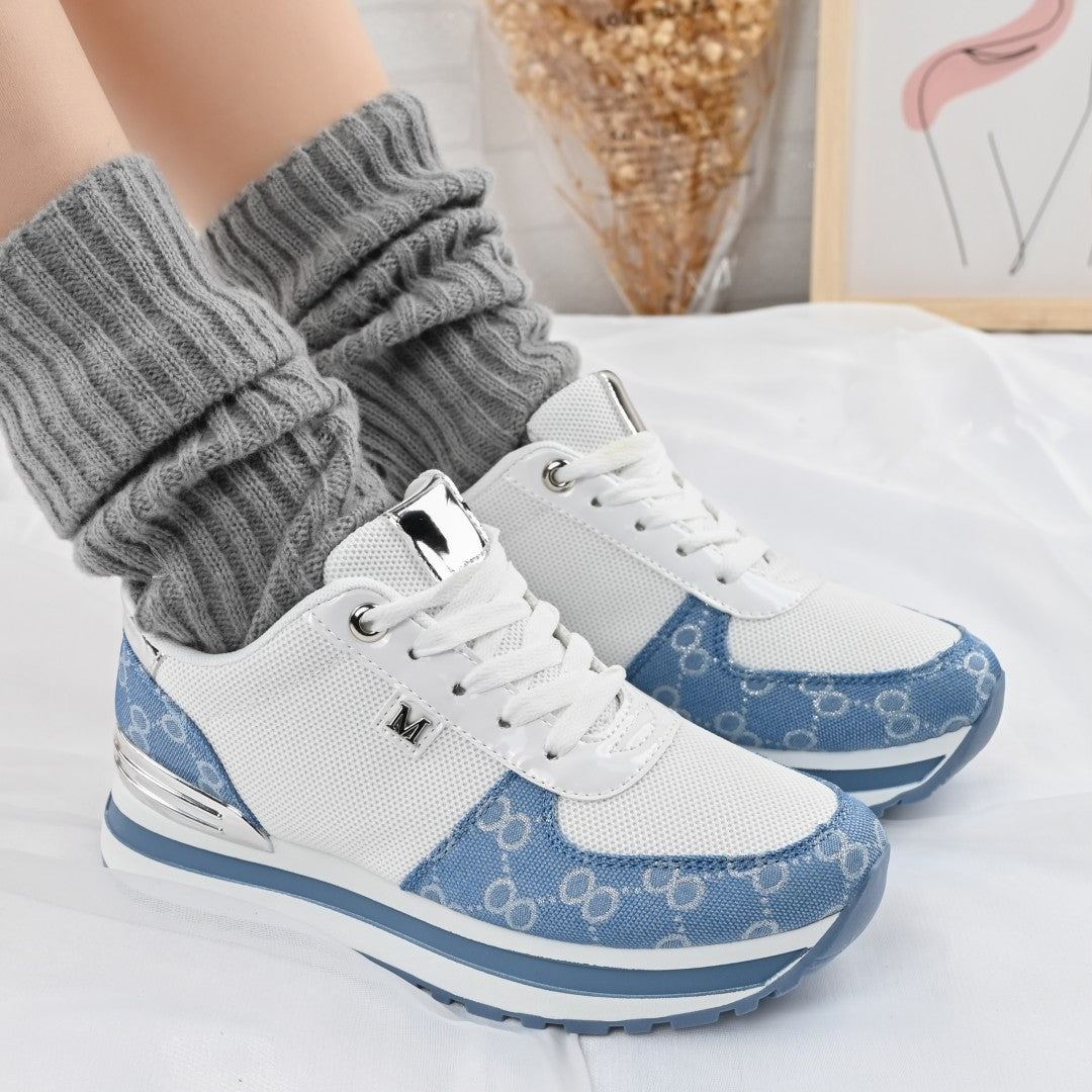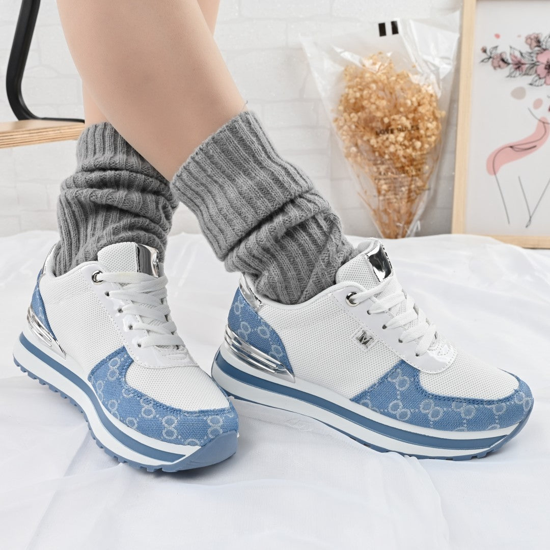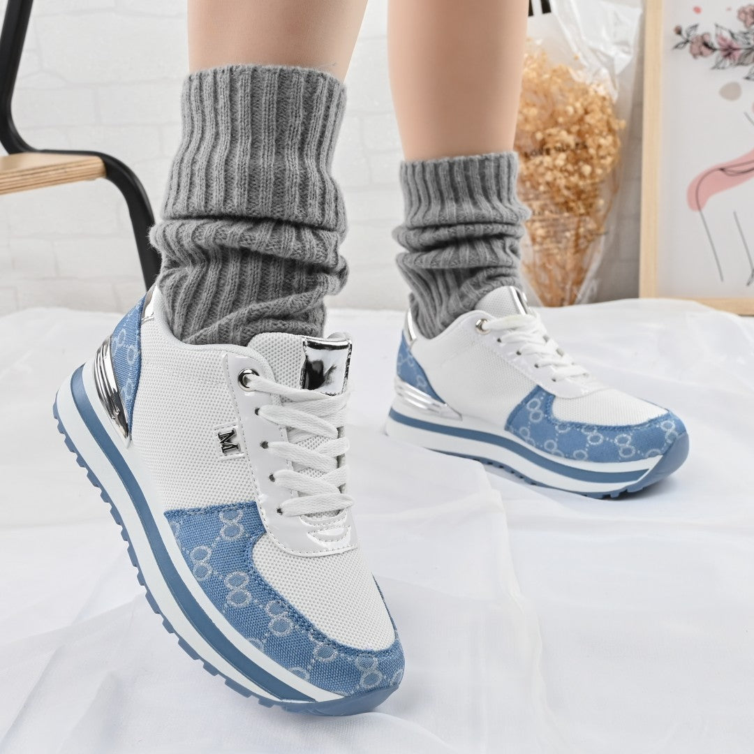 Pantofi sport De dama,cu insertii de plasa,1266,Alb cu Albastru