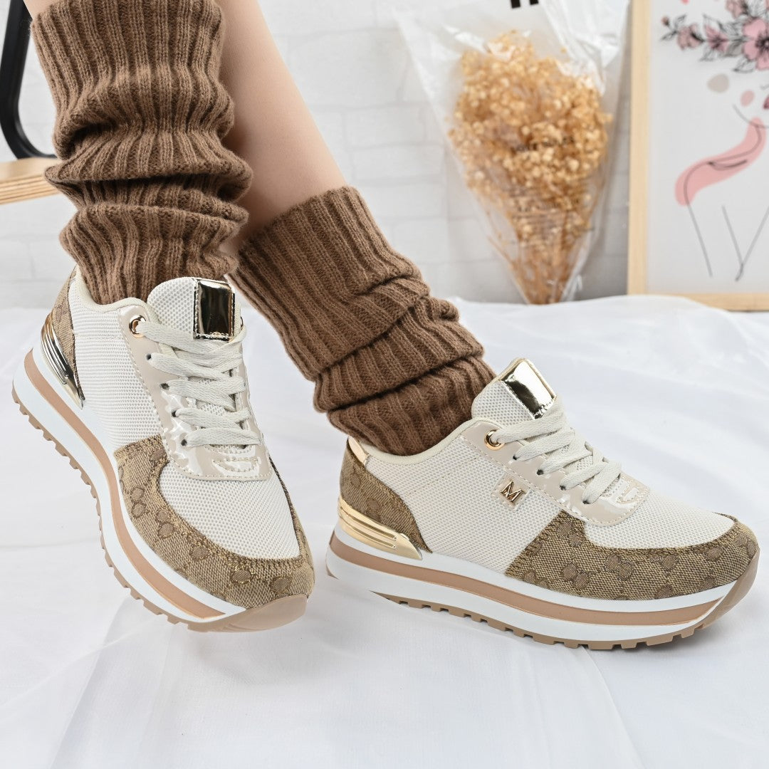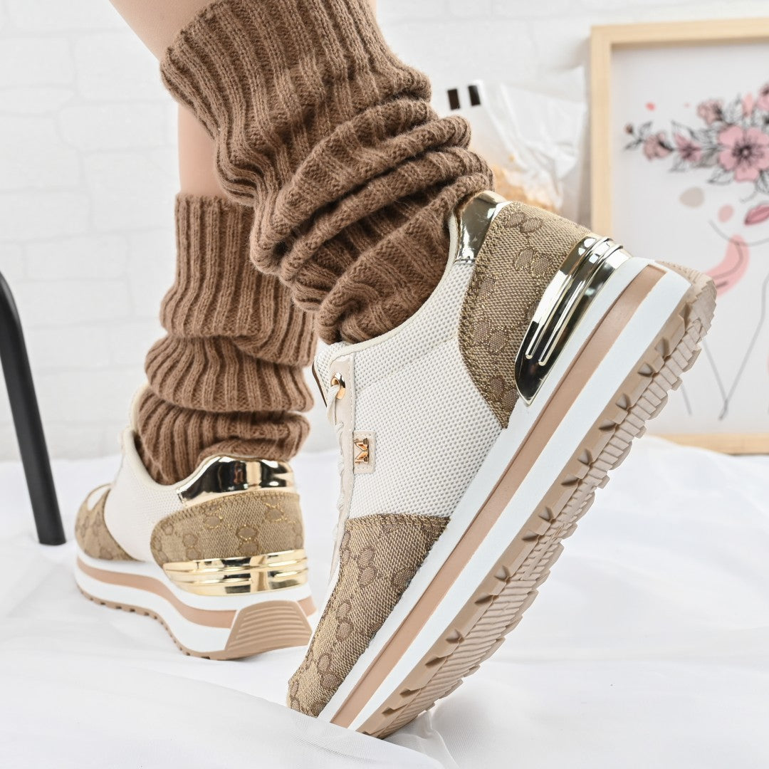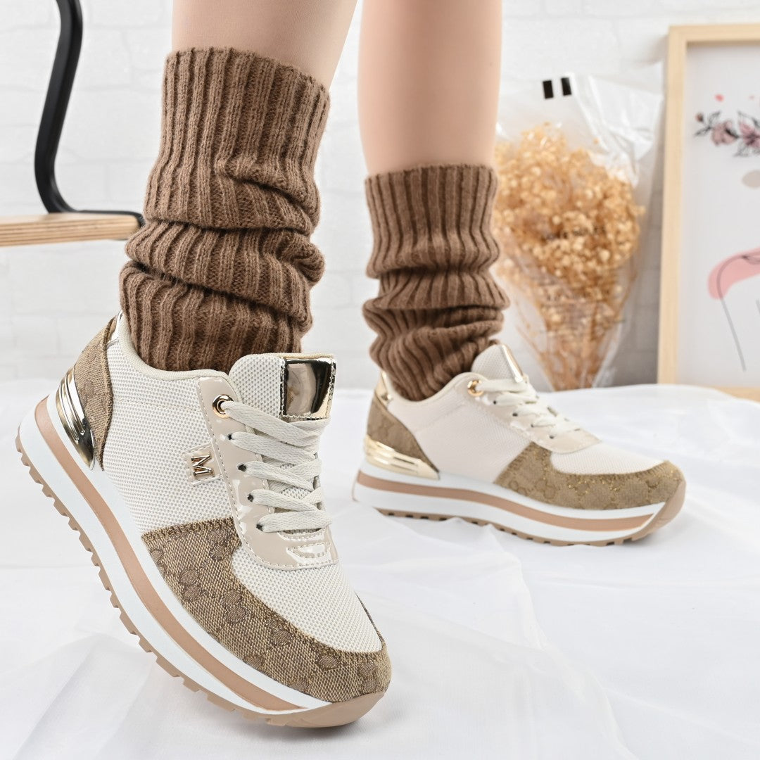 Pantofii sport de damă în nuanța bej, cu inserții din plasă, oferă confort și stil. Construiți din pânză și material...