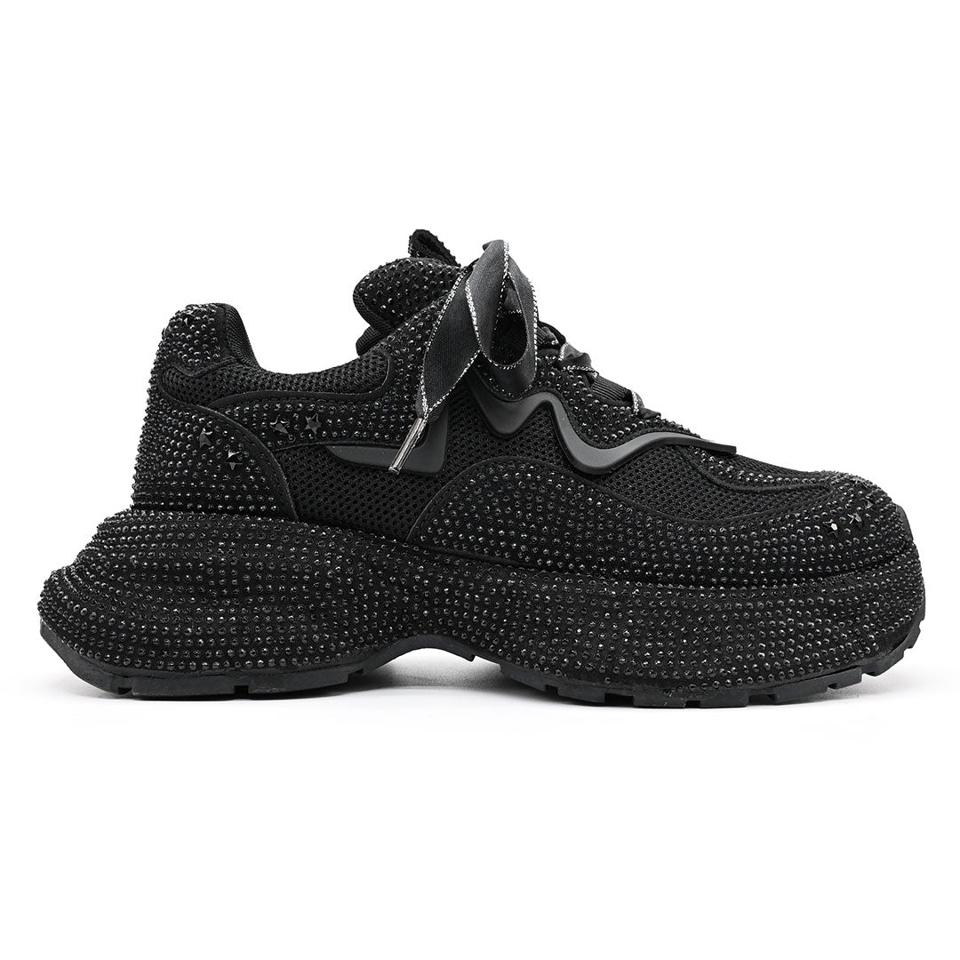 Pantofi Sport De Dama,cu insertii de plasa,Cu pietre,D1385,Negru