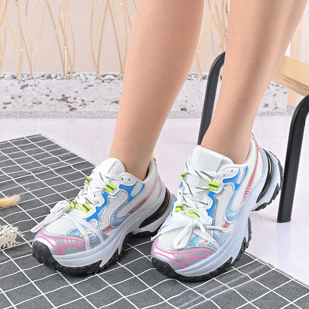 Pantofii sport de damă D1424, albați cu inserții de plasă, oferă un confort excelent și un stil modern. Realizați din...