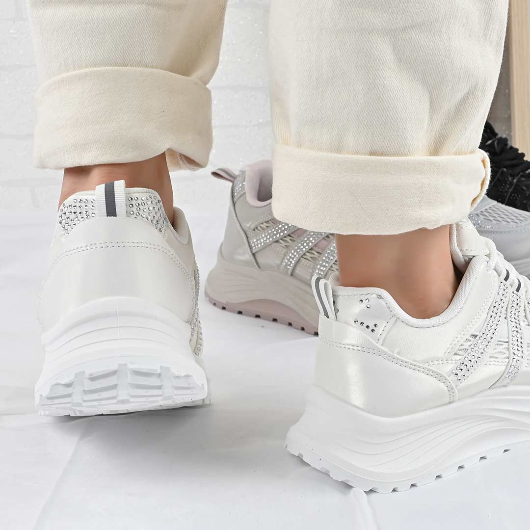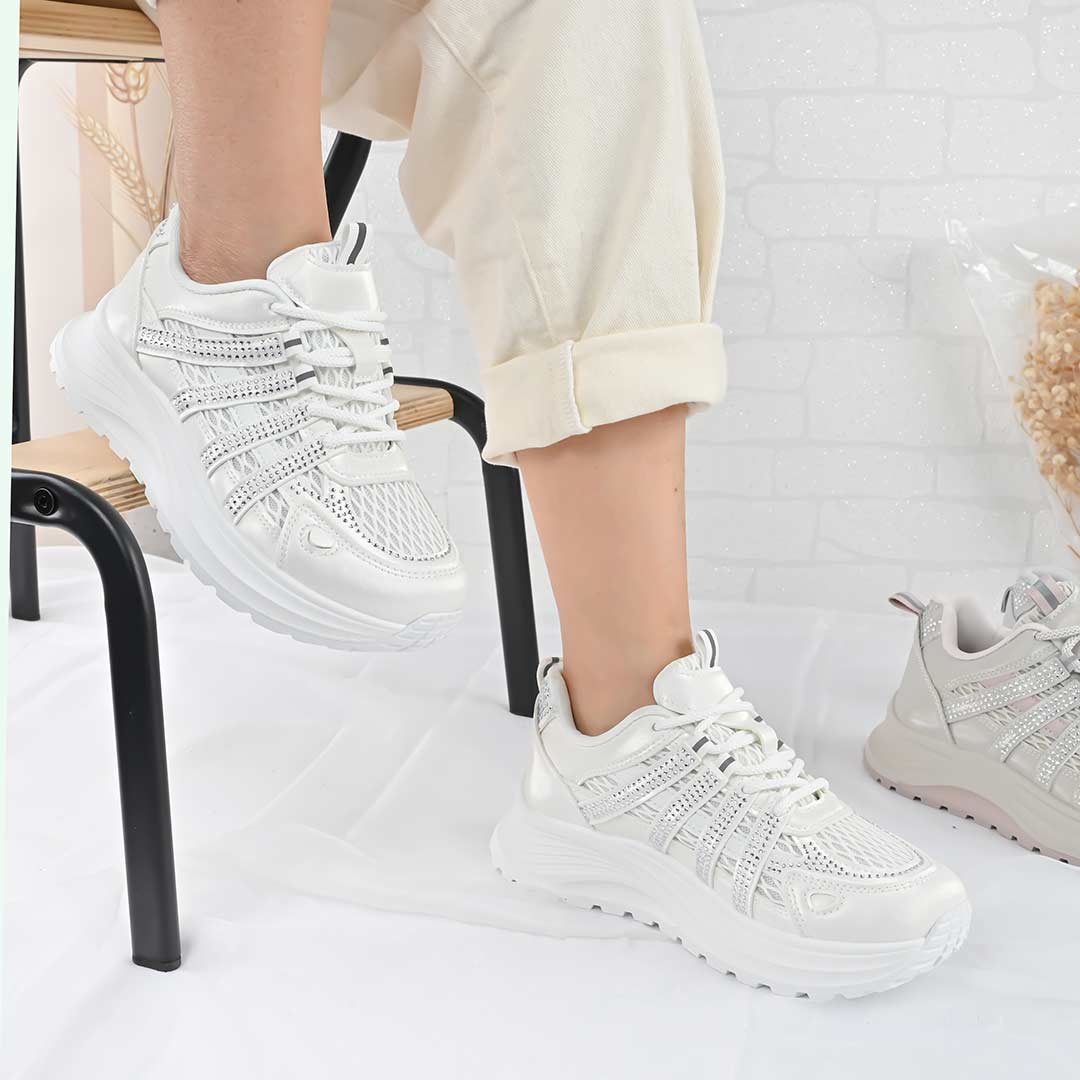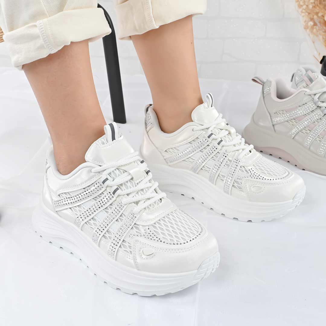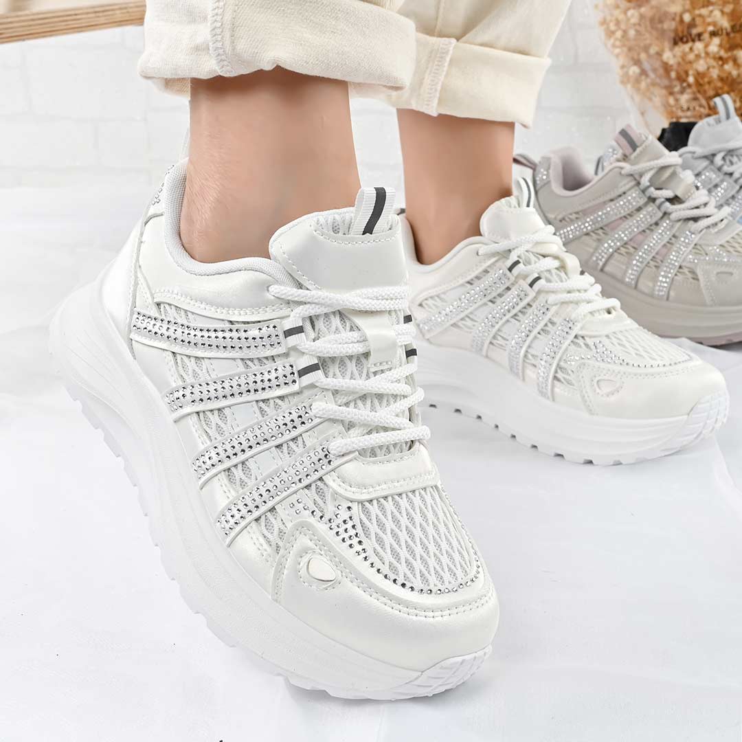 Pantofi Sport De Dama,Cu insertii de plasa,D1475,Alb