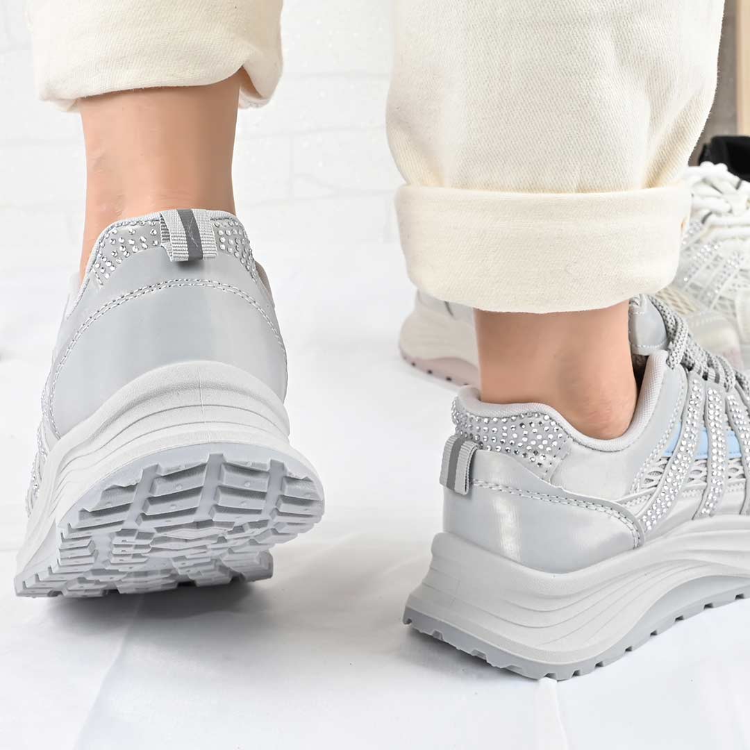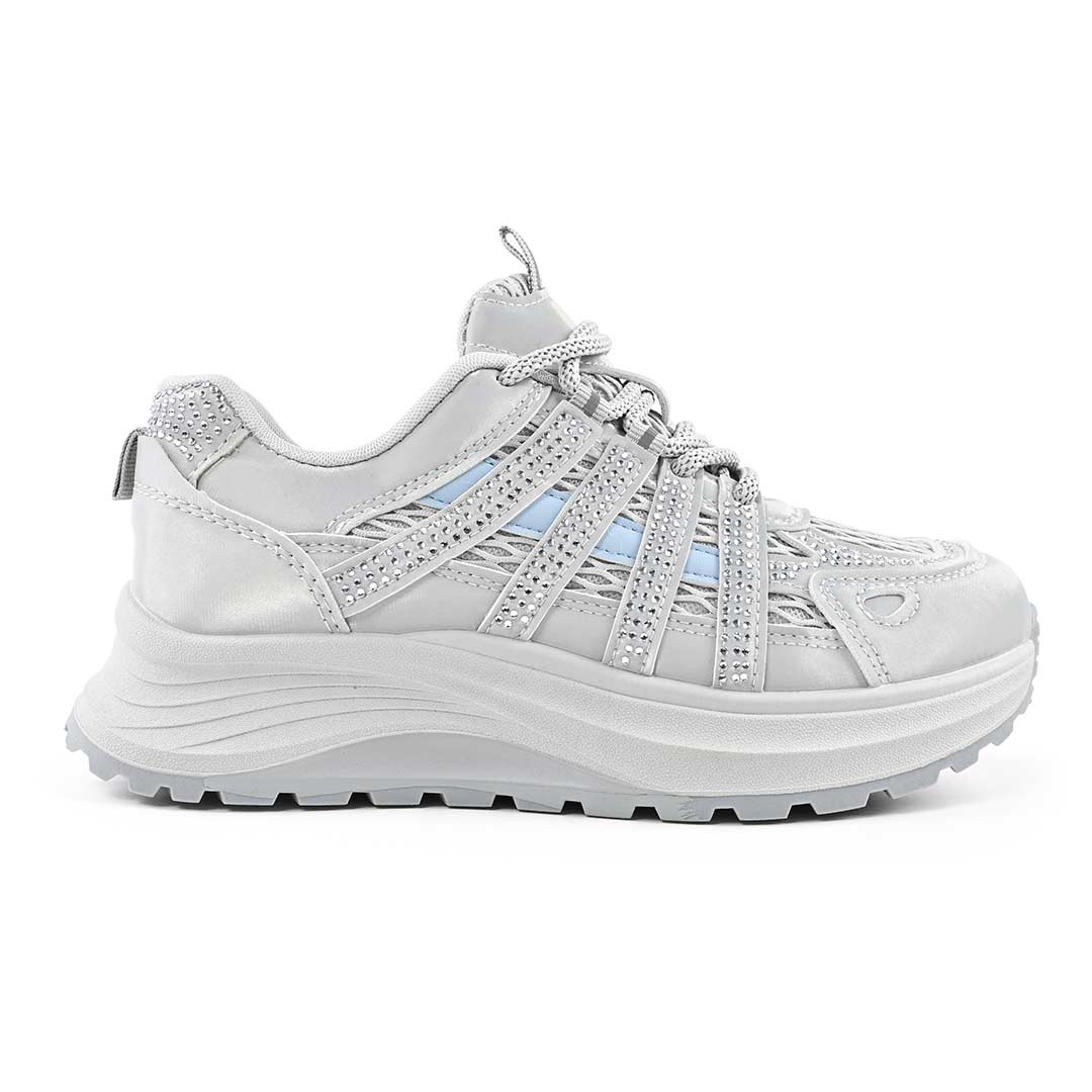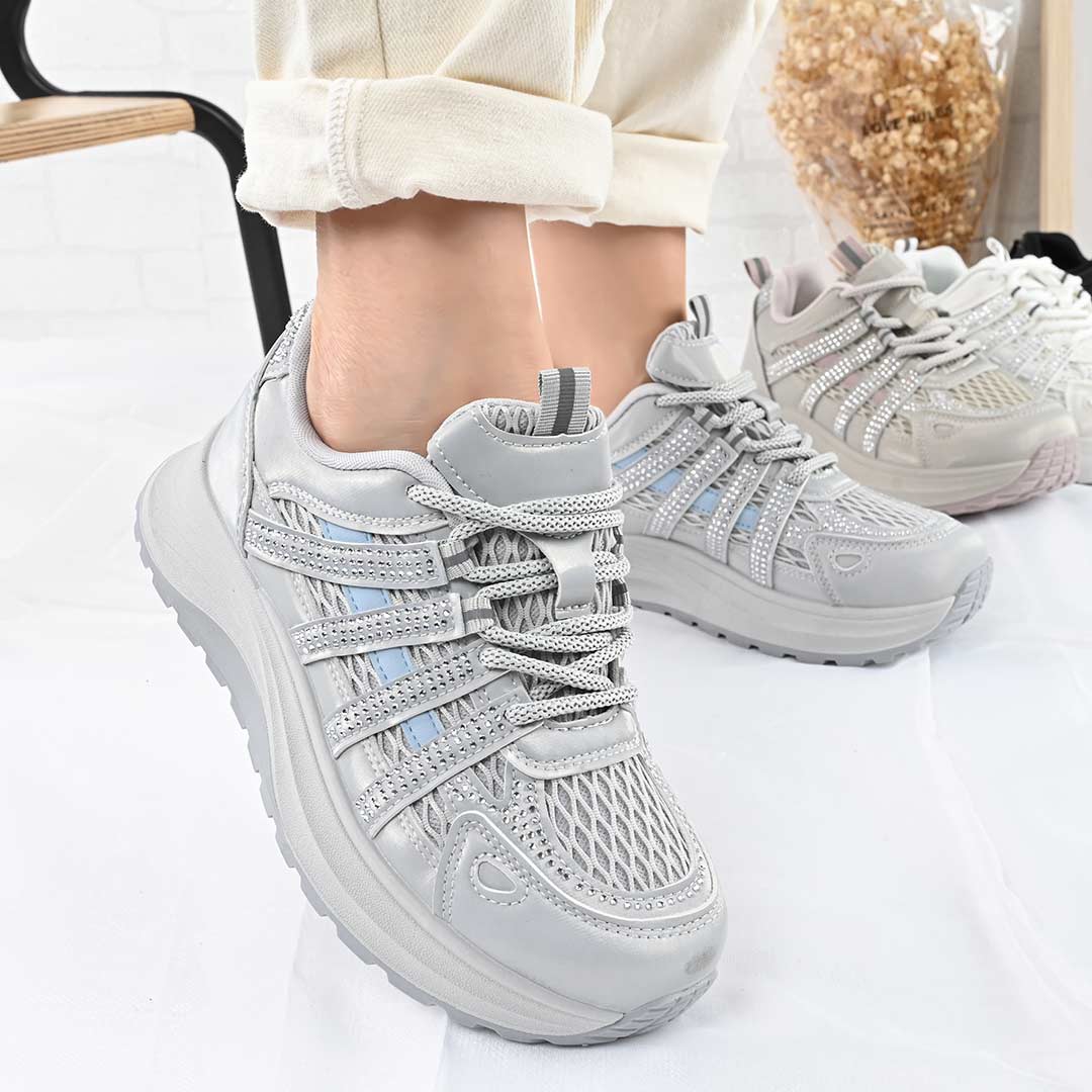 Descoperiți confortul și stilul cu pantofii sport de damă D1475, în combinația elegantă de gri și albastru. Confecționați din piele...