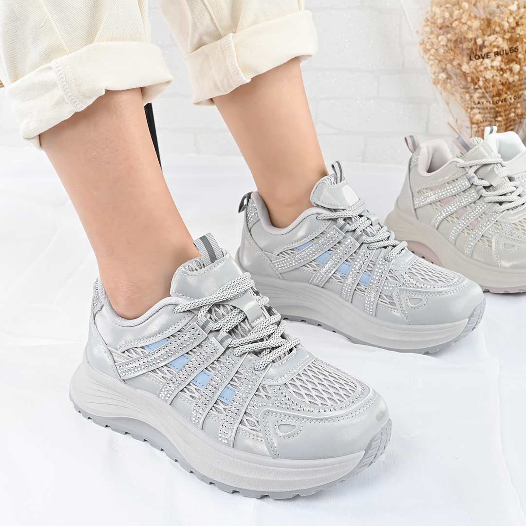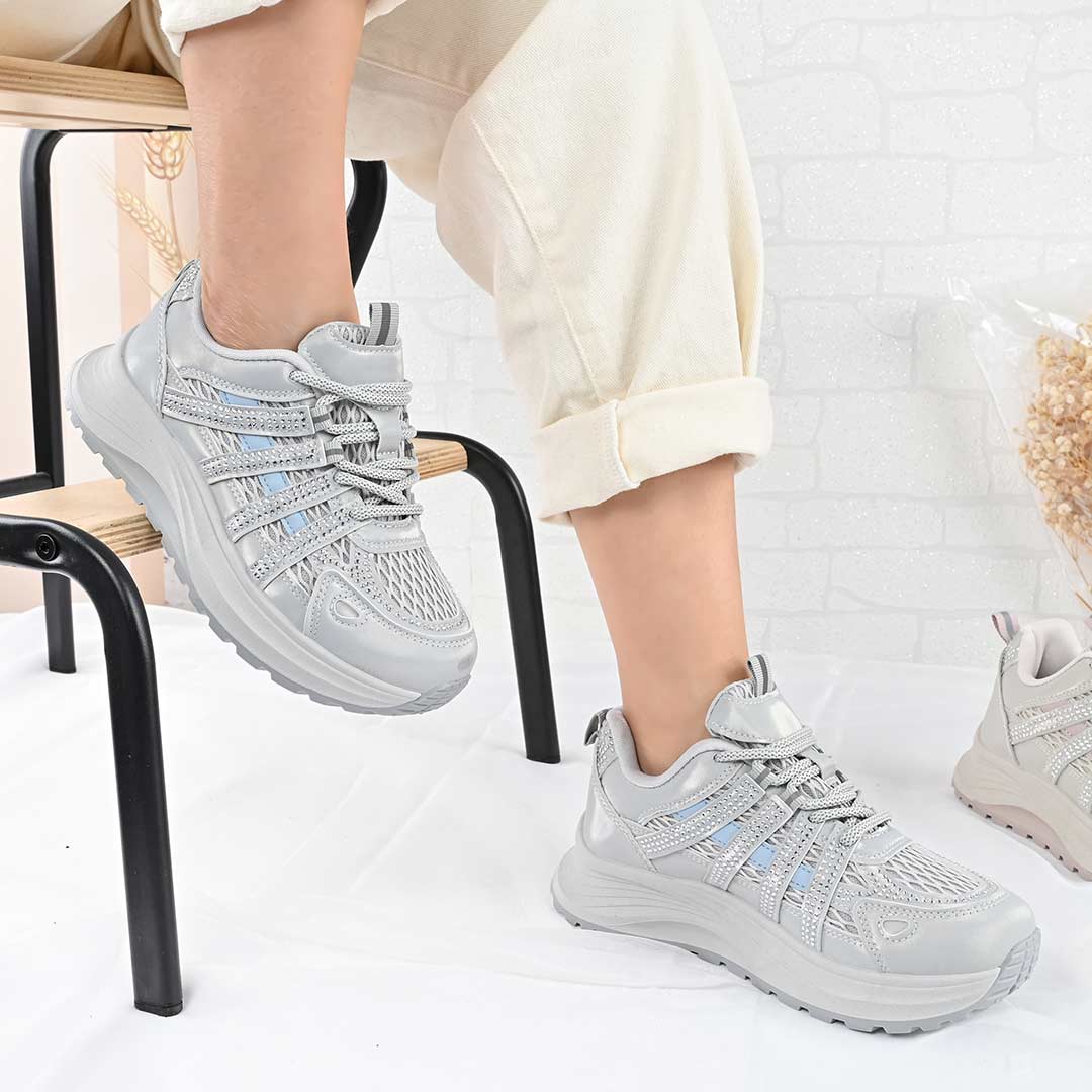 Pantofi Sport De Dama,Cu insertii de plasa,D1475,Gri cu Albastru