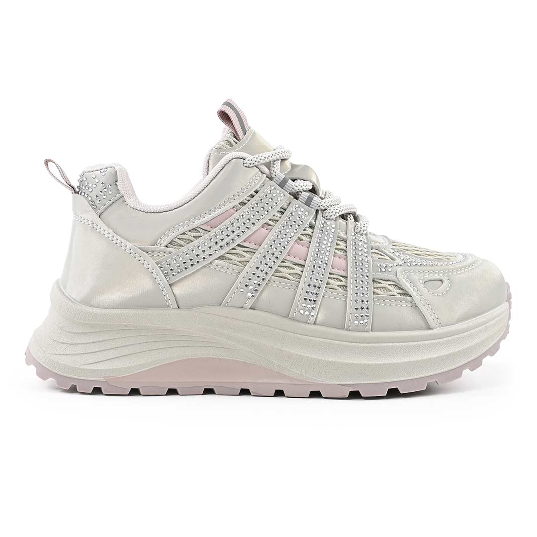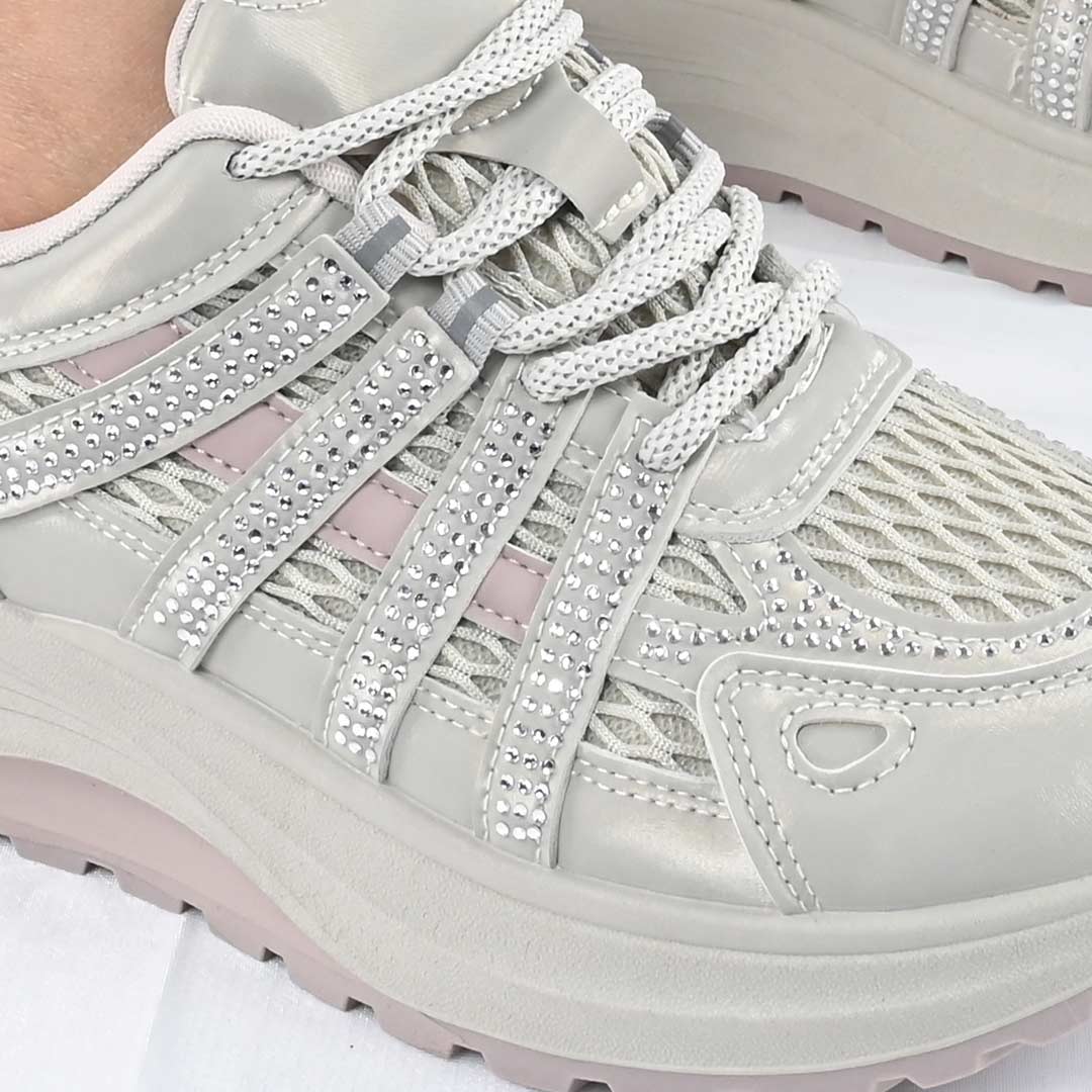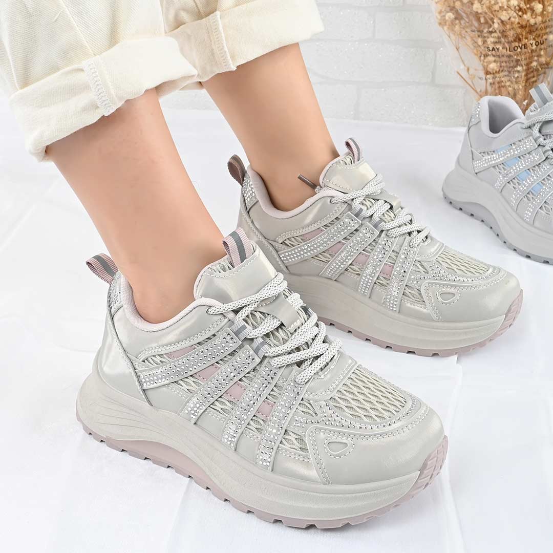 Pantofi Sport De Dama,Cu insertii de plasa,D1475,Kaki cu Roz