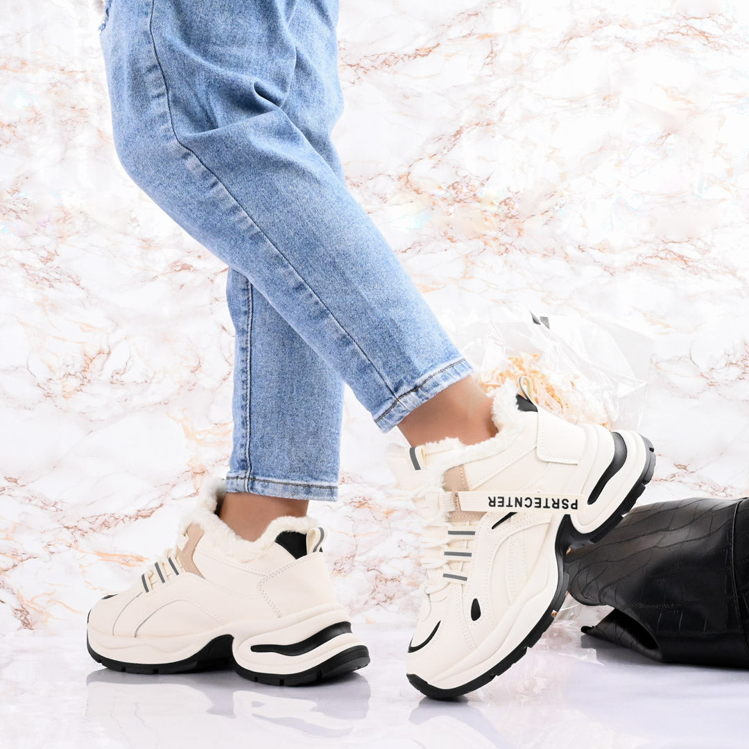 Pantofii sport de damă D1452, bej, sunt confecționați din piele ecologică de calitate, cu interior îmblănit pentru confort optim. Stilul...