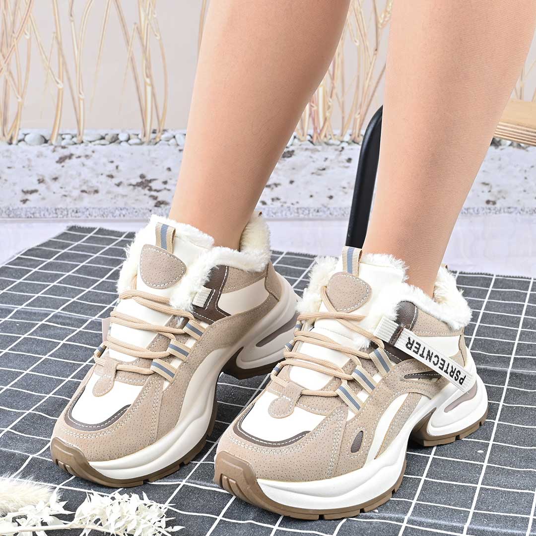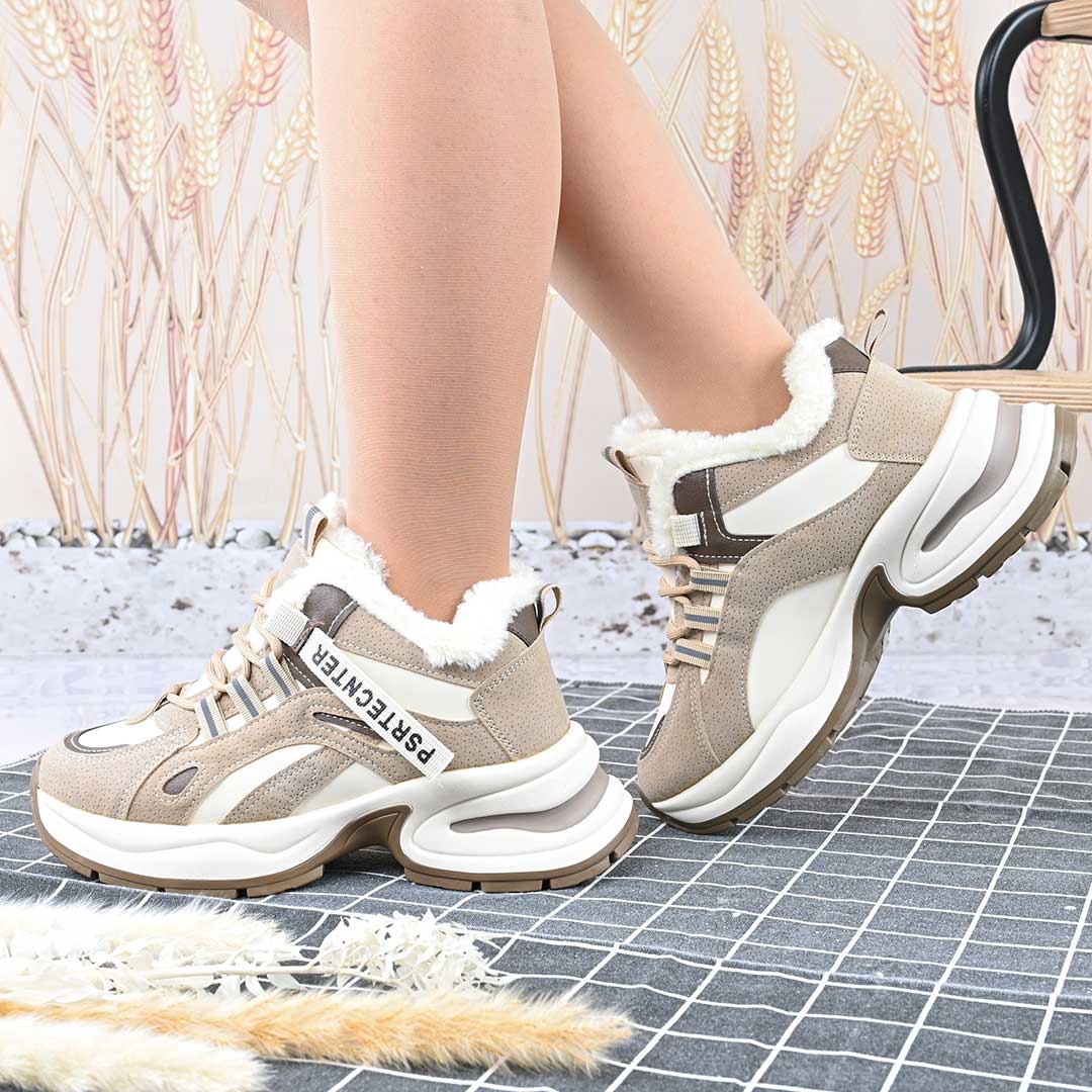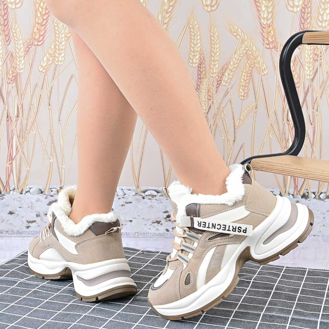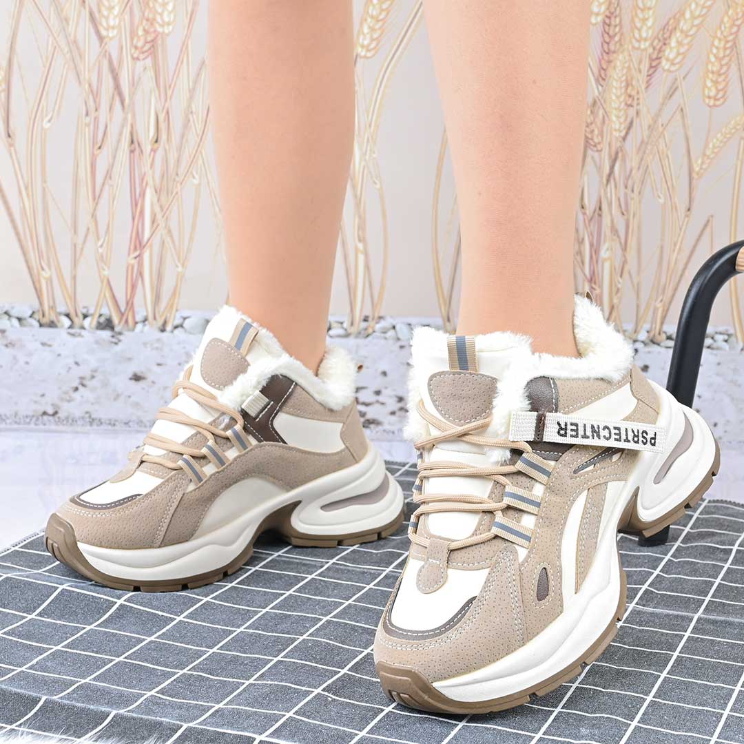 Pantofi sport de dama,Cu interior imblanit,D1452,Kaki