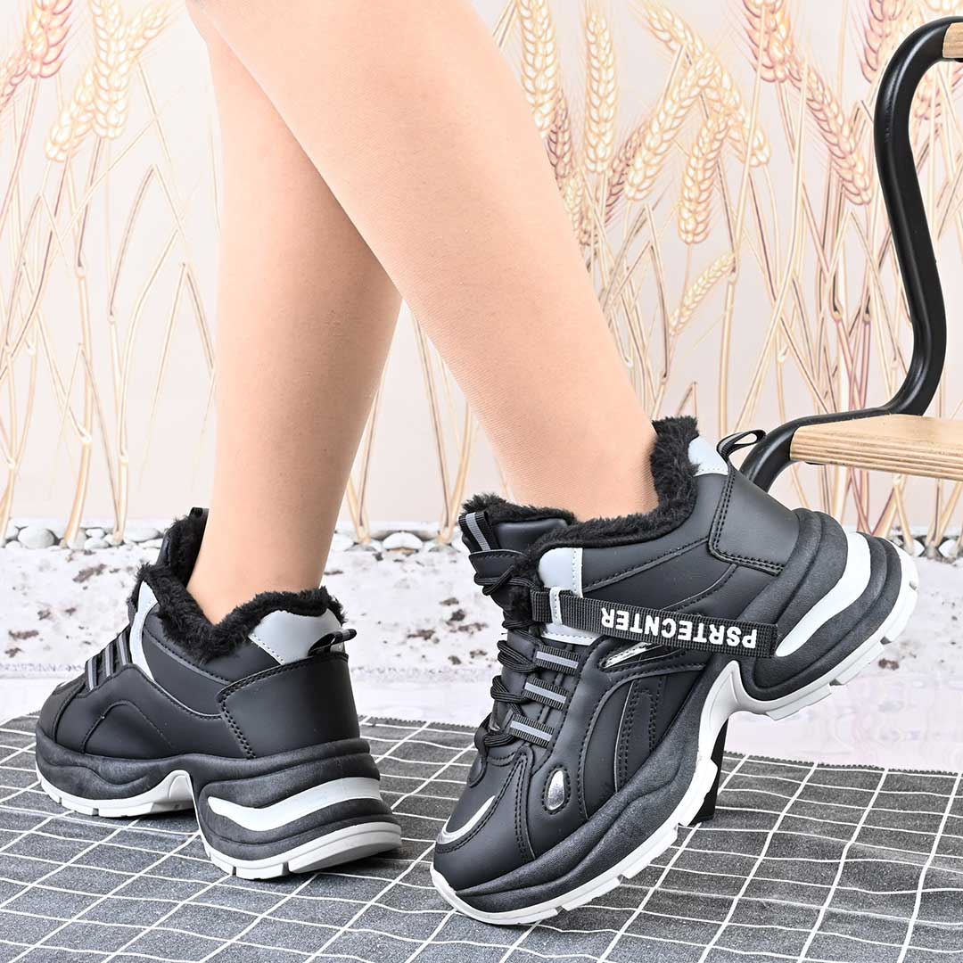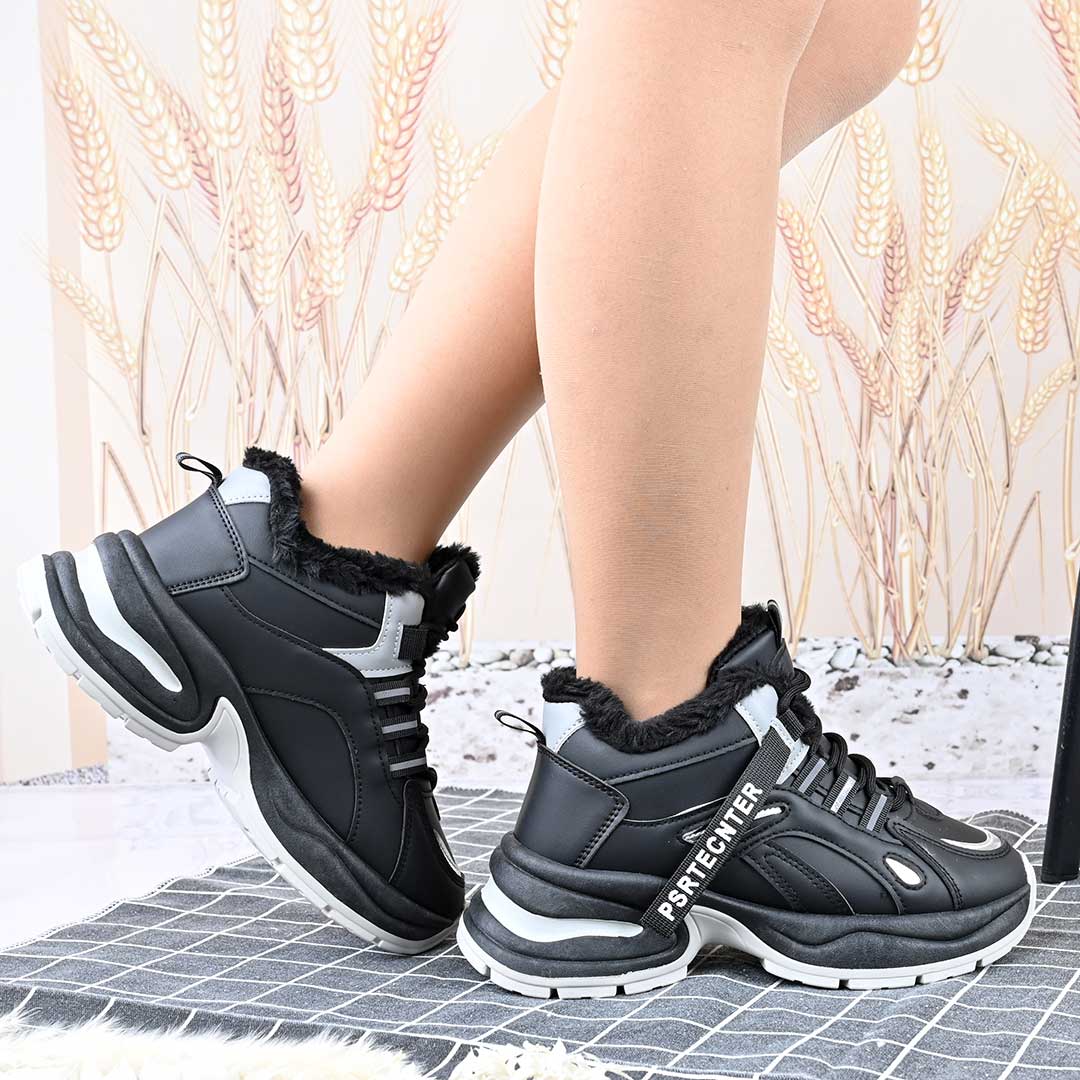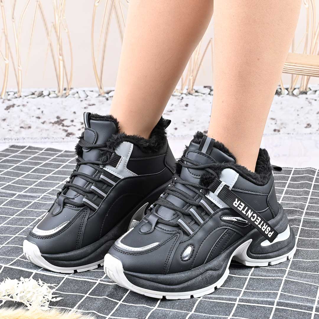 Pantofi sport de dama,Cu interior imblanit,D1452,Negru