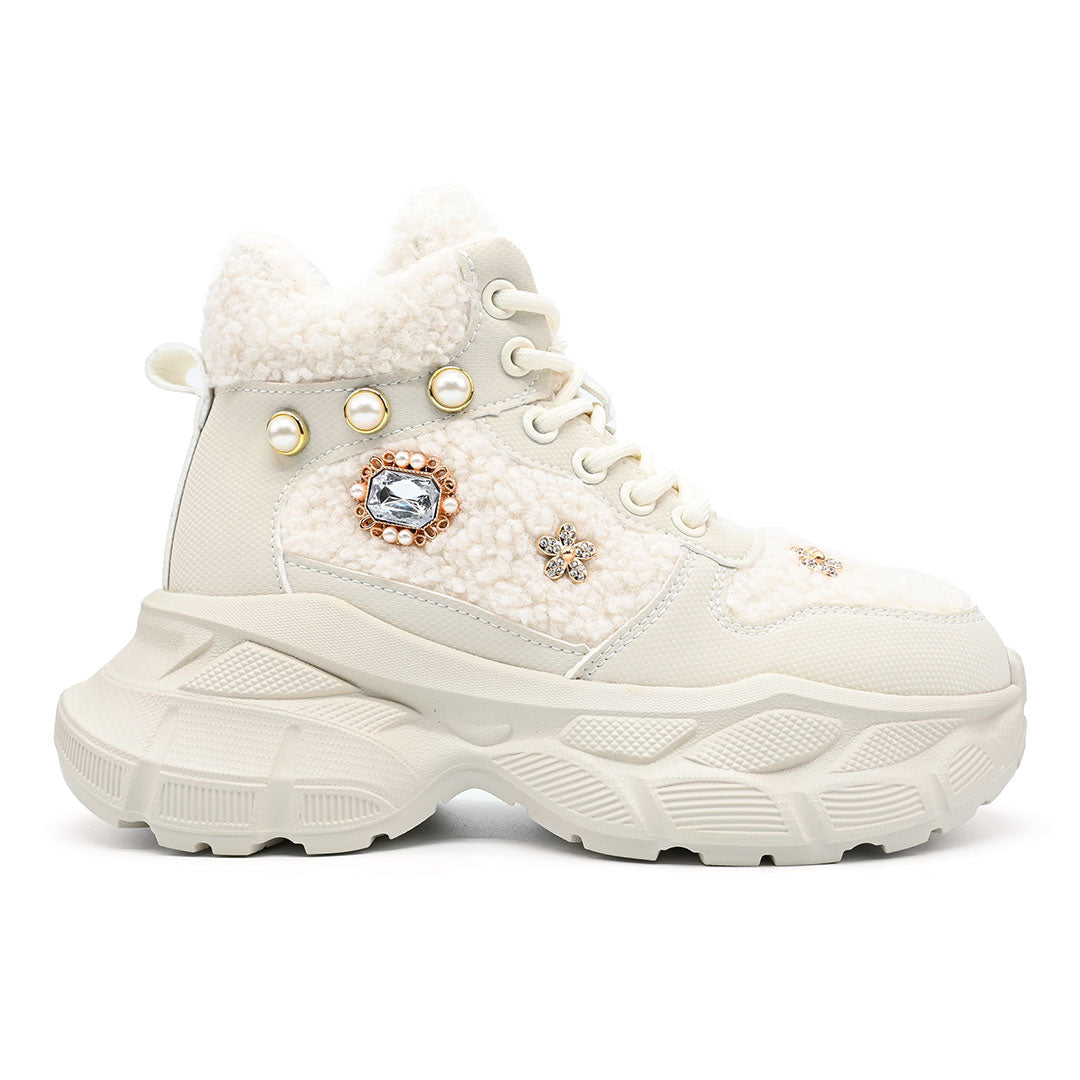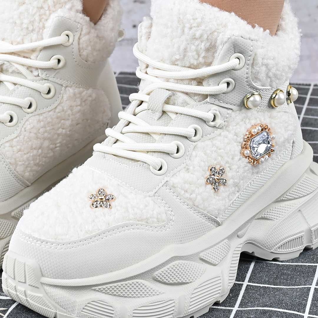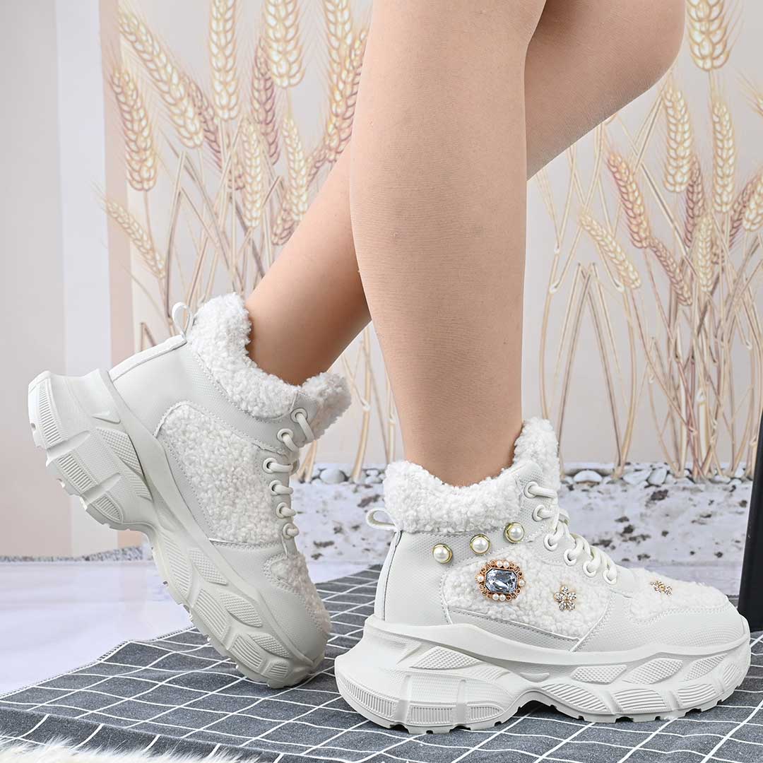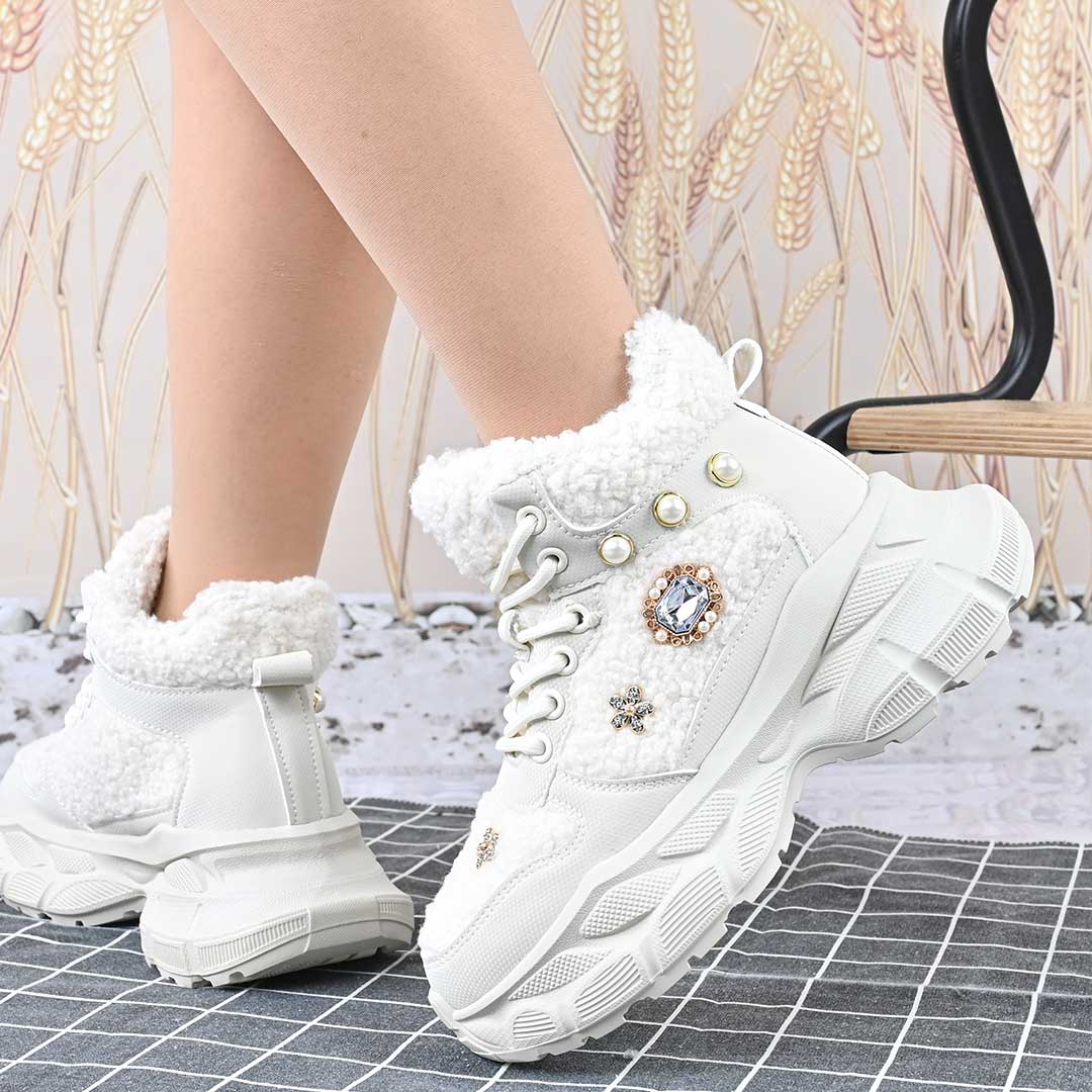 Descoperiți pantofii sport de damă D1456, albi, confecționați din piele ecologică și cu interior imblănit. Talpa plată din TPU asigură...
