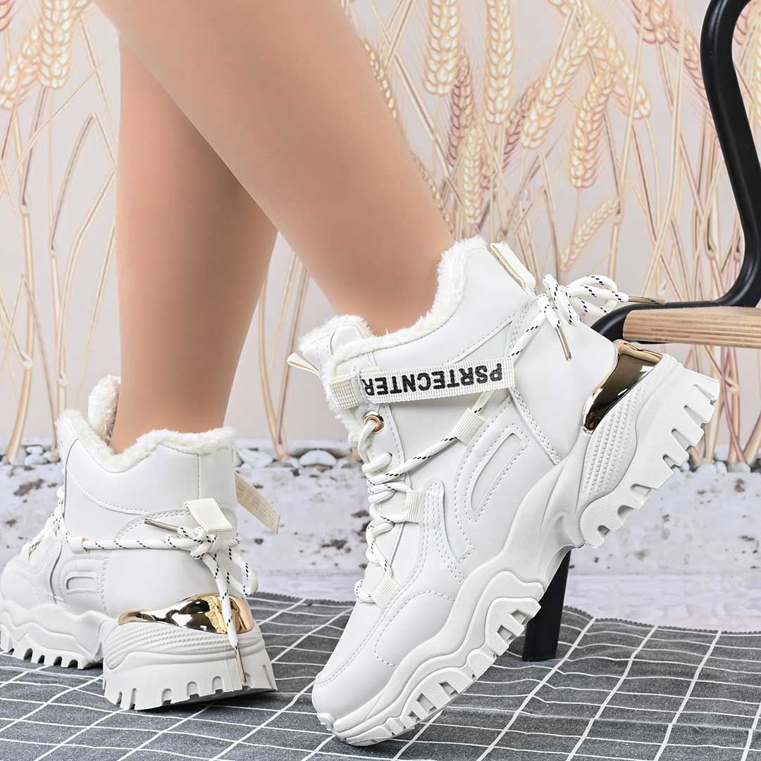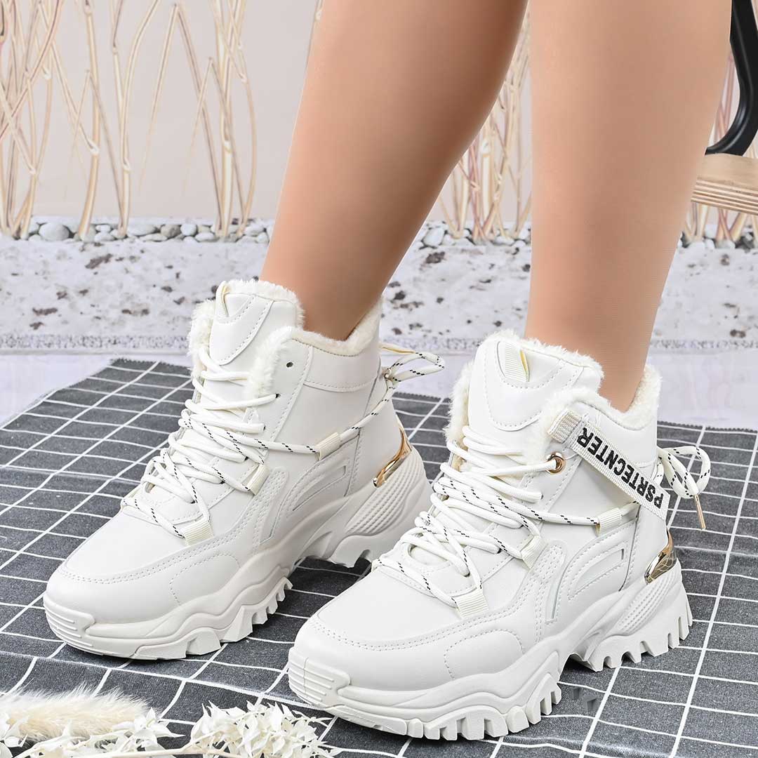 Pantofi sport de dama,Cu interior imblanit,D1457,Alb