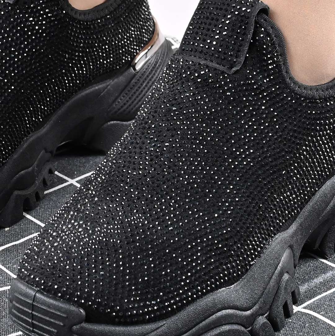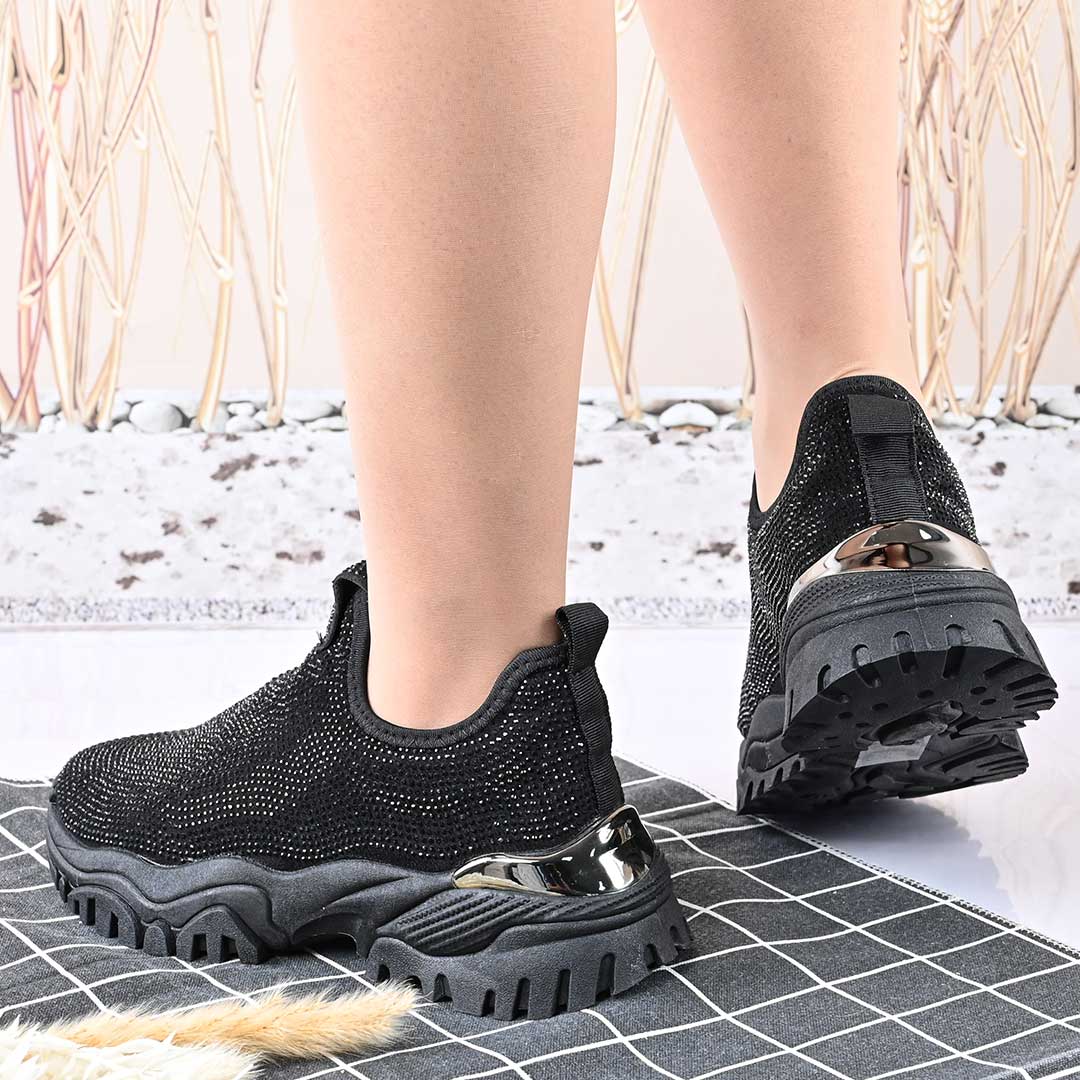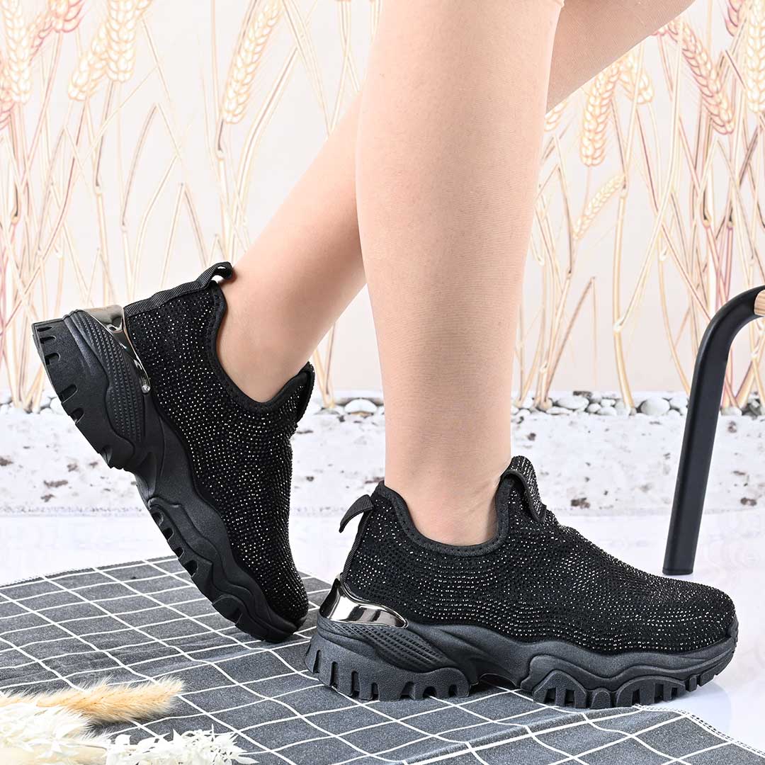 Pantofi Sport De Dama,Cu Material textil si Strasuri,D1441,Negru