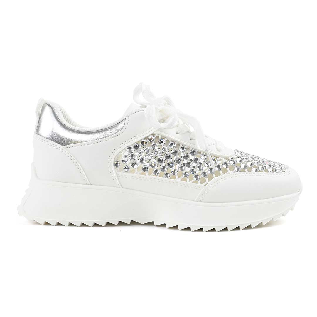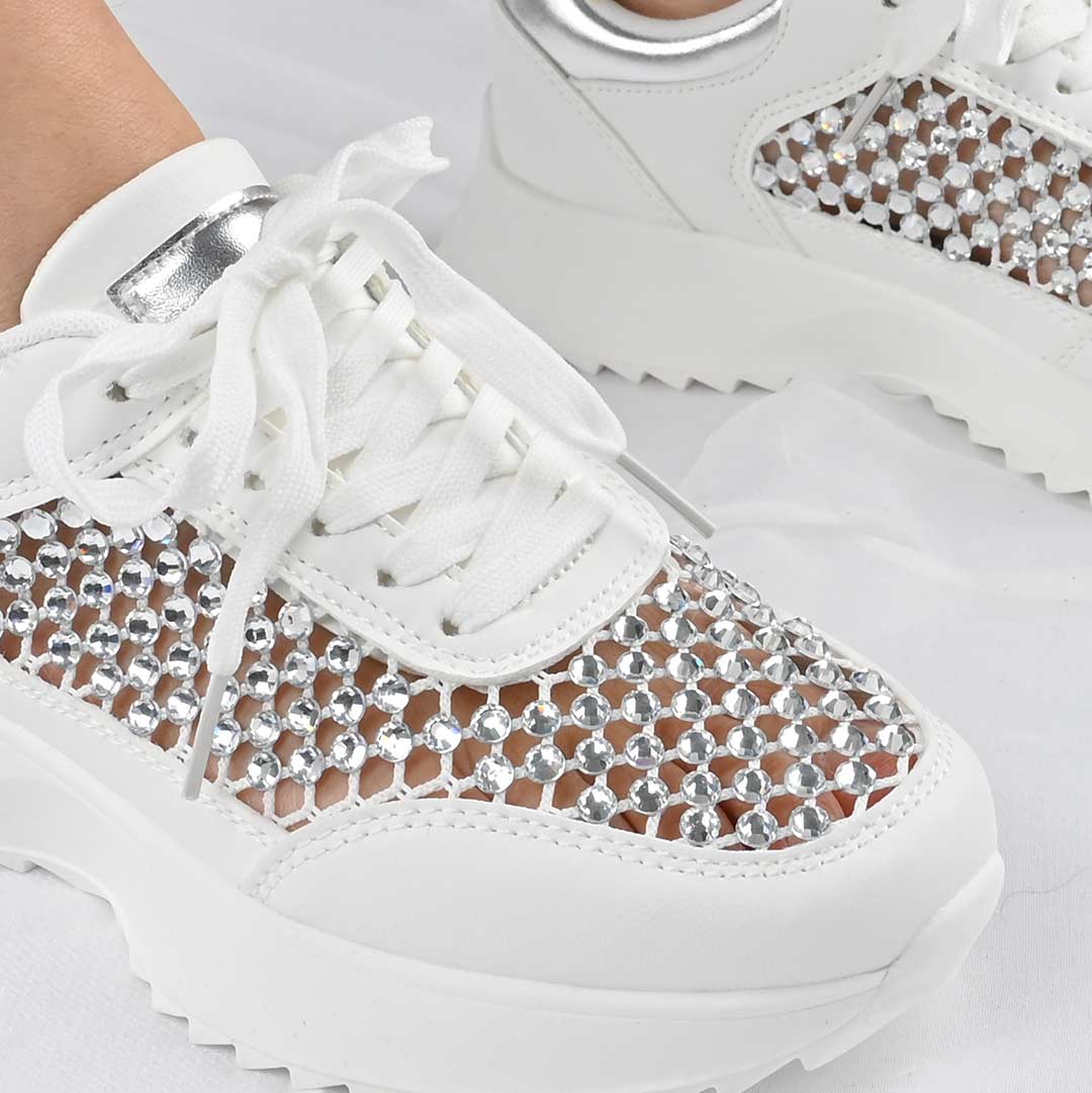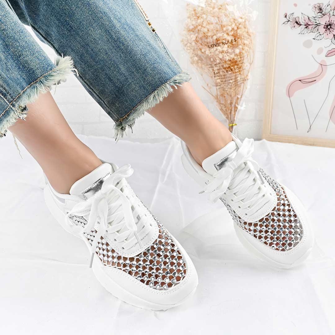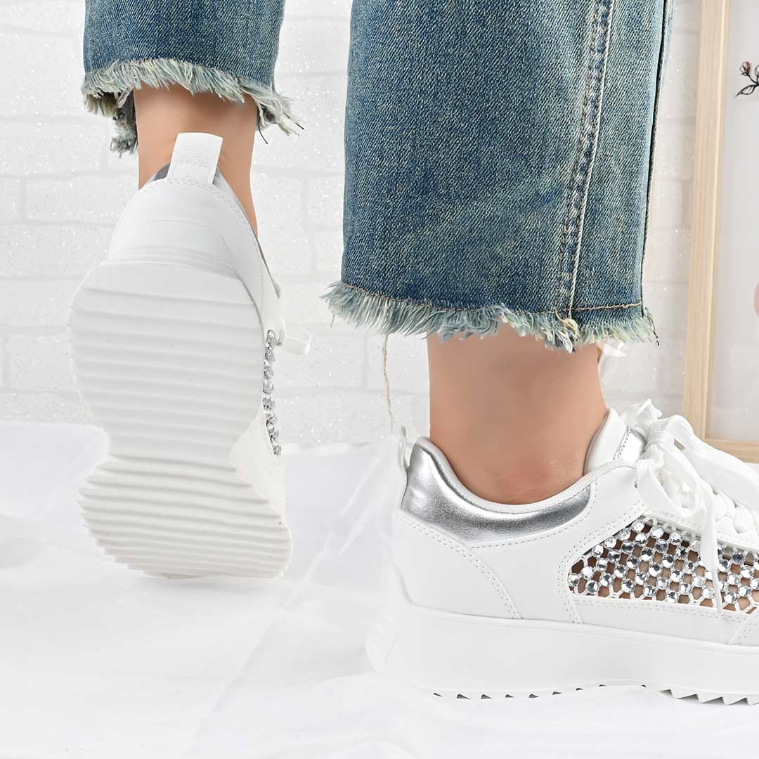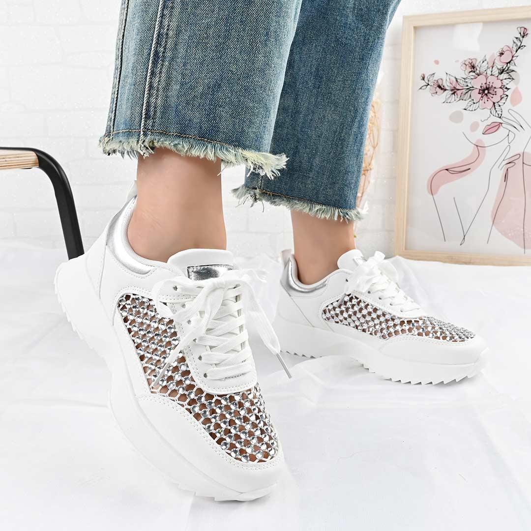 Pantofi Sport De Dama,Cu plasa si Strasuri,D1468,Alb