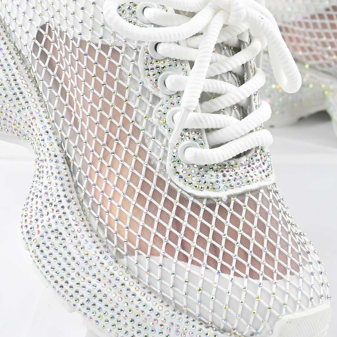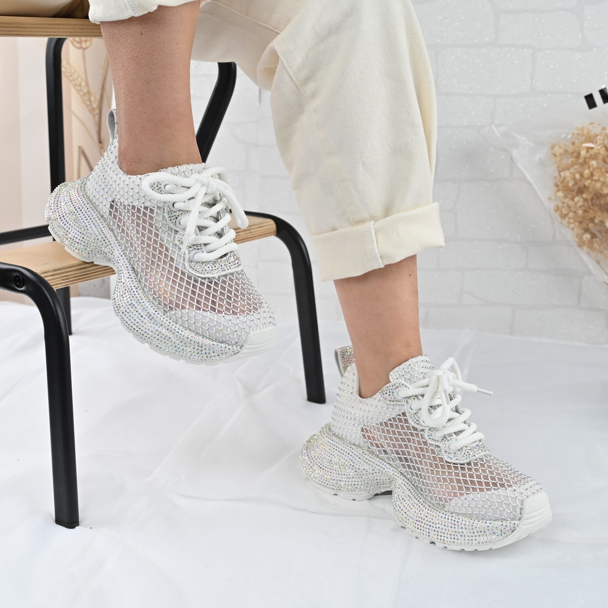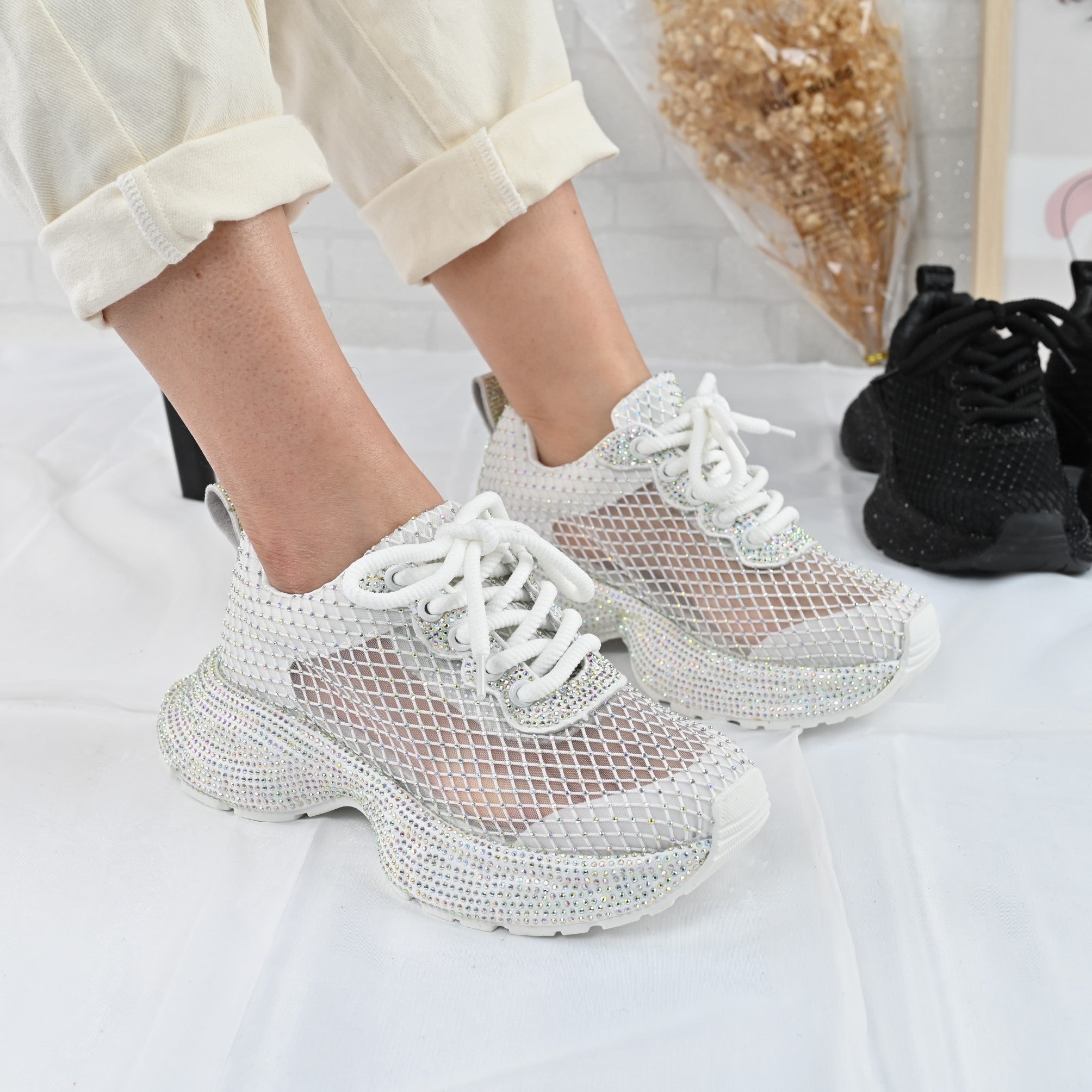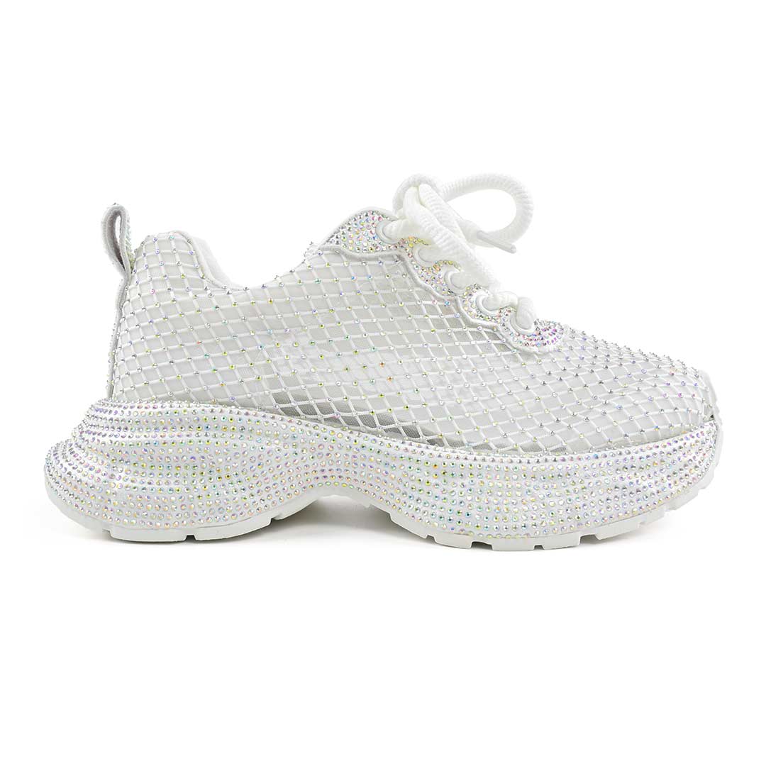 Pantofi Sport De Dama,Cu plasa si Strasuri,D1469,Alb