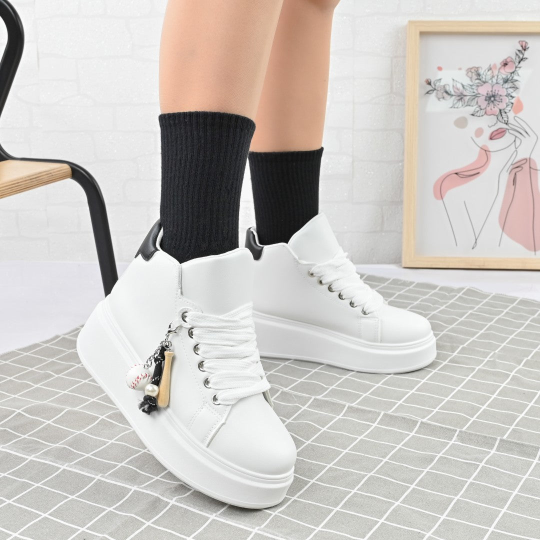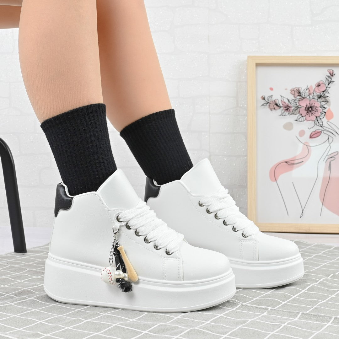 Pantofi Sport De Dama,Cu Platforma,cu acesoriu detasabil ,D1443,Alb