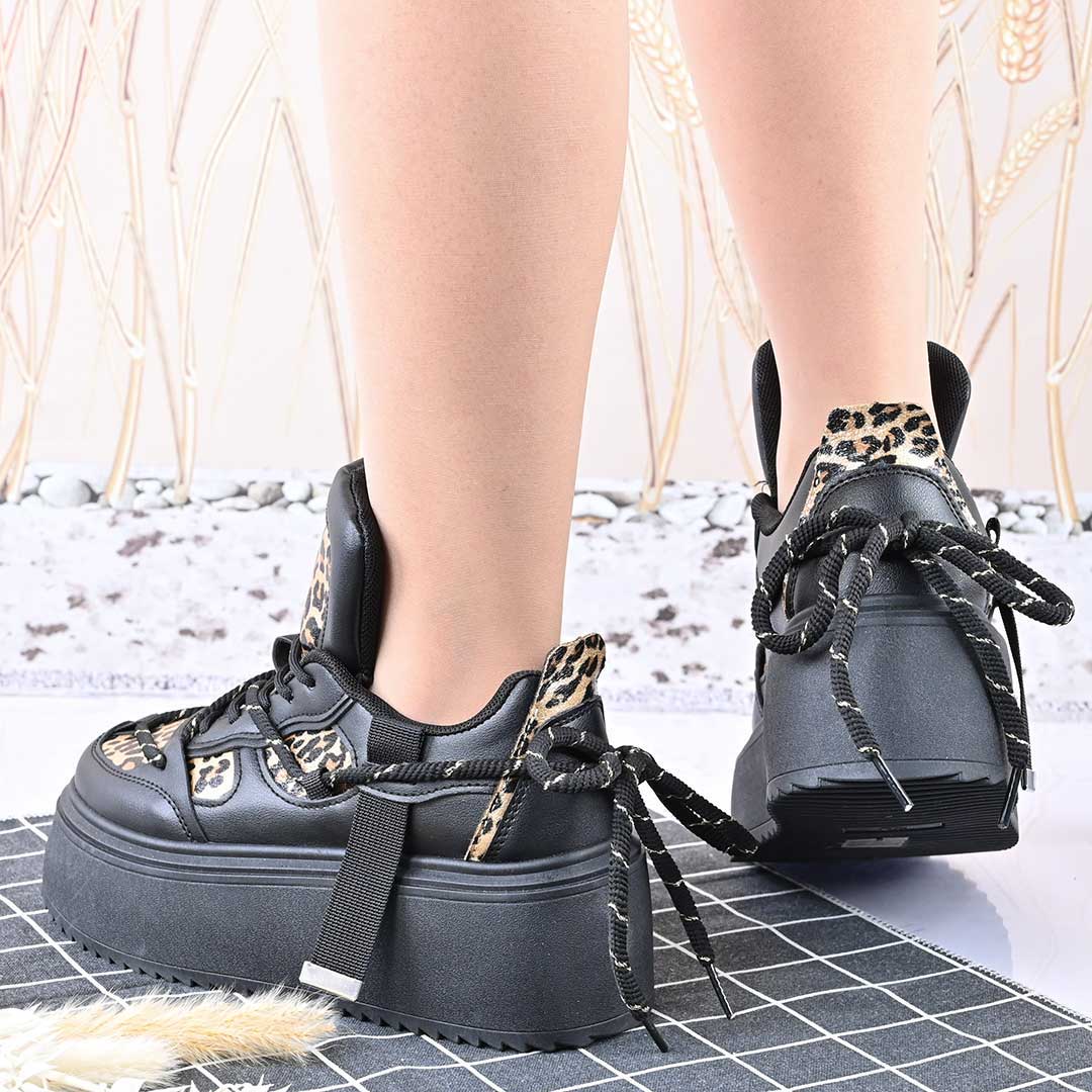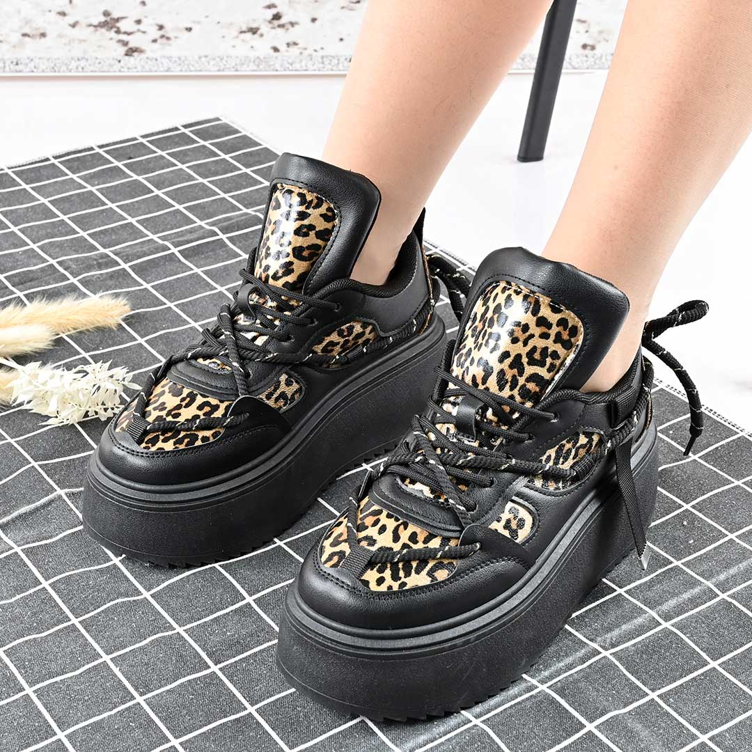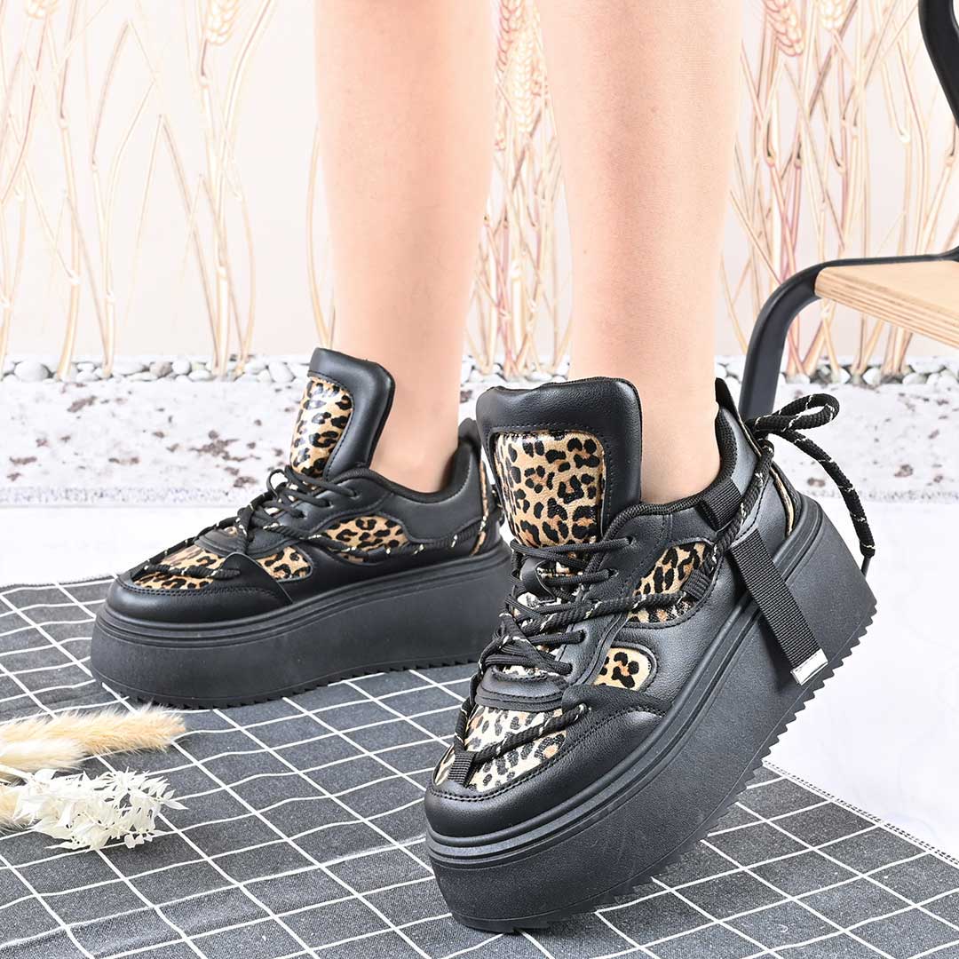 Pantofi Sport De Dama,Cu Platforma,Din piele ecologica,D1413,Negru cu Leopard