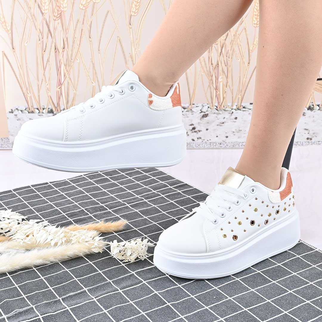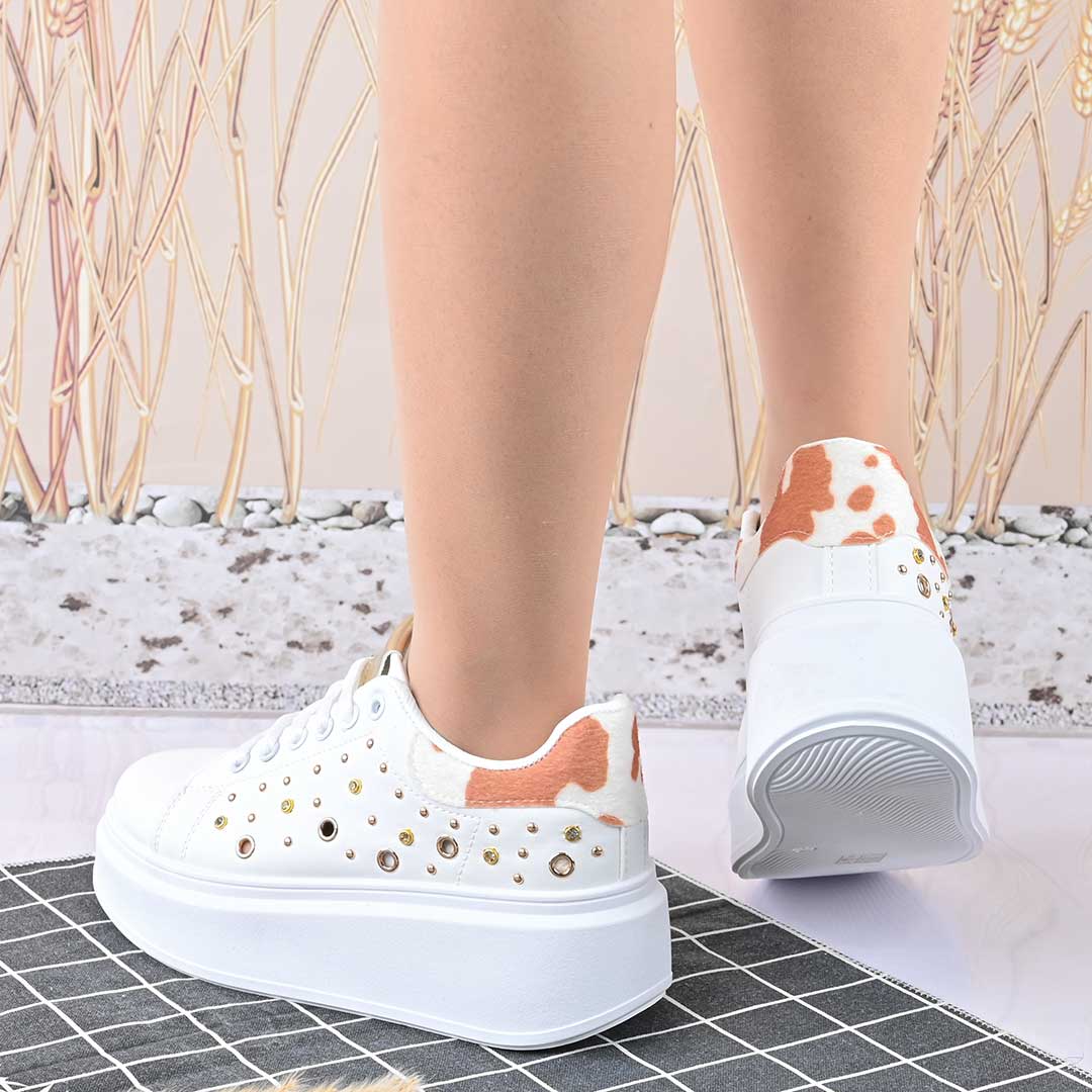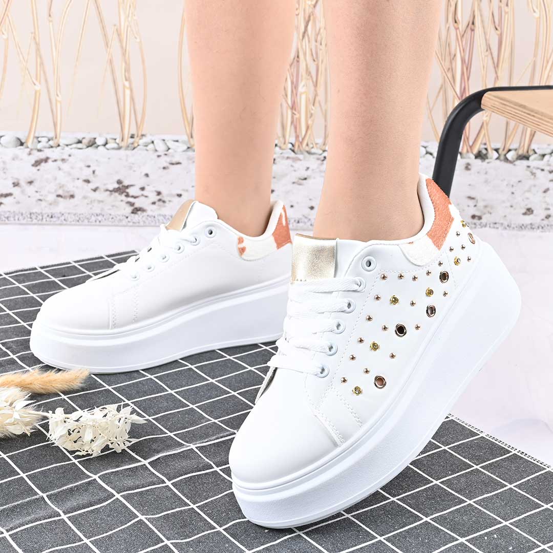 Pantofi Sport De Dama,Cu platforma,Din piele ecologica,D1419,Alb