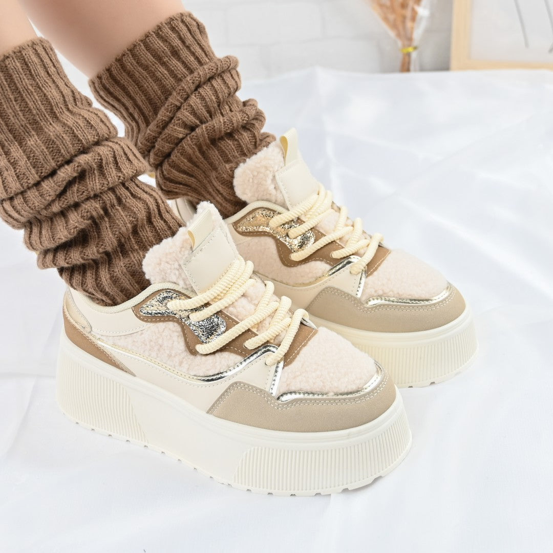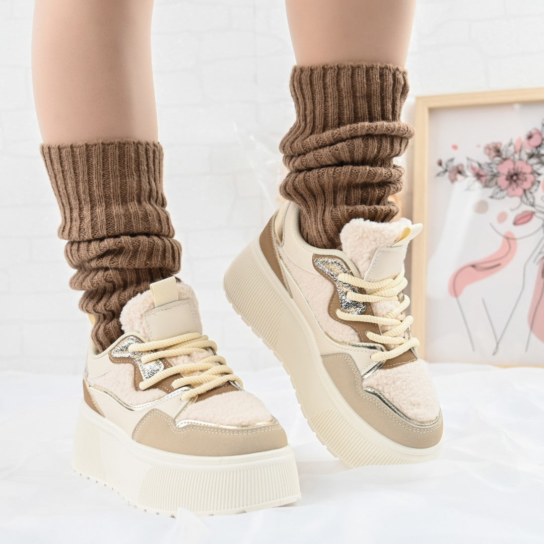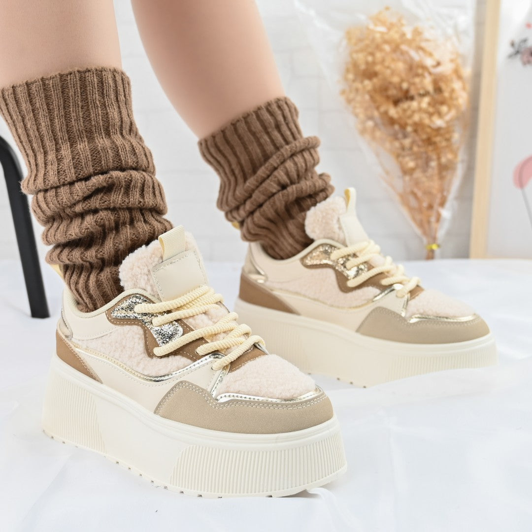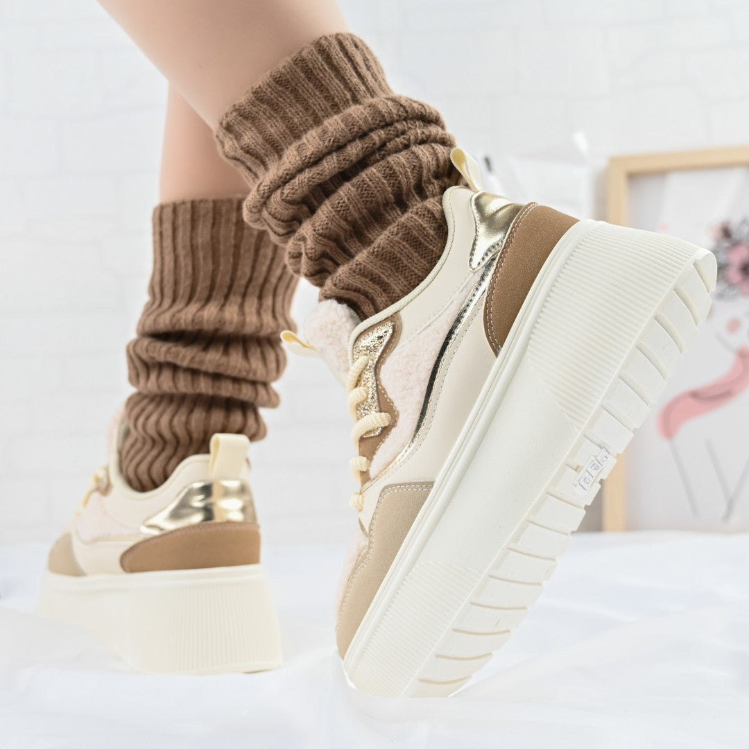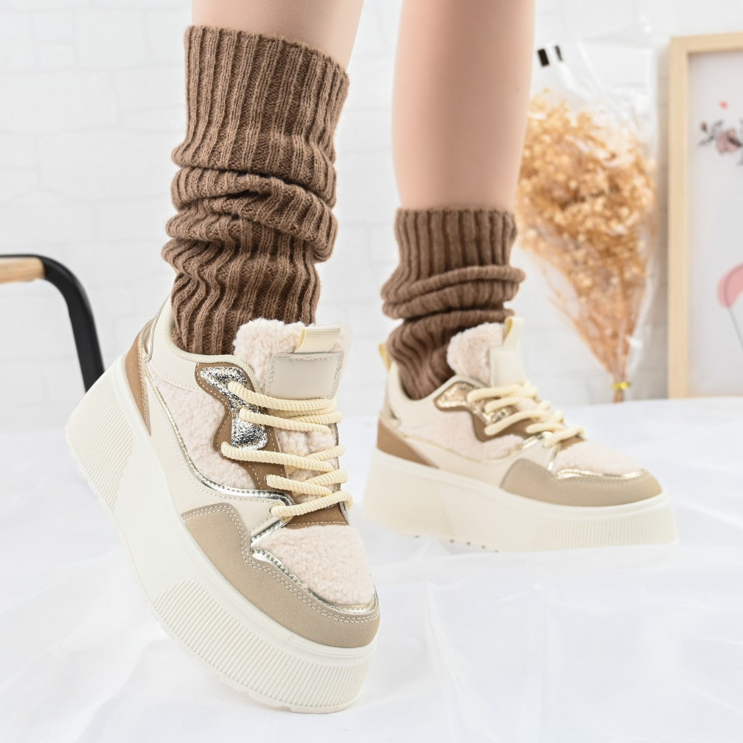 Pantofi Sport De Dama,Cu Platforma,Din piele ecologica intoarsa,D1409,Bej